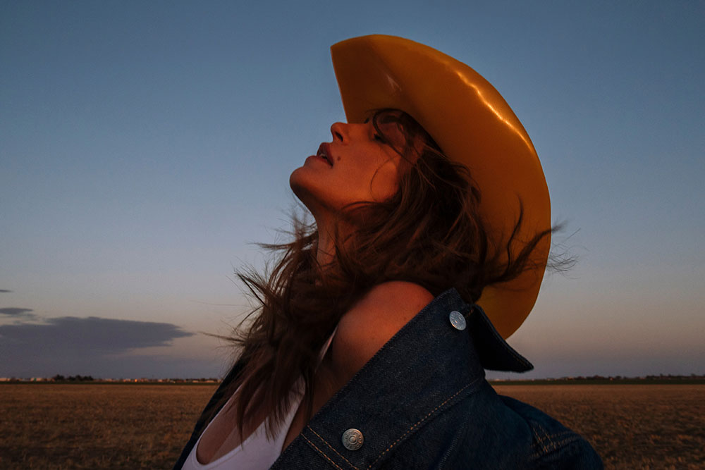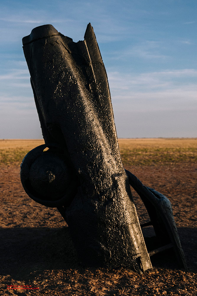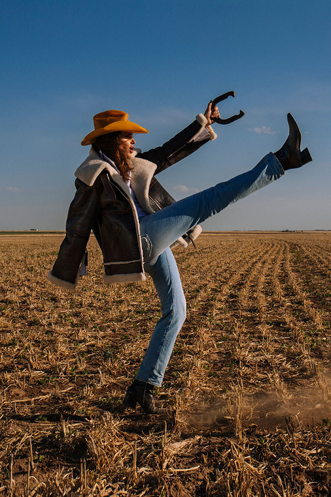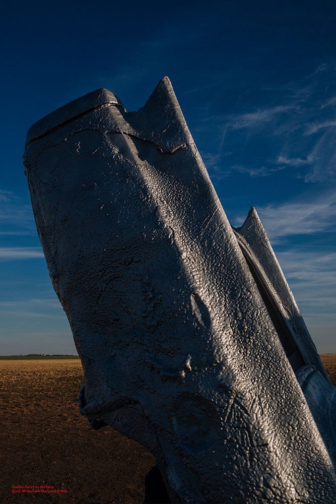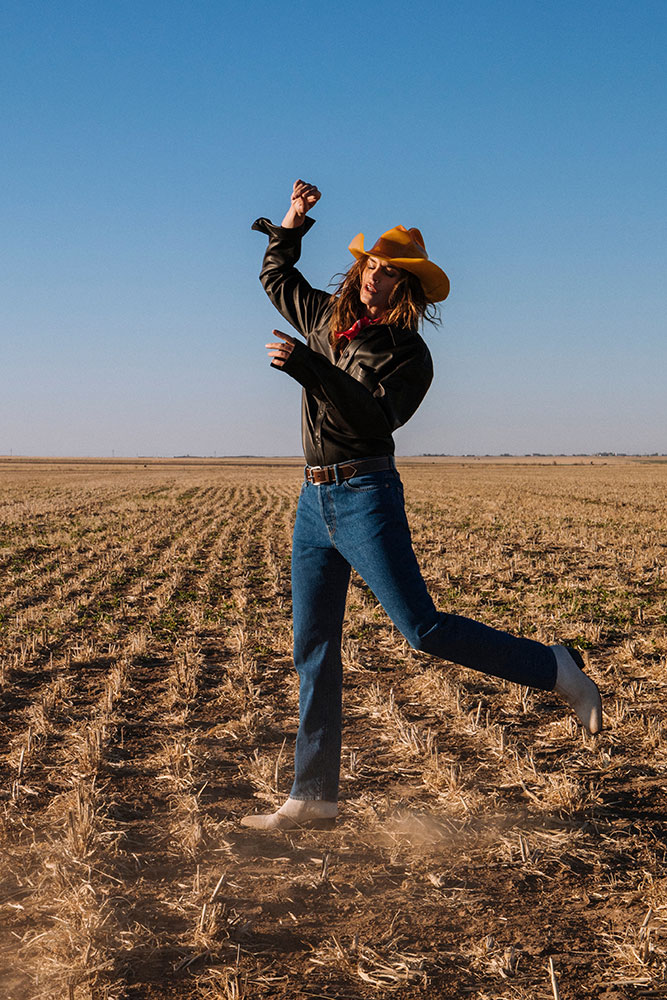 舞台は、アーティスト集団 Ant Farm (アント・ファーム) によるランド・アート作品「キャディラック・ランチ」。サンフランシスコで Chip Lord (チップ・ロード) と Doug Michels (ダグ・マイケルズ) によって1968年に結成された前衛的な芸術集団 Ant Farm がテキサスの豊かな自然の中に生み出したのは、キャディラックがまるで土に半分埋まってしまっているかのようなユニークな作品。1960年代後半より『ナショナルジオグラフィック』で写真家として世界各地の自然にレンズを向けてきた Sam Abell は今回、そうした壮大な風景の中で Cindy Crawford を撮影。ファッションフォトの枠に収まりきらないヴィジュアルに見事仕上げられている。