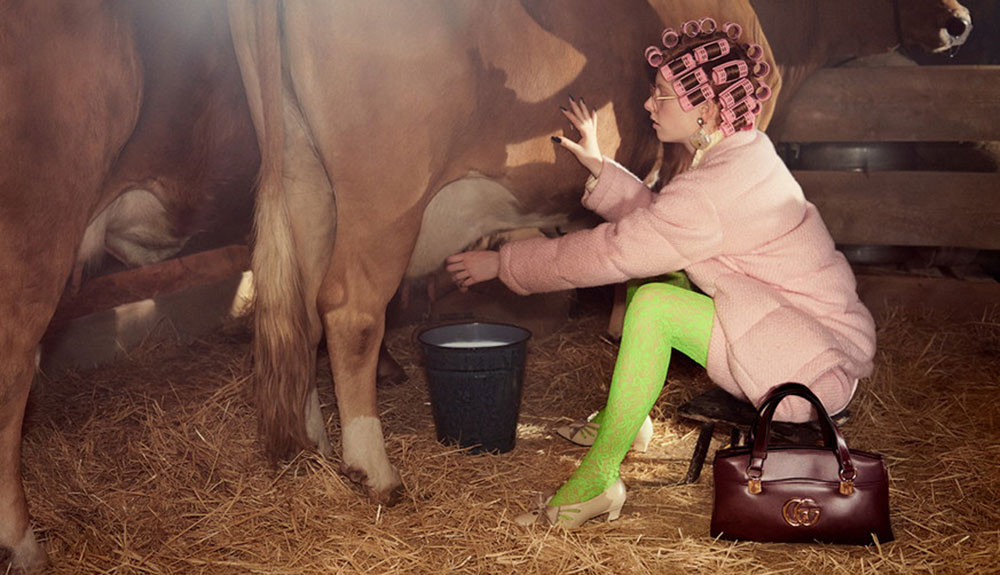 本キャンペーンで Gucci (グッチ) が披露したのは独特のシュールな世界観で解釈した旧約聖書の伝説、ノアの方舟。太古の昔、神が邪悪な人々を滅ぼすため大きな洪水を起こし、神から予告を受けたノアと世界中の動物だけが方舟に乗り助かったという神話だ。Gucci は今回、ブランドのシグネチャーでもある自然界の魅力をベースに動物と人間が調和して共存する農村を描き出し、幻想的で愛に溢れた世界を表現した。パンクなムードを醸す Gucci のコレクションを纏った若い農民たちが誘うシュールな神話の世界を是非ともキャンペーンから存分に楽しんでいただきたい。