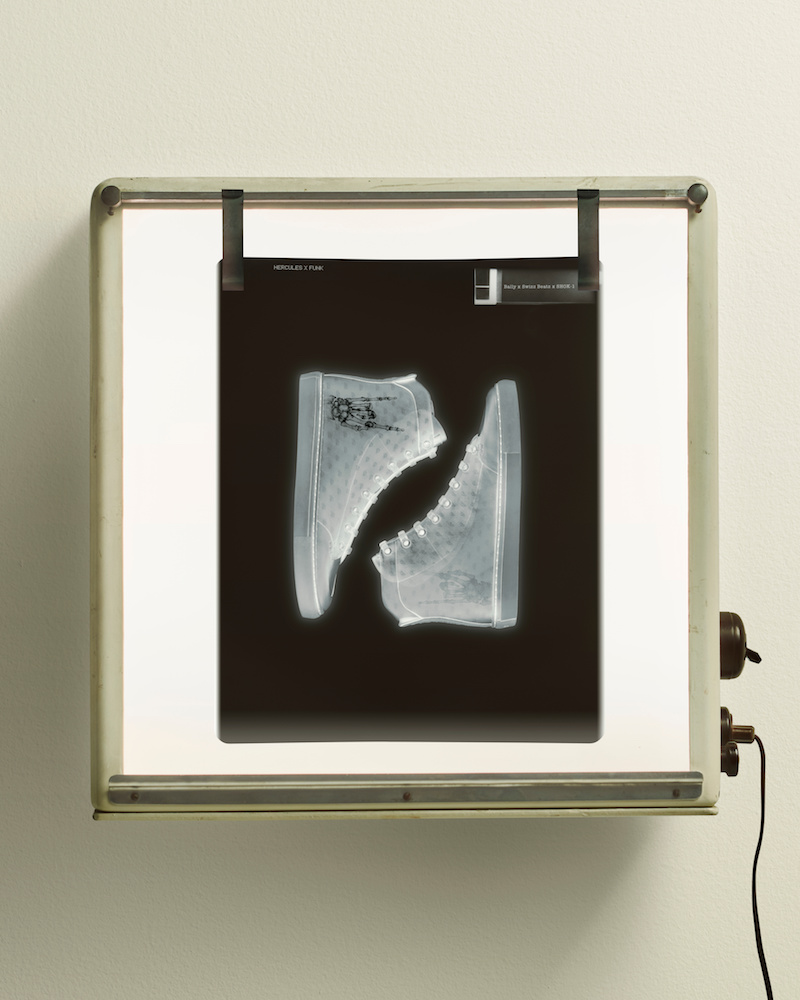 SHOK-1 は、世界中の壁にスプレーでX線アートを描くストリートアーティスト。応用科学の学位も取得しているというエキセントリックな経歴を持つ彼は、80年代初頭に米国でセンセーションを起こしたストリートカルチャーをヨーロッパでいち早く取り入れ、世界的にも非常に重要なアートムーブメントの土台を築き上げた張本人。そんなストリートアートのパイオニアが今回 BALLY とタッグを組み、生み出した「BALLYXSHOK-1」はストリートスタイルのウェアラブルアート。BALLY のアイコニックなスタイルである「Galaxy」や「Hercules」といったスニーカーを中心にバッグなどのアクセサリー、レディ・トゥ・ウェアなどに SHOK-1 のX線アートが見事落とし込まれている。