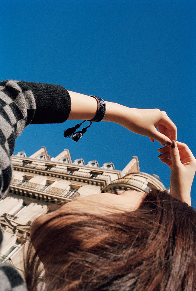 150万以上のステッチが施され、卓越したサヴォワールフェールが凝縮されたバッグ「ブック トート」、カジュアルなルックの仕上げには欠かせないスニーカー「Walk’n’Dior」、そしてコーディネートのアクセントに重ねたいミサンガブレスレット「J’Adior」といった Maria Grazia Chiuri のデザインによるアイコニックな3つのアイテムが、彼女のクリエイションのキーカラーでもあるブルーのグラフィカルなモチーフを纏って登場した。プレタポルテからはピーコート、ドレス、ショーツ、カシミヤのセーターのほか、Dior のアイコニックな「バー」ジャケットにツートーンカラーの幾何学的なパターンを美しく落とし込んだアイテムも展開する。