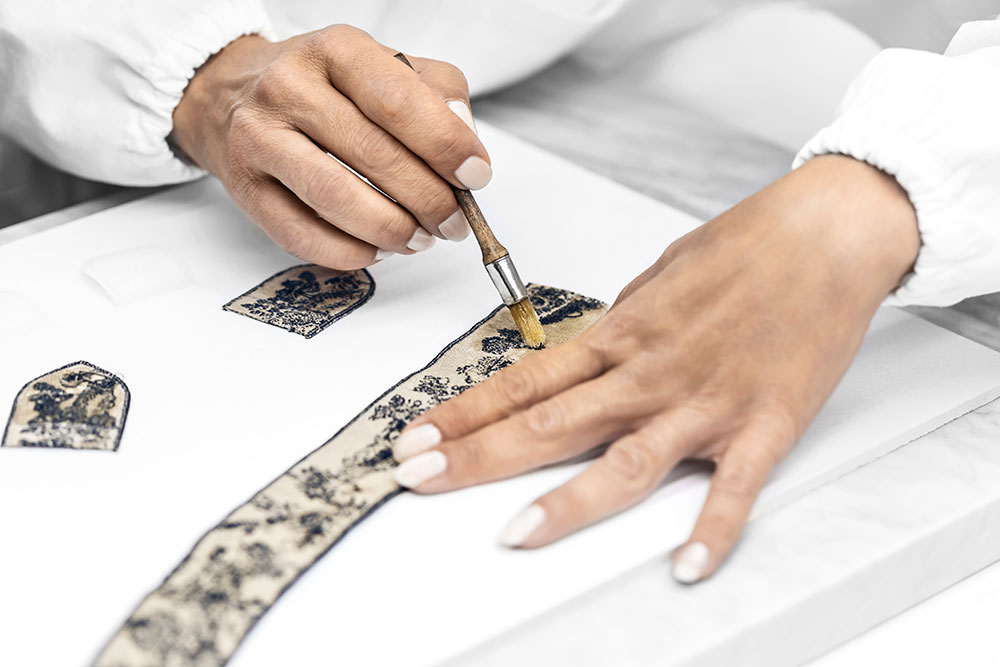 Dior (ディオール) の「トワル ドゥ ジュイ」テキスタイルを用いた新作バッグ「ブック トート」の制作風景を捉えた映像が公開された。