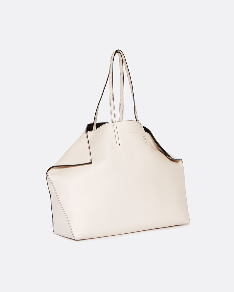 まず第一弾としてオープンするのは、2018年秋冬コレクションから厳選されたウェアを展開するポップアップストア。プリントやカッティングのディテールが美しいドレスなど、Alexander McQueen ならではの世界観が堪能できるアイテムが一堂に会する。そして、第二弾としてオープンするのは、豊富なアクセサリーが揃えられるポップアップストア。今回のオープンを記念して2019年春夏プレコレクションの新作である「バタフライトートバッグ」より限定色が3色登場。使いやすいアイボリーやネイビーに加え、存在感抜群のレッドなどワードローブに加えたいとっておきのカラーがラインナップ。柔らかなレザーに蝶々の羽のように角が折り曲げられたデザインが特徴的なバッグは、是非とも一度直接手にとっていただきたい。