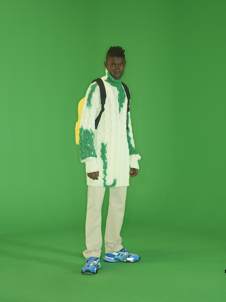 Balenciaga は今シーズン、ウィメンズとメンズのクリエイティブディレクションを統合するという新たな試みに挑戦。前シーズンより引き続き、ウィメンズとメンズどちらも多様なテキスタイルを織り交ぜたレイヤードスタイルが提案されている。アイコニックなスティレットブーツは勿論、注目いただきたいのは3-D モールデッド・テーラリングによってウエストを大胆にくびれさせたモダンシェイプのコート。ウィメンズ、メンズどちらにも登場しており、クリストバル・バレンシアガのヘリテージをモダンにアップデートさせたデザインは是非ともワードローブに取り入れたいアイテムだ。同コレクションでは、LGBTQ レインボーやジェンダーイクオリティを示すモチーフと取り入れるなど、ブランドとしてのアティチュードもしっかりと表現されている。