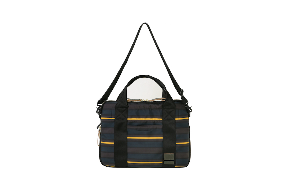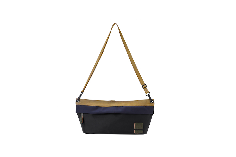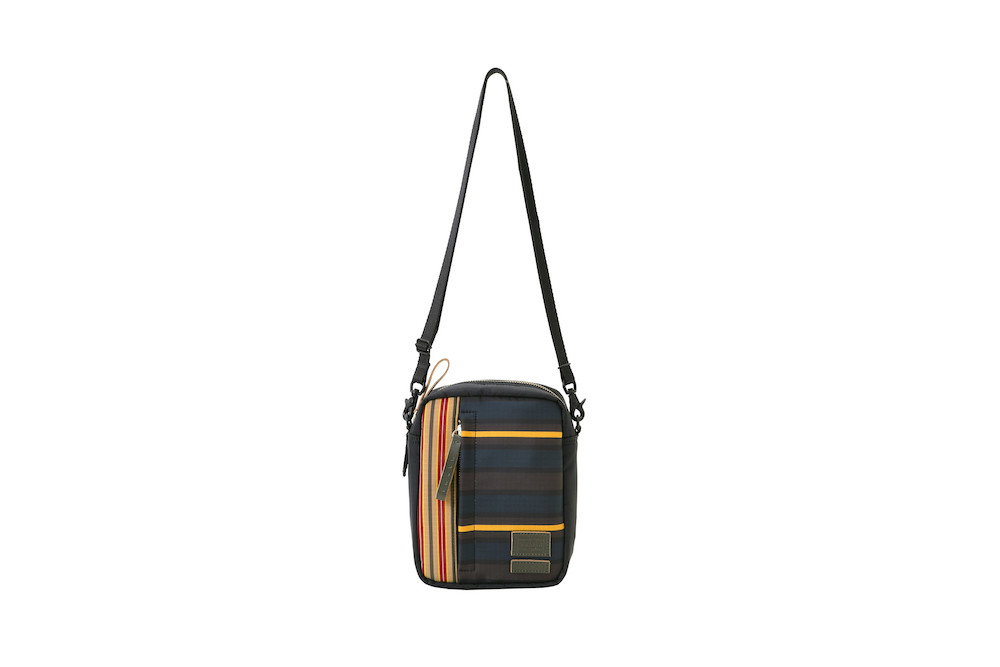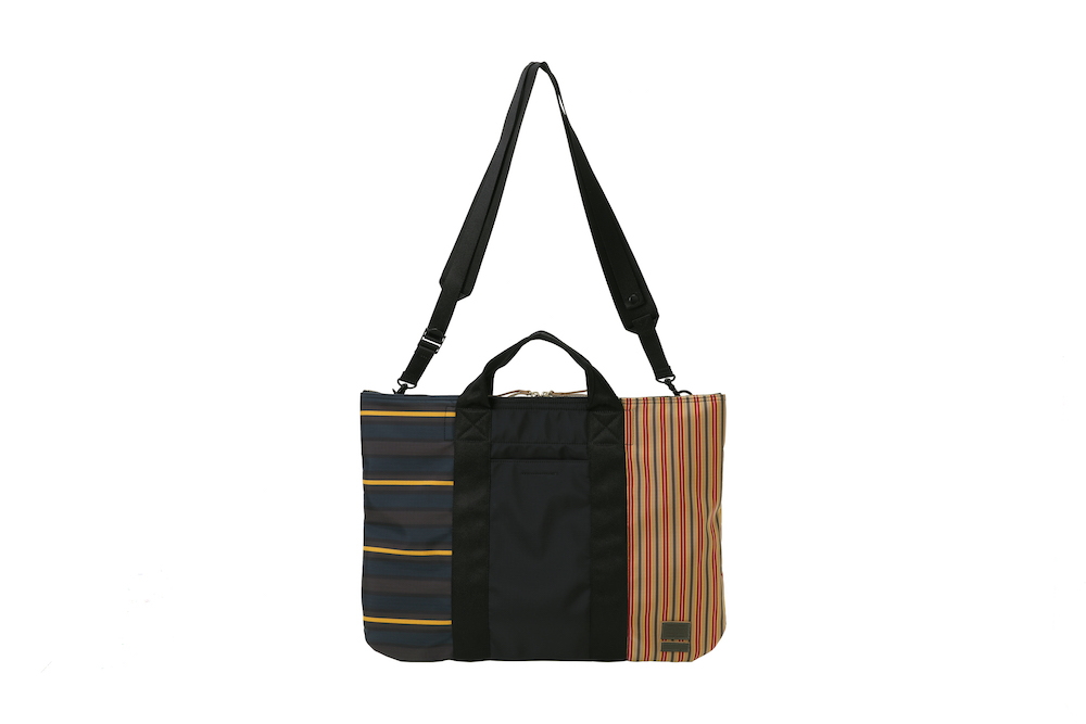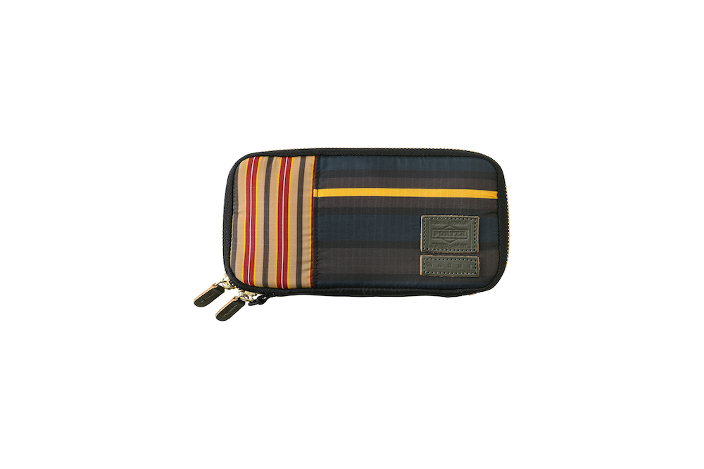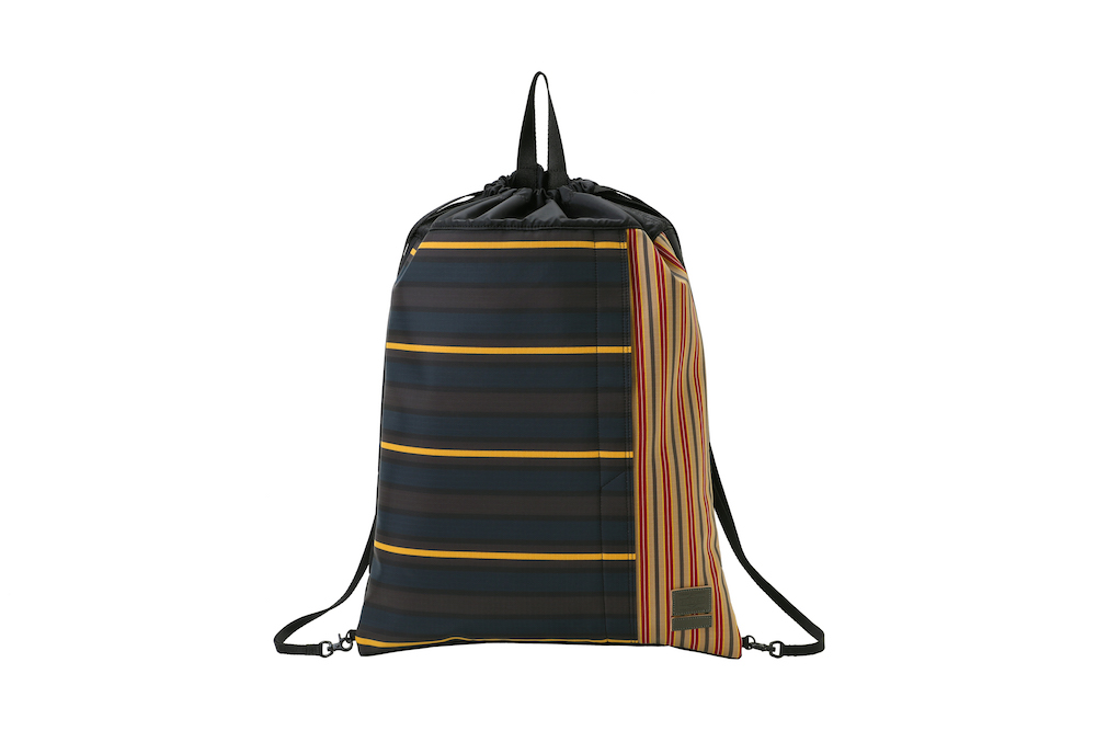 今回のコレクションで登場したのは、バッグのサイズの小型化やスマートフォン、タブレット端末といったガジェットの保護機能といったニーズに対応したミニバッグの数々。薄く丈夫なナイロン・リップストップとポリエステルジャージーを重ねることによって、軽量化と耐久性など機能性を追求。ダークブルーのボーダーとレッドのストライプを大胆に組み合わせたプリントと、ネイブートブラックの無地のファブリックにカーキのテープを組み合わせたバイカラーと2つのカラーバリエーションがお目見え。また、中に見えるジャージーは、中に入れた荷物が判別しやすいブライトカラーになっている。フロントに縫い付けられた PORTER と MARNI のレザータグや、ファスターの引き手などは、今回はじめてオリーブグリーンカラーが採用されるなど、注目すべきポイントが目白押し。