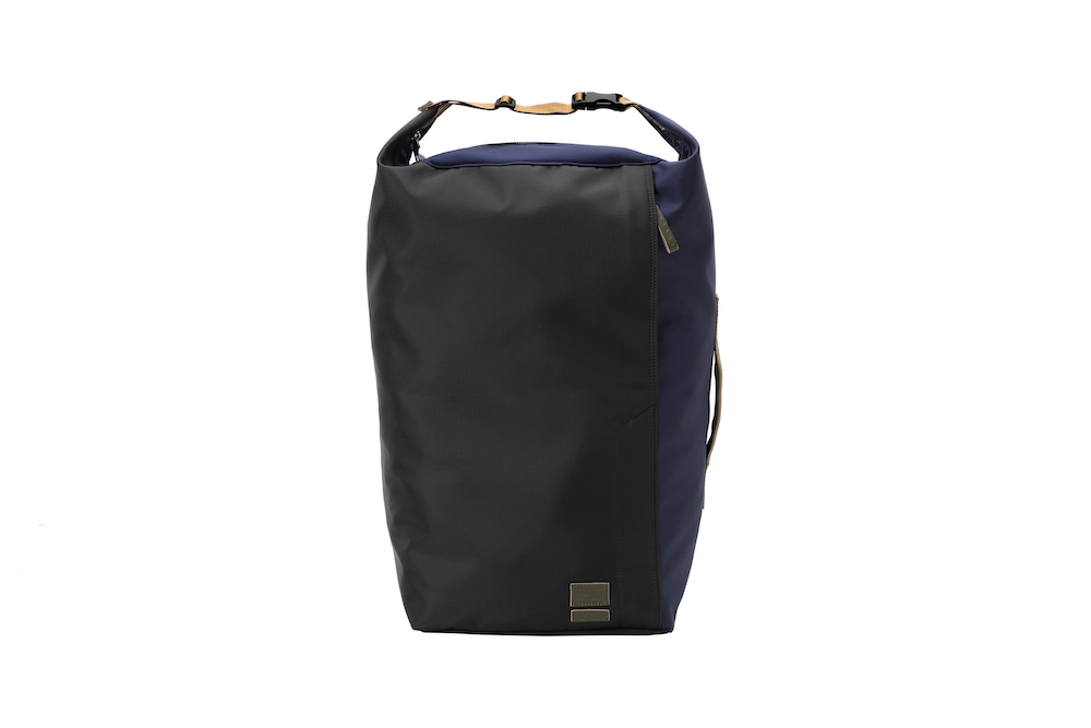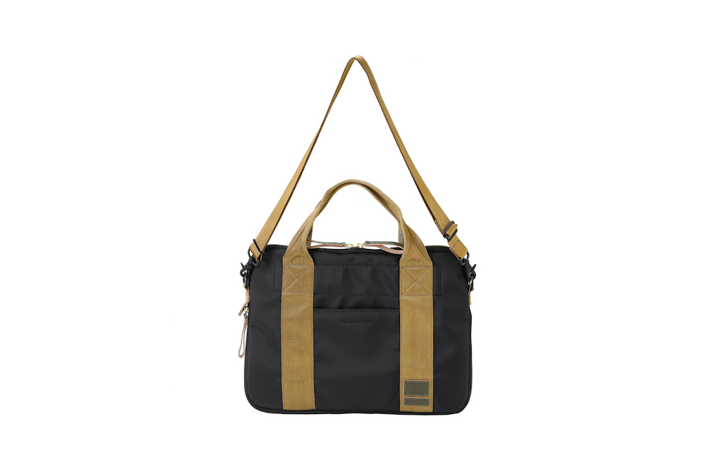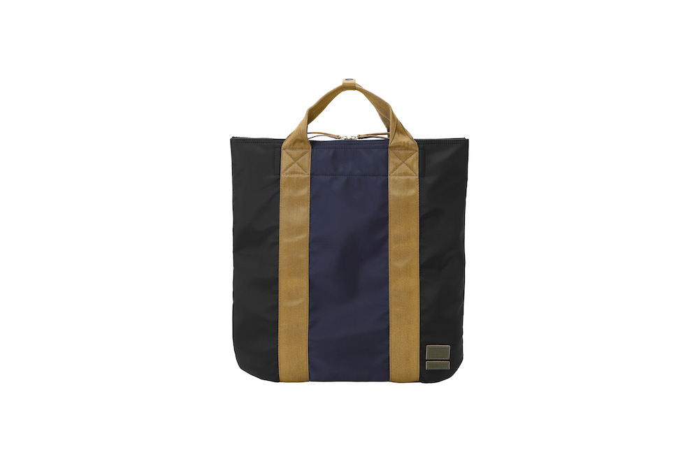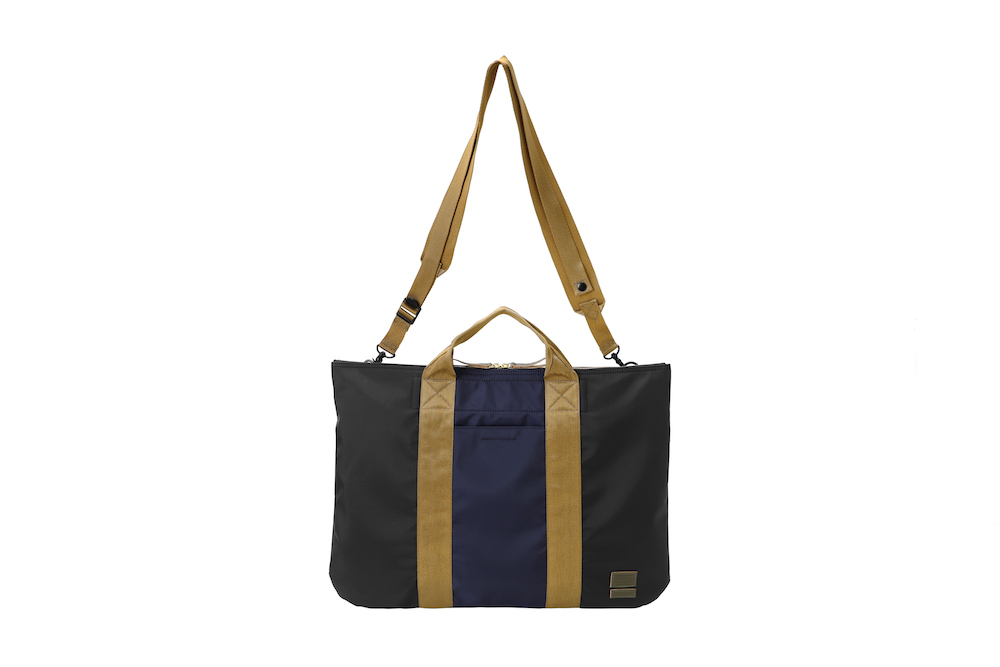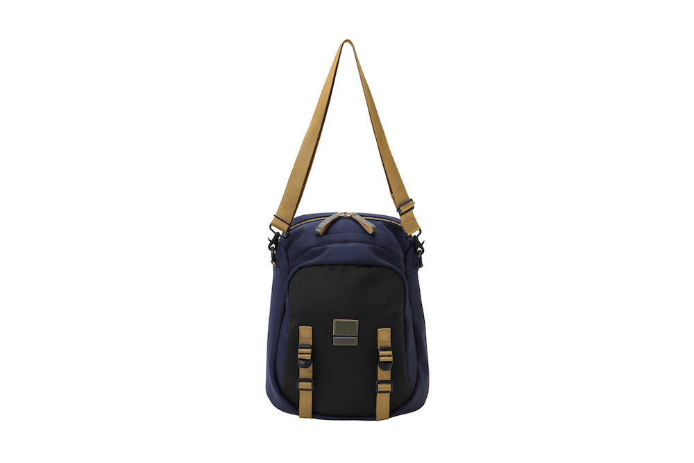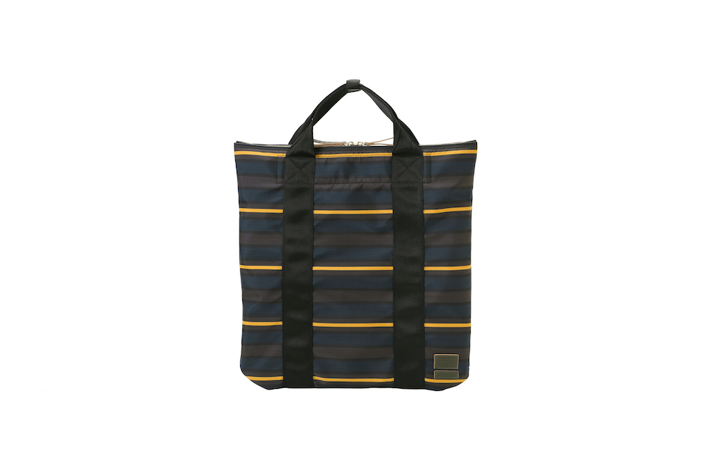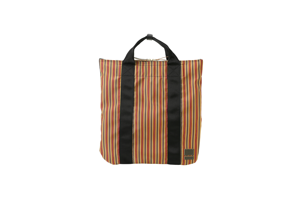 今回のコレクションで登場したのは、バッグのサイズの小型化やスマートフォン、タブレット端末といったガジェットの保護機能といったニーズに対応したミニバッグの数々。薄く丈夫なナイロン・リップストップとポリエステルジャージーを重ねることによって、軽量化と耐久性など機能性を追求。ダークブルーのボーダーとレッドのストライプを大胆に組み合わせたプリントと、ネイブートブラックの無地のファブリックにカーキのテープを組み合わせたバイカラーと2つのカラーバリエーションがお目見え。また、中に見えるジャージーは、中に入れた荷物が判別しやすいブライトカラーになっている。フロントに縫い付けられた PORTER と MARNI のレザータグや、ファスターの引き手などは、今回はじめてオリーブグリーンカラーが採用されるなど、注目すべきポイントが目白押し。