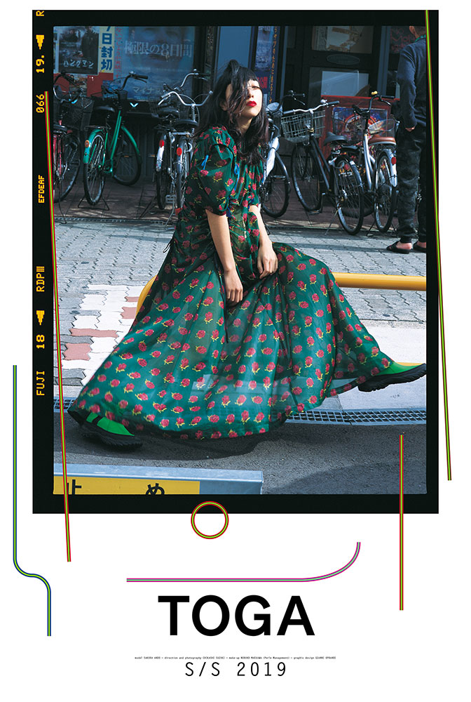 『百円の恋』や『愛のむきだし』で知られ、カンヌ国際映画祭にてパルムドールを受賞した『万引き家族』で海外からも熱い視線が集まっている女優、安藤サクラ。現在放送中の NHK 連続テレビ小説『まんぷく』の主演に大抜擢され、大きな話題を呼んでいる彼女が、TOGA のイメージビジュアルのモデルを務めるのは、今回で3回目。全て鈴木親がフォトグラファーを務めており、TOGA 2011-12年秋冬、2016年春夏のイメージビジュアルに続いての登場となった。鈴木親は『まんぷく』の撮影の舞台でもある大阪で撮影を敢行。大阪の中でも一際独特の雰囲気が漂う新世界で TOGA の最新コレクションを纏った彼女にレンズを向けている。