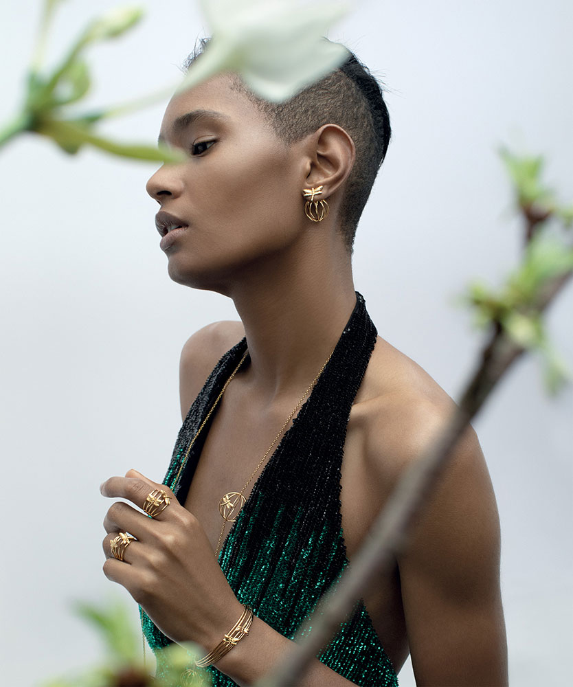 今秋発売した「モダンガーデン」ジュエリーコレクションは、トンボのリングや花柄のラップネックレス、鳥かごの曲線を表現したサークルピアスなど、フェミニンで遊び心に満ちた個性的なアイテムが揃い、クリスマスギフトにもぴったり。メンズには、アルマーニのイーグルロゴを配したカフスやブレスレット、スクエアペンダント付ステンレススチールネックレスなど、デイリーユースにぴったりなシンプルでスタイリッシュなアイテムが揃う。