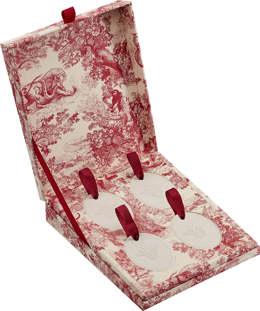 「トワル ドゥ ジュイ」とは、1947年の創業当時よりメゾンが愛用してきたテキスタイルで、パリ アヴェニュー モンテーニュ30番地にムッシュ ディオールが初めて構えたブティックの壁にも用いられるなどブランドにとって重要な意味を持つアーカイブのひとつ。Maria Grazia Chiuri (マリア・グラツィア・キウリ) は2019年クルーズコレクションでこの「トワル ドゥ ジュイ」にトラやサル、ライオン、ヘビといった野生動物を加え、新たなテキスタイルへとアップデートさせた。今回 Dior のホームコレクション DIOR MAISON (ディオール メゾン) より新たにお目見えしたカプセルコレクションは、プレートやテーブルクロス、キャンドル、クッションやノートブックなどをラインナップ。室内をレッドやブルー、グリーン、ブラックのプリントで明るく彩ってくれるホリデーシーズンにうってつけのコレクションに仕上げられている。先日 Dior から届いたスペシャルムービーとあわせてチェックしてみてほしい。