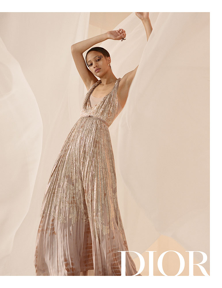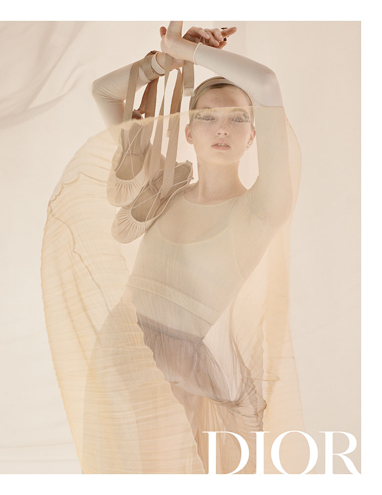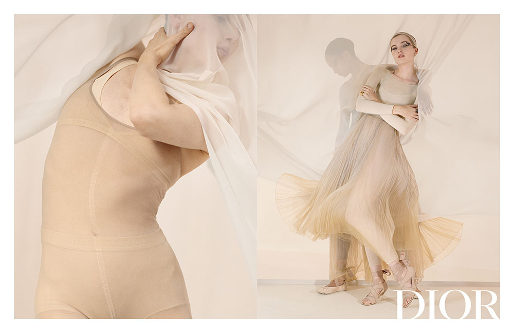 独特の色彩感覚と感性が高い支持を集め、気鋭フォトグラファーとしてめきめき頭角を現している Harley Weir が Dior とタッグを組むのは、今回が初めて。キャンペーンでは、2019春夏 プレタポルテ コレクションのショーでパフォーマンスを演出したテルアビブ拠点の女性振付け師 Sharon Eyal (シャロン・エイアル) が作り出した影によって浮かび上がるモデルたちのしなやかで繊細なボディラインをフィーチャー。「わたしの仕事はプレタポルテのデザインを通じて身体を賛美し、身体がわたしたちに与えてくれる他者への見せ方だけでなく、自分自身への見せ方の可能性を最大限に生かすことです」と語るアーティスティック ディレクターの Maria Grazia Chiuri (マリア・グラツィア・キウリ) によるモダンなクリエイティビティを Harley Weir が見事表現している。ヌーディーカラーを基調に透明なシルエットが幾重にも重なり合ったイメージから現代における Dior のエレガンスを存分に堪能していただきたい。