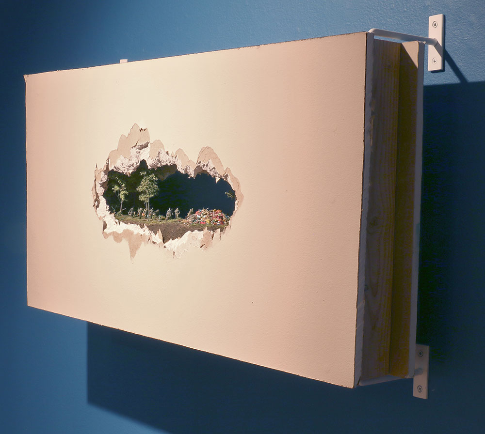 NYを拠点に活動する Thomas Doyle (トーマス・ドイル) の日本で初となる個展「HOLD YOUR FIRE」が2月13日(水)までの期間、DIESEL ART GALLERY にて開催している。画家と版画家の経験を持ち、100分の1〜43分の1スケールで制作される Thomas Doyle の彫刻作品は、自然による静かな惨事にさらされた人々を題材としているものが多いことで知られている。