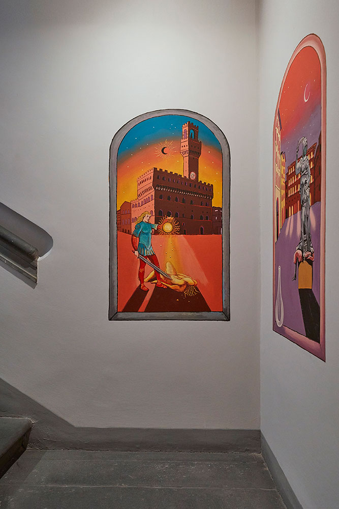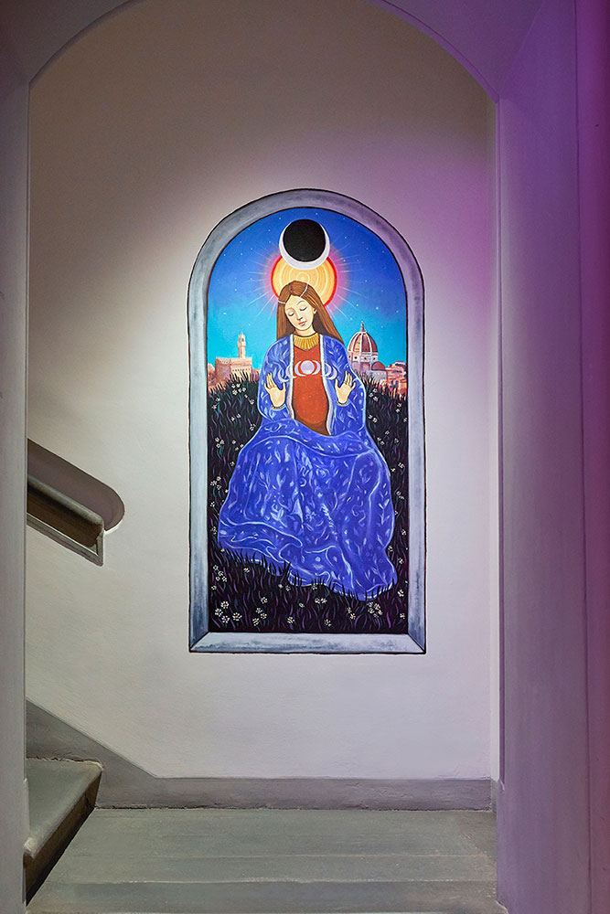 また、Gucci Garden ギャラリー内には新しいウォールペインティングも。批判的かつ政治的なメッセージを鋭く表現するブラック&ホワイトの作品で知られるイタリアのアーティスト MP5 と鮮やかな色彩で幻想的な世界を描き出す英国人アーティスト Alex Merry (アレックス・メリー) をフィーチャー。ショップには MP5 の作品をあしらったスペシャル コレクションも展開されている。是非とも近くに立ち寄った際には、足を運んでみていただきたい。