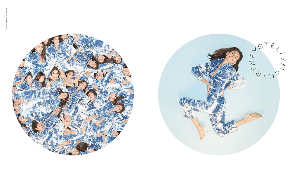 今回で7回目の起用となった Kate Moss と今シーズンのランウェイショーにも出演し、キャンペーンに初登場を果たした Kaia Gerber のふたりが体現するのは、今と未来の象徴的なステラ マッカートニー ウーマン。彼女達のリラックス したアティチュードを閉じ込めたキャンペーンのビジュアルで Kaia はタイダイが施されたオーガニックデニムのジャンプスーツを、Kate は ピュアホワイトオーガニックコットンのジャンプスーツを着用。くすんだパステルや色あせたネオンカラーといった背景とのコントラストで、コレクションが提案する色彩と感覚の強さと柔らかさを反映している。キャンペーンを通じてクリエイティブのテーマである女性らしさを体現するグラフィックな円形を中心にフィーチャーすることで、ブランドのロゴとデザイナーのデザインに浸透するテーマにリンク。遊び心の効いた円形のシェイプは、Stella McCartney のサステナビリティへのコミットメントと循環型経済へのサポートを象徴している。