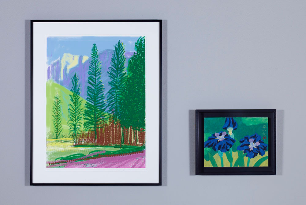 絶えず遊動し続ける水面や、波紋が放つきらめき。日向と日陰で変化するヴィヴィッドな色合い。David Hockney と福田平八郎という国籍も時代も違う二人のアーティストが魅せられたもの、それは普遍的な自然のリズムと彩り。その大胆な色面構成によって、限り無く抽象に近い作品を生み出してきた。目の前に何があるのかではなく、どのような色があるのか。意識を物体から色彩へと向けることで、全く新しい世界が見えてくるのではないだろうか。本展では、iPadを用いて描かれた、David Hockney の「The Yosemite Suite」シリーズを「花菖蒲」 をはじめとした福田の代表作品 6 点と共に展示する。日常の情景をひたすらに描き続け、「ものを見る」ことの喜びを最大限に表現し続けてきた今世紀を代表するカラリストの競演をぜひこの機会に間近でみてほしい。