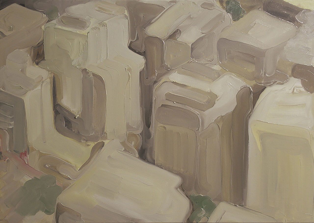 イタリア・ボローニャを拠点に活動をする Rudy Cremonini の作品は、「日常」や「普通」を掘り下げ、その下に潜む矛盾をあらわにするものが多いのが特徴のひとつだ。風景や部屋、人物像や動植物、 並んだ石膏像。作品に描かれたイメージは一見有り触れた日常的な場面だが、その根本的主題となるものは、良心と本心の感情の往来、犠牲を払うことによって起こり得る喜び、安全が保障される代わりに奪われる自由など生きる上での矛盾や葛藤などを扱っている。彼の作品には常にこうした極めて個人的な空虚感や孤独を示唆する比喩的要素が含まれている。 また、分厚い油絵の具で描かれた曖昧な形態と特徴的な筆跡、そして本展のタイトル「The roots of lotus」からも窺えるように、決して煌びやかではない表象そのものの性質を探求し、魅力や愛らしさを表現する喜びも彼の創造性の原点と言えるだろう。