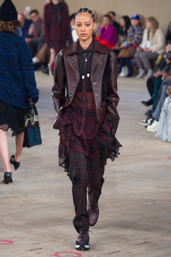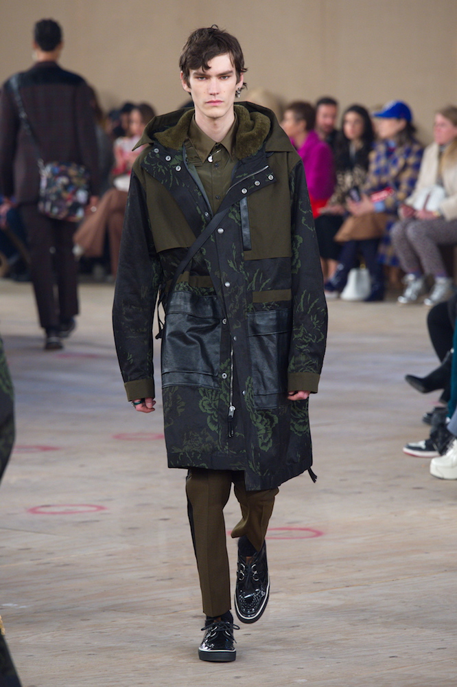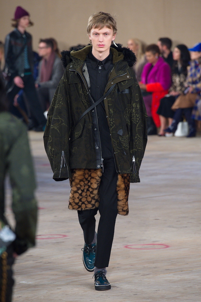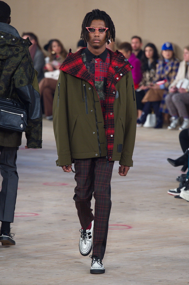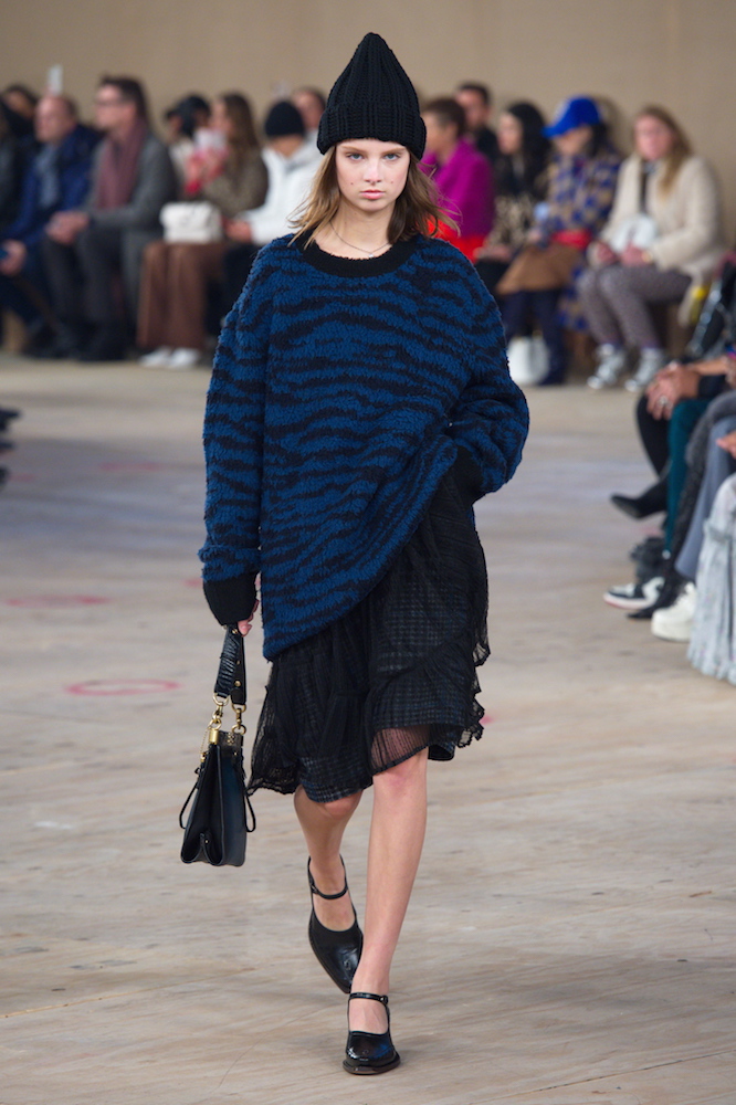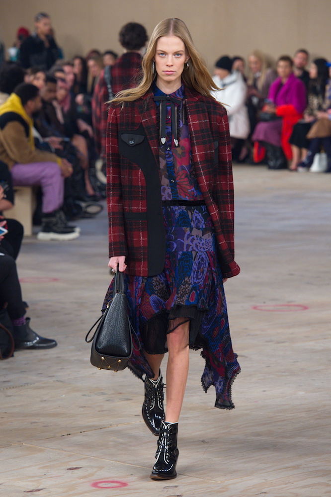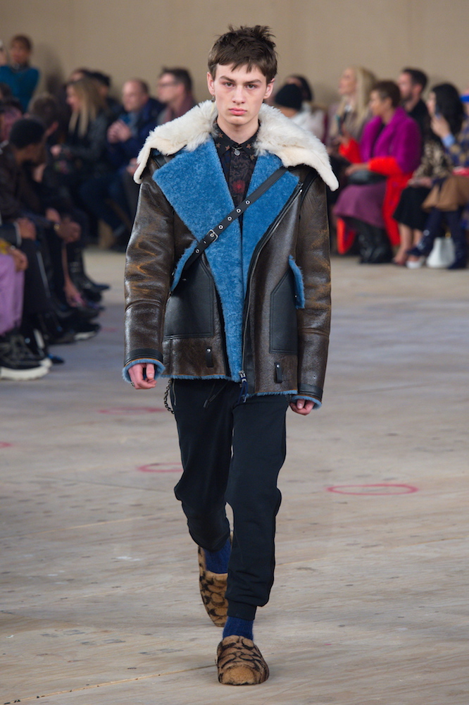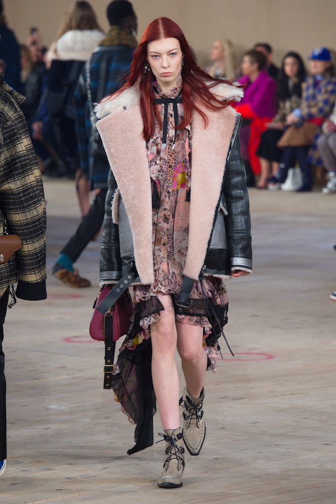 会場となったのは、ニューヨークのアメリカ証券取引所。カラフルなモチーフがテキスタイルのように反復する作風で知られるアメリカ出身のアーティスト Kaffe Fassett (カフェ・ファセット) の作品にインスパイアされたという今回のコレクションもまた引き続き、ダークなエッセンスが散りばめられたフォークロアスタイルが多数お目見え。サイケデリックなムードは健在ながらも、ブルーやパープルなど寒色が基調となることでよりクールな印象に仕上げられている。またチェックパターンのレイヤードが組み合わさることで、Stuart Vevers 節の炸裂したコレクションとなった。