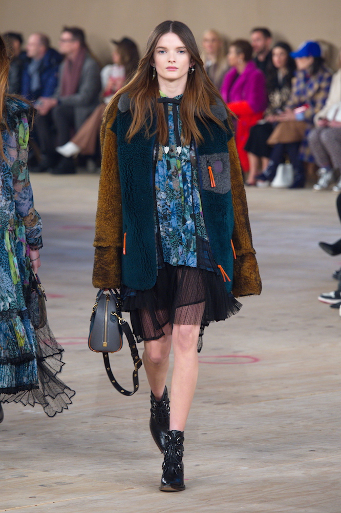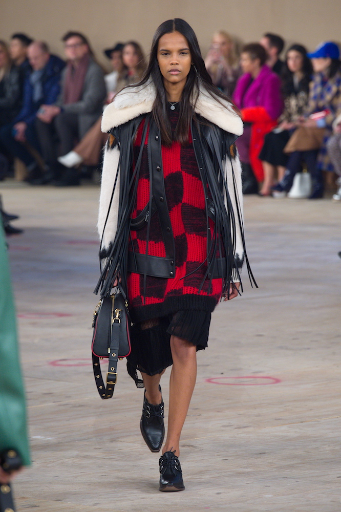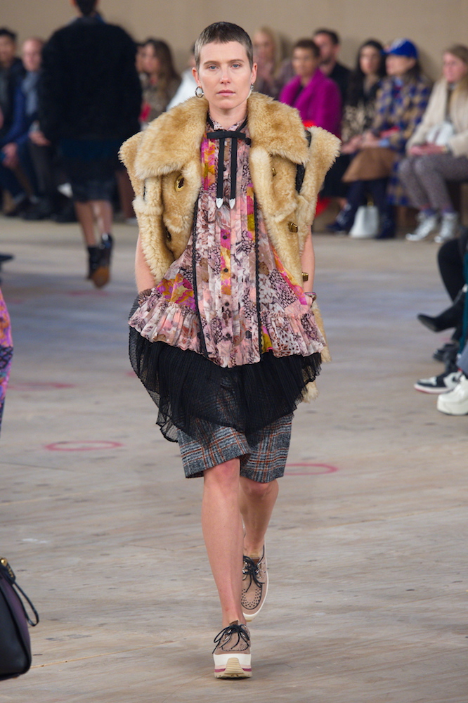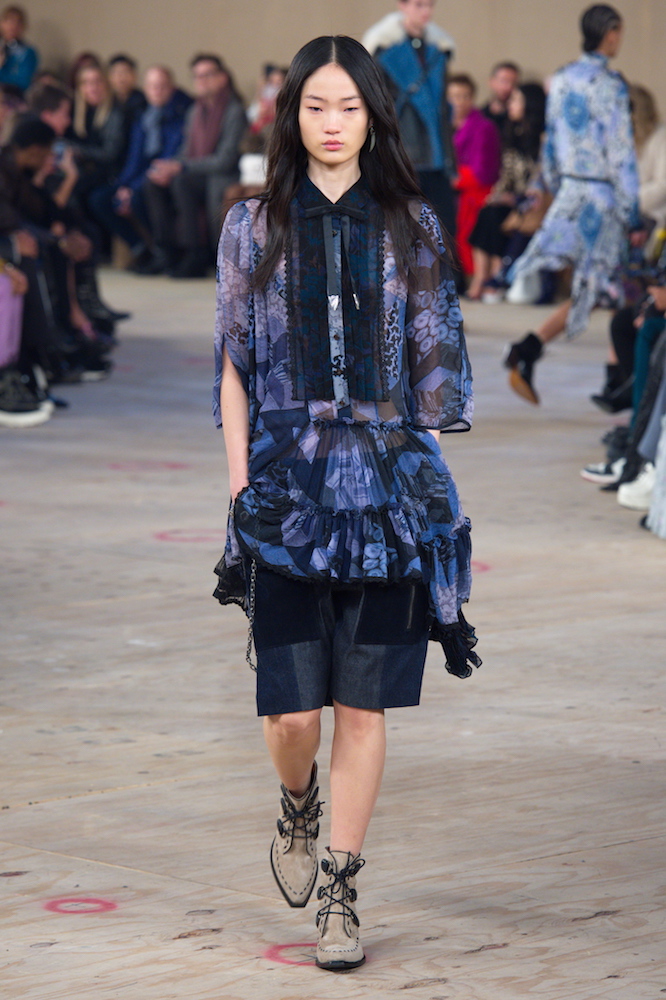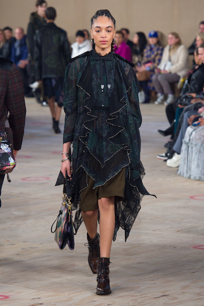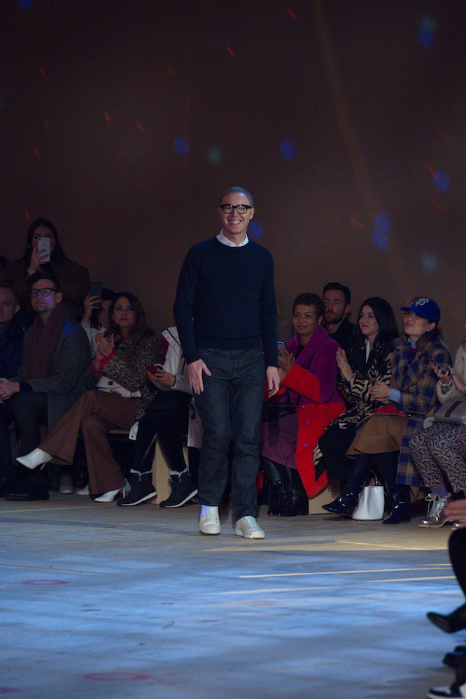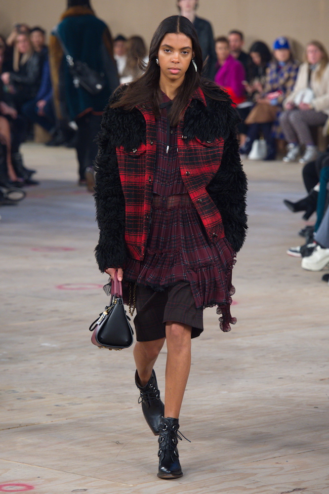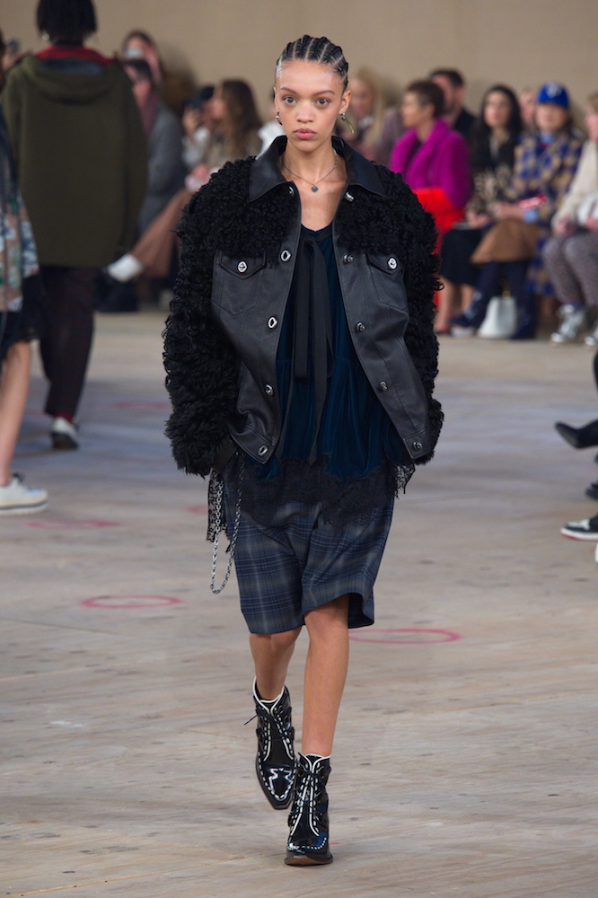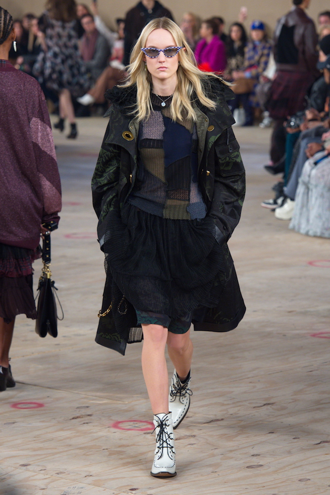 会場となったのは、ニューヨークのアメリカ証券取引所。カラフルなモチーフがテキスタイルのように反復する作風で知られるアメリカ出身のアーティスト Kaffe Fassett (カフェ・ファセット) の作品にインスパイアされたという今回のコレクションもまた引き続き、ダークなエッセンスが散りばめられたフォークロアスタイルが多数お目見え。サイケデリックなムードは健在ながらも、ブルーやパープルなど寒色が基調となることでよりクールな印象に仕上げられている。またチェックパターンのレイヤードが組み合わさることで、Stuart Vevers 節の炸裂したコレクションとなった。