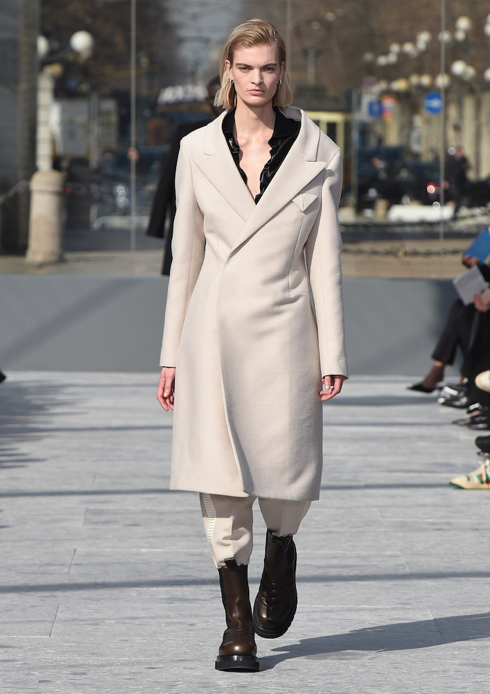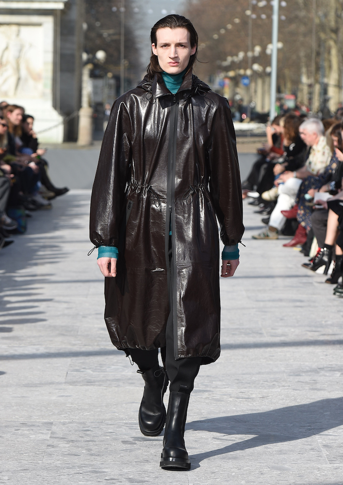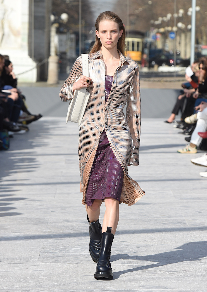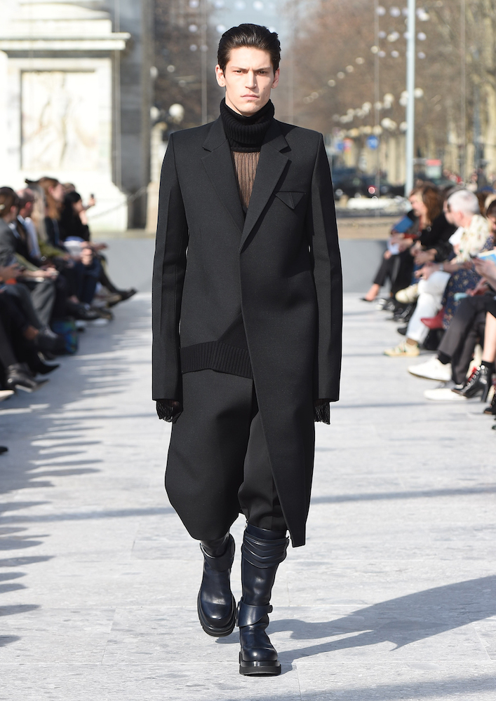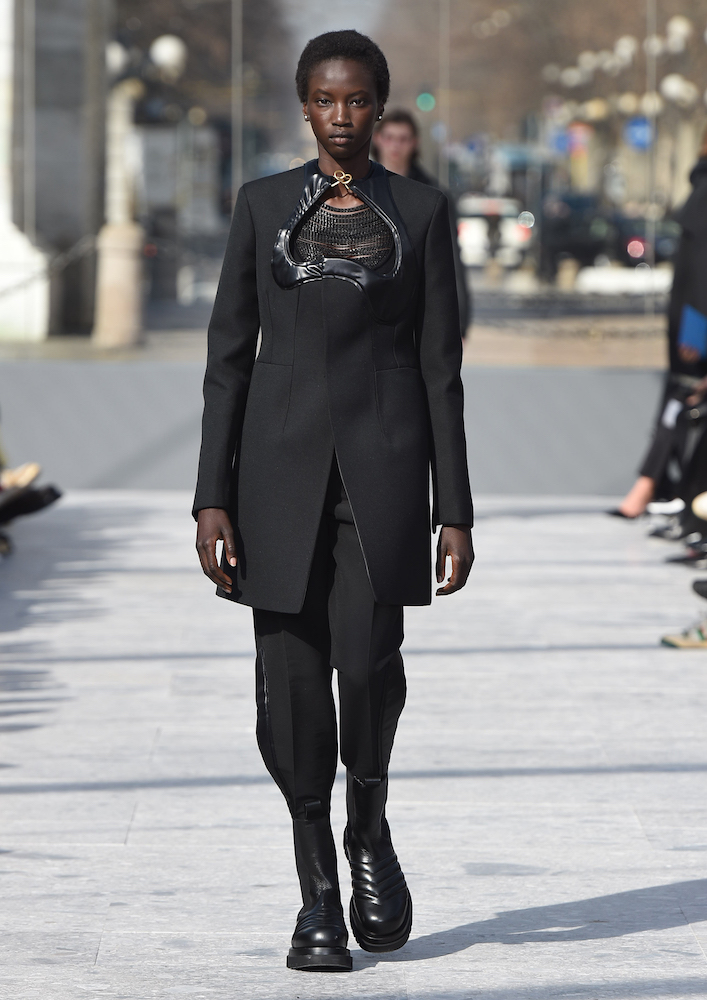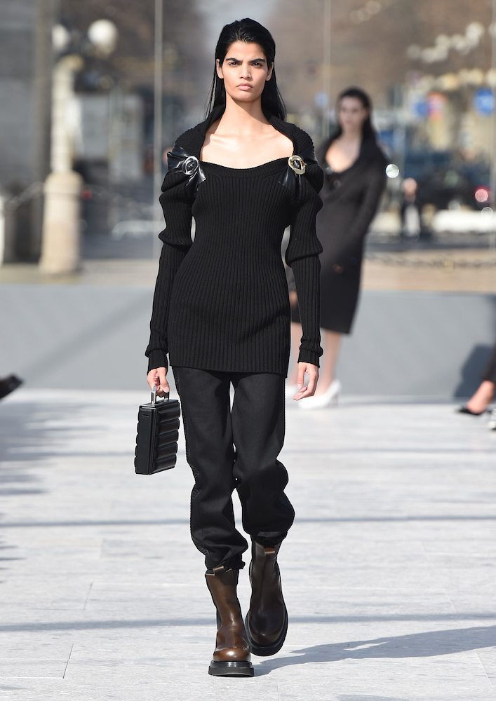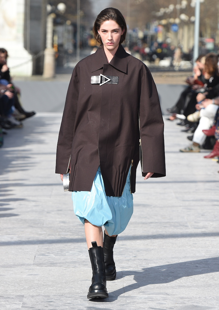 ショーの会場となったのは、ミラノのセンピオーネ公園のある凱旋門、アルコ・デッラ・パーチェ。「平和の門」という意味を持つこの歴史的建造物に設けられた特設会場は、まさに Daniel Lee の晴れ晴れしい門出にぴったりの舞台と言えるだろう。
