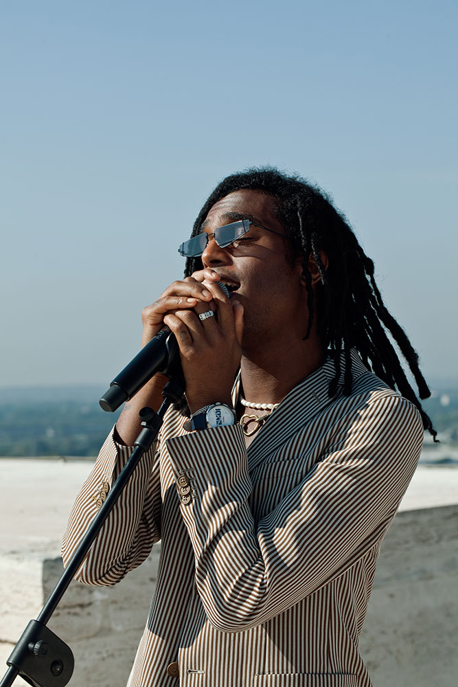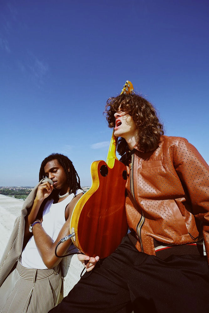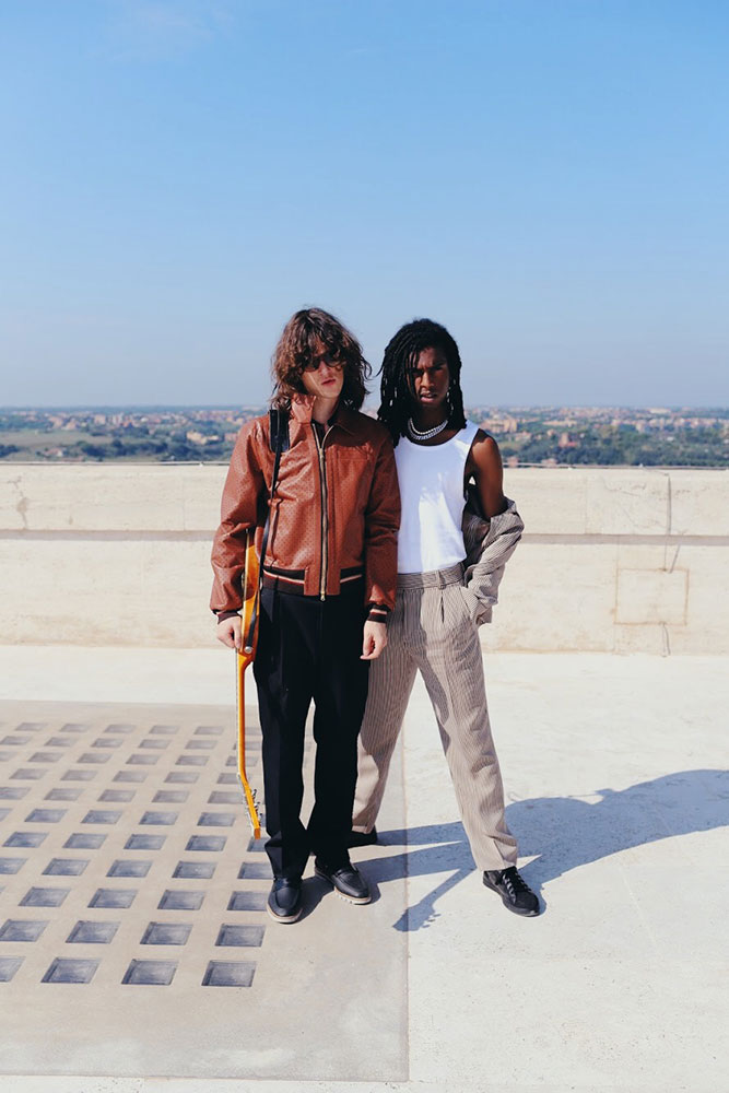 最新作に登場したイギリス人アーティスト Bakar と Jack Laver は2人でダイナミックなミュージックデュオを結成しており、映像内では Fendi の本社社屋であるイタリア文明宮のルーフトップを舞台に自由自在にジャンプやランニング、バウンスしながら「Million Miles」のライブパフォーマンスを披露している。Bakar はSNSを使わずに古典的な方法で自身の楽曲を発表し続けており、Elton John (エルトン・ジョン) や Skepta (スケプタ)、Virgil Abloh (ヴァージル・アブロー) にも一目置かれているアップカミングなミュージシャン。Jack Laver はギタリストに加えて、ペインター、モデルなど様々な分野で活躍するマルチタレントのアーティストだ。2人が着用するのは勿論、Fendi の2019年春夏メンズコレクション。彼らの一連のフリースタイルなプレイと Fendi のカジュアルながらもエレガントな装いが見事な融合を果たした映像は必見だ。