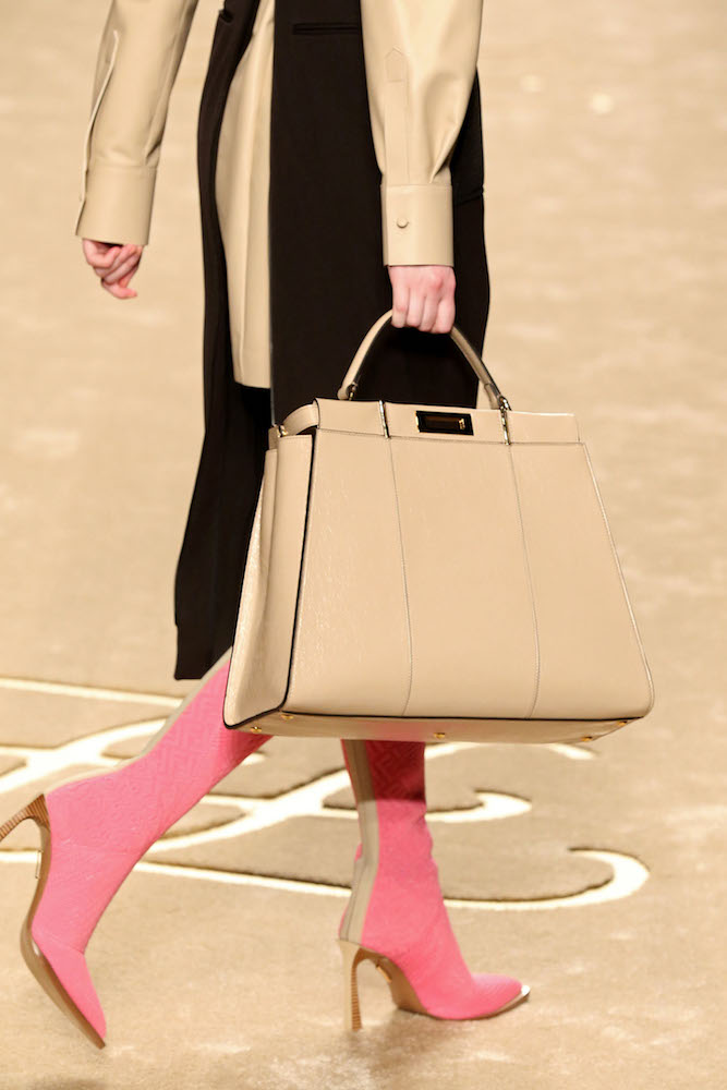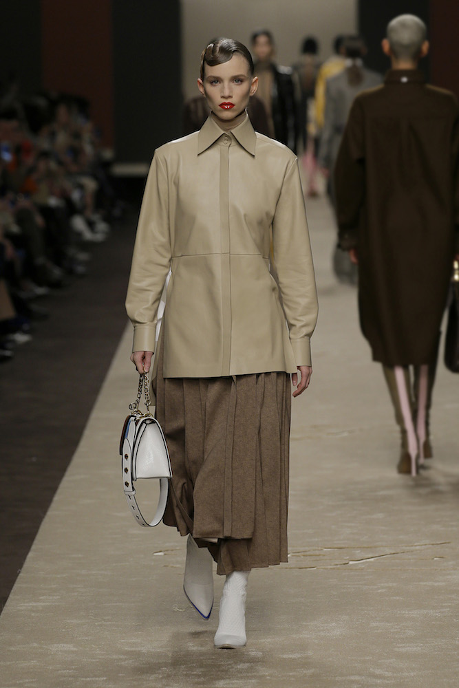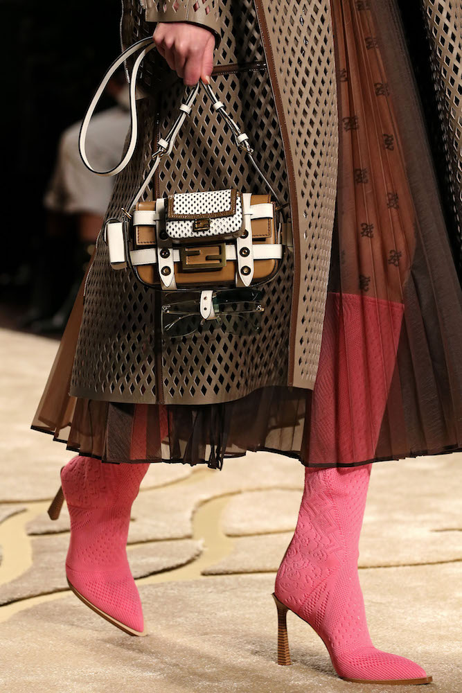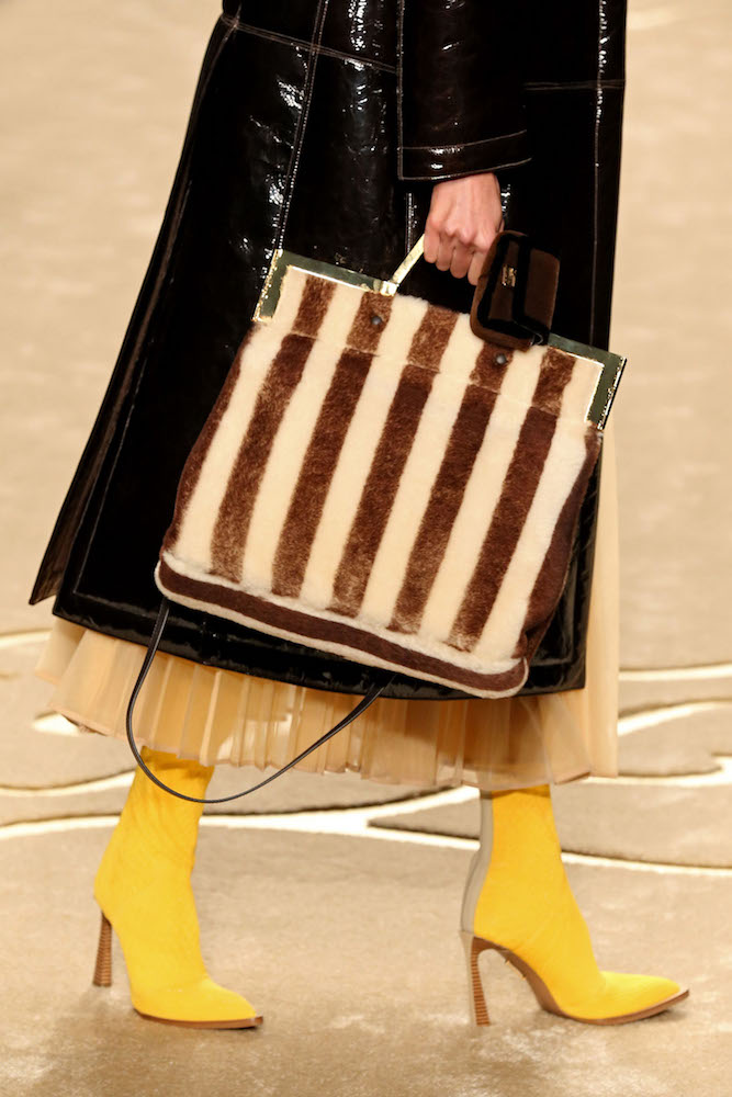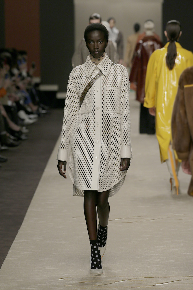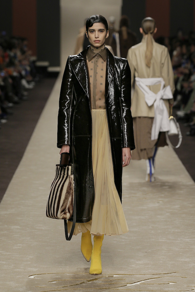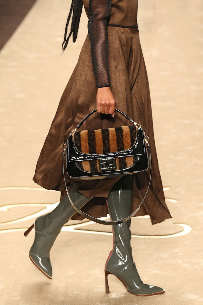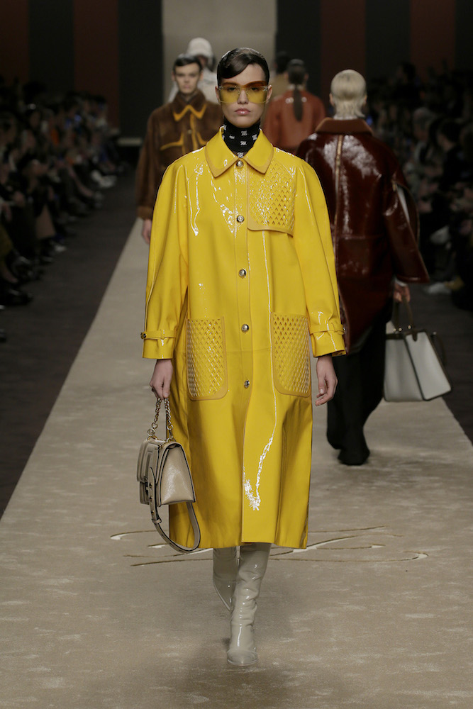 パテントにパンチングなどレザーのバリエーションが増えている。その分、秋冬なのにファーアイテムが少なく感じた。ファーはフェンディのアイデンティティで、今後も打ち出して行く姿勢を取っているのが潔い。
