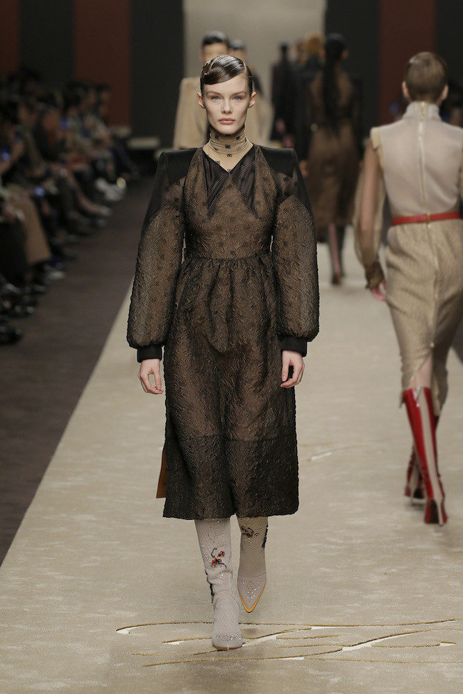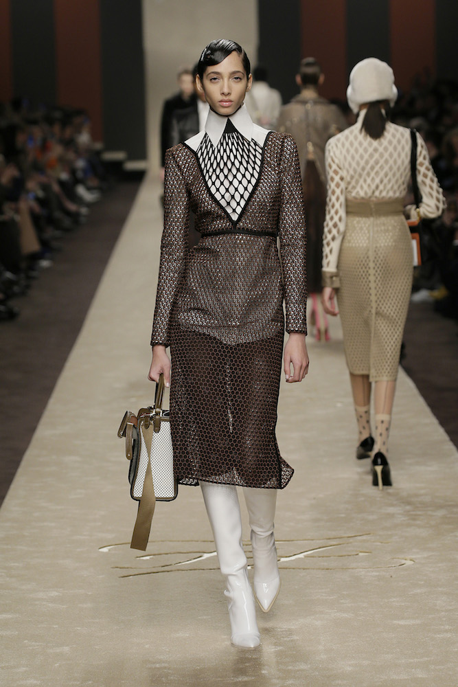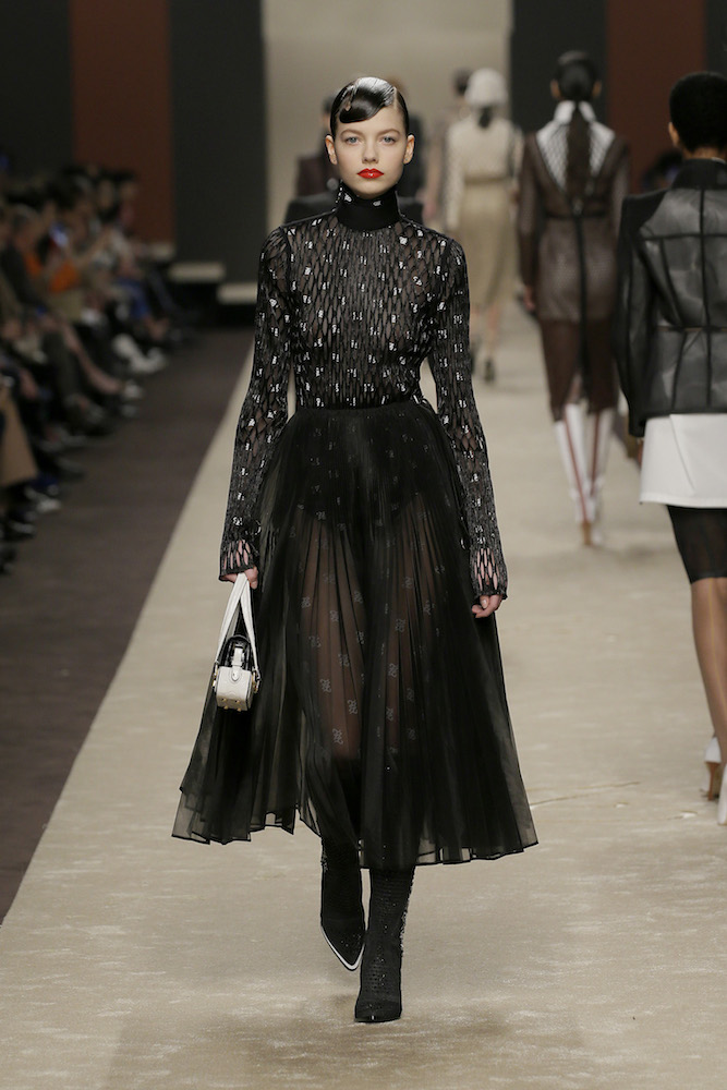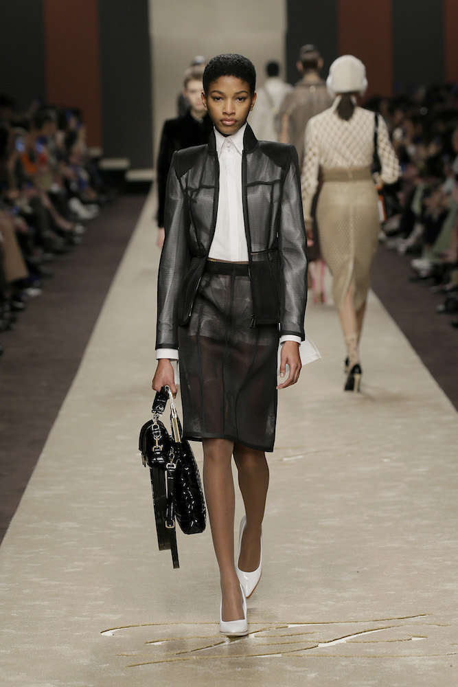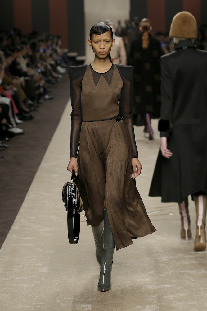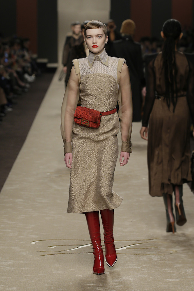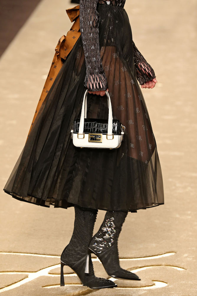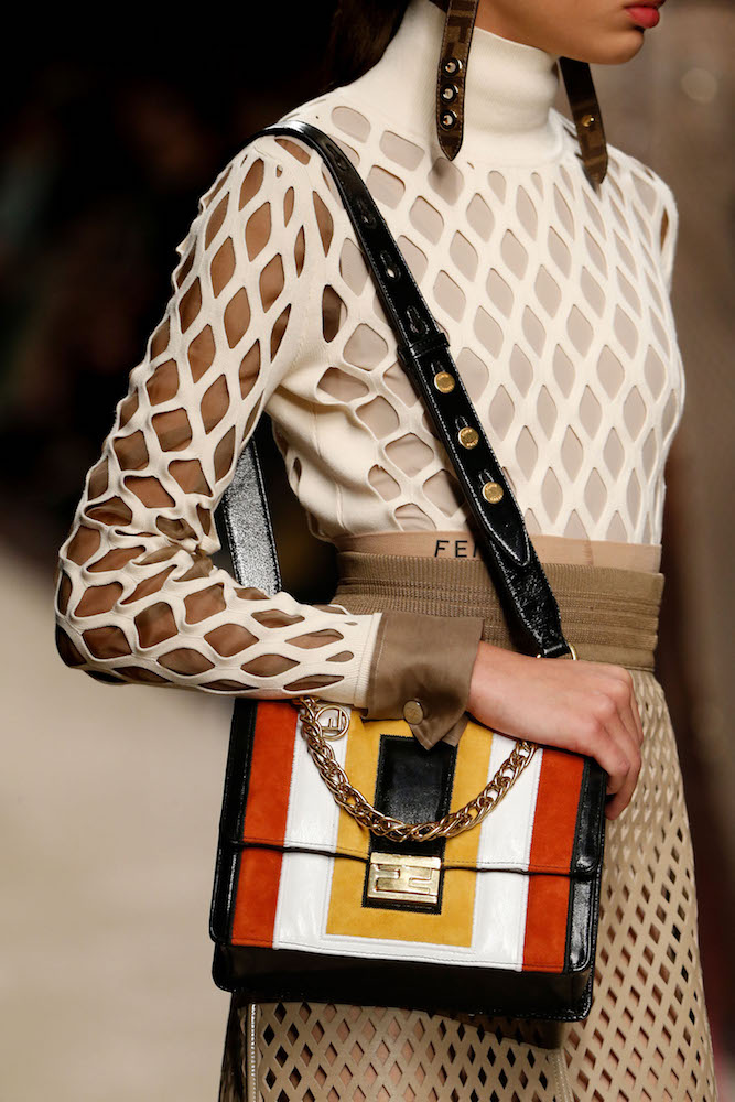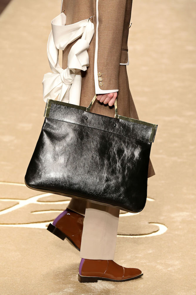 パテントにパンチングなどレザーのバリエーションが増えている。その分、秋冬なのにファーアイテムが少なく感じた。ファーはフェンディのアイデンティティで、今後も打ち出して行く姿勢を取っているのが潔い。