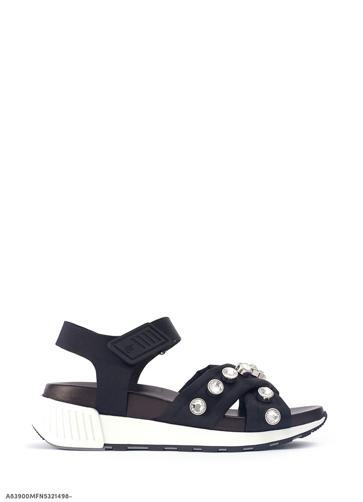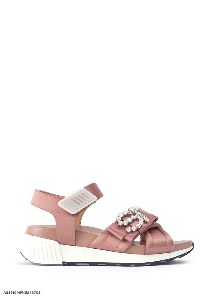 Sergio Rossi の新作サンダルは、安定感があり汎用性の高いランニングソールを採用。アッパー部分にはシルク地にクリスタルが施され、華やかな印象を放ちつつも、インソールにはナッパレザーとホワイトのソールでコンテンポラリーなデザインに。アンクルにはベルクロ付きストラップがあしらわれ、スポーティーかつ機能的な一足に仕上げられている。ドレスのエレガントなスタイルからカジュアルなパンツスタイルにも、日常のアーバンスタイルで活躍してくれること間違い無し。是非ともレジャーが楽しくなるこれからの季節に向けて一足ゲットしてみてはいかがだろうか?