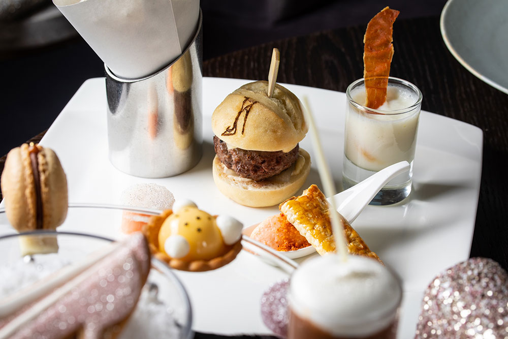 このスペシャルなアフタヌーンティーには、スタースタッズやグリッターでブランドの世界観を表現したセイボリー6種とスイーツ8種がお目見え。グリッターパンプスを象ったサブレやスターを散りばめたタルト、シューズのイラストあしらったミニバーガーなど乙女心をくすぐるメニューを洗練された空間で思う存分堪能出来るという。そして、約30種類のドリンクもお替り自由に。。ひとりひとつ爽やかなフローラルとムスクが香るフレグランス「JIMMY CHOO L’EAU EAU DE TOILETTE (ジミー チュウ ロー オードトワレ)」のミニチュアサイズもプレゼントという贅沢さだ。是非ともこの特別な機会に JIMMY CHOO のアフタヌーンティーとともに優雅なひと時を楽しんでみてはいかがだろうか。
