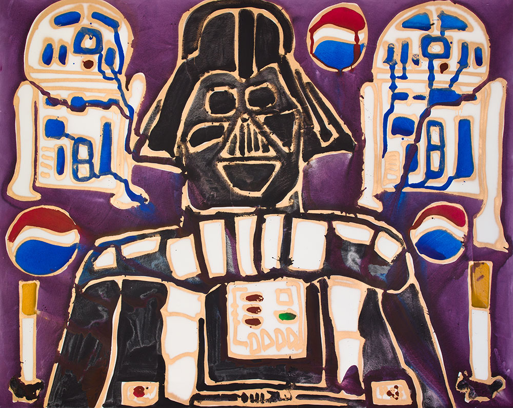 大きなキャンバスに鮮やかな色彩を用いて、漫画のキャラクターやポップカルチャーのアイコン、あるいはニューヨークのストリートカルチャーを表現するアーティストとして知られる Katherine Bernhardt (キャサリン・バーンハート)。その作品には、ガーフィールド、ピンクパンサー、ミッキーマウス、スターウォーズといったコミック、アニメーション、映画のキャラクターたち、あるいは NIKE などのスニーカー、タバコ、コカコーラ、SCOTCH テープといった私たちが日常生活の中で頻繁に目にするモチーフが数多く登場する。