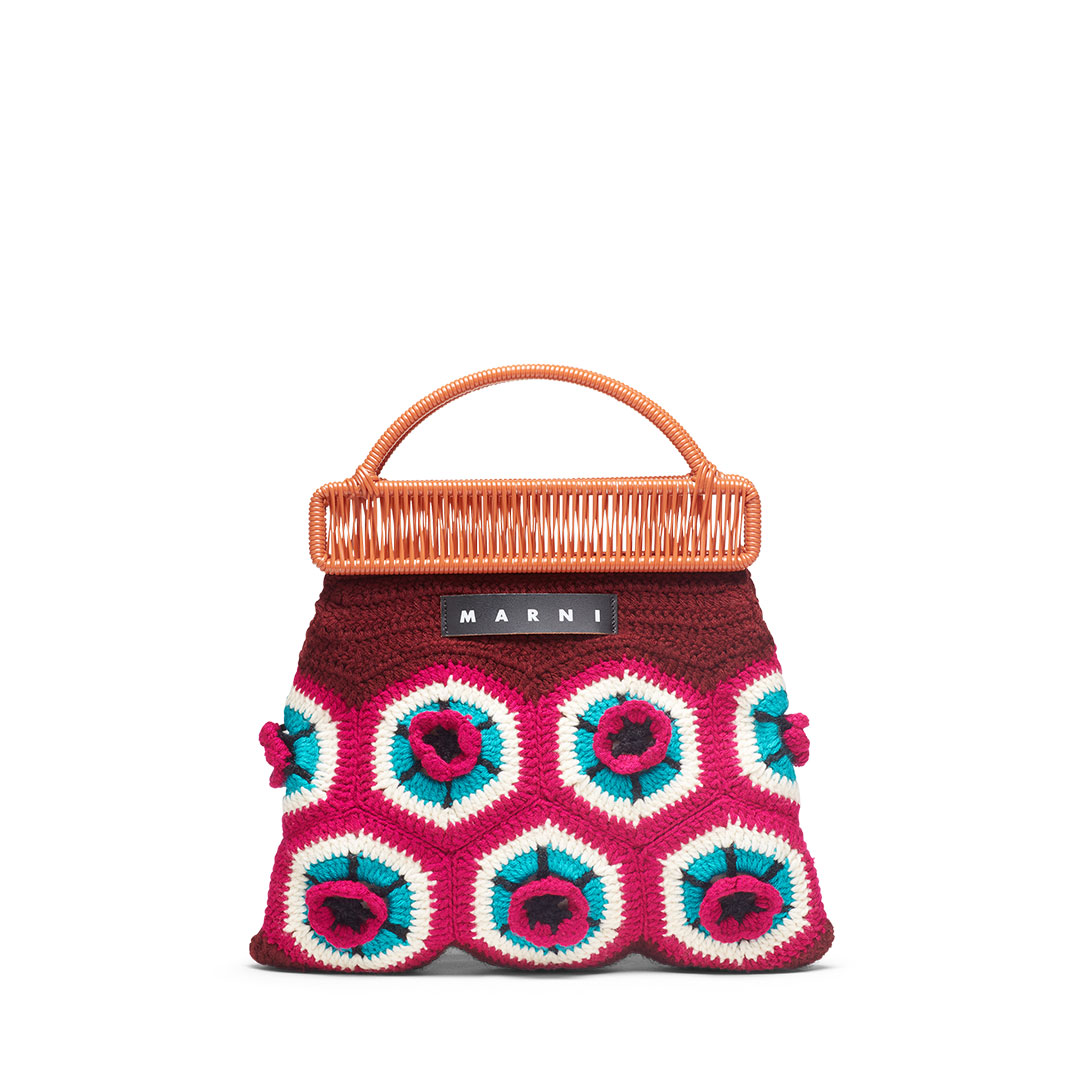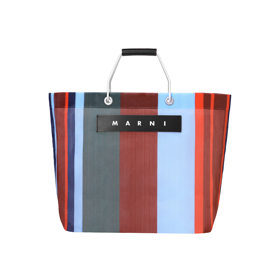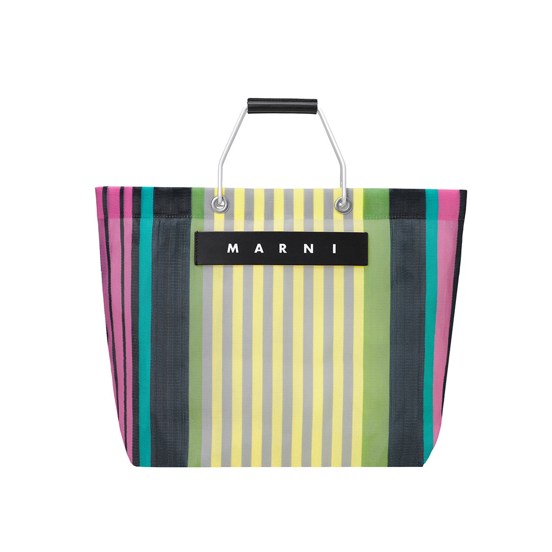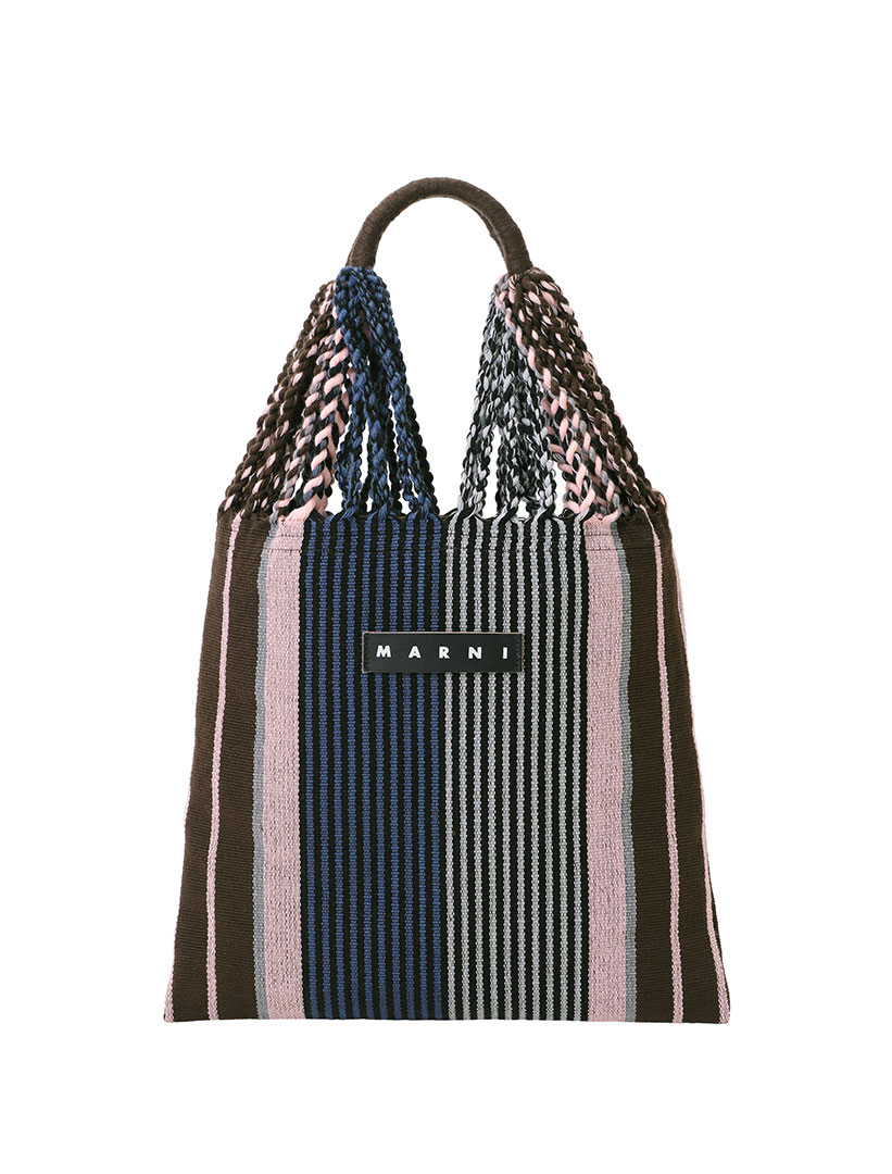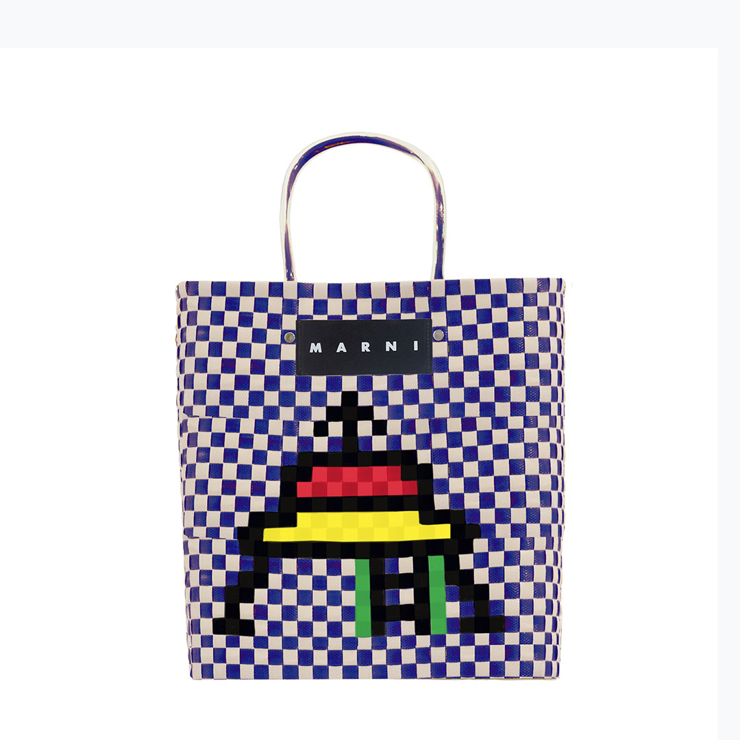 伝統的な街の市場のように、クラフトマンシップとオリジナリティを融合したプロダクツで賑わいを見せるマルニ マーケット。ブランドと長年に渡り協業してきたコロンビアの職人たちにより手作りで製作される商品は、 ユニークなコンストラクションと革新的なコンテンポラリーデザインを通してブランドの精神を際立たせている。世界で初リリースとなるハンモックバッグは、2018 年ミラノサローネで発表されたカラフルなハンモックからインスピレーションを得た最新作。MARNI ならではの絶妙なカラーを織り込んだバッグに、レザーロゴをあしらいシックでモダンな印象。東京初上陸のクロシェバッグは、どこかレトロな雰囲気が漂う鍵編みのバッグでメタル素材のハンドルに PVC チューブを巻き付け、コロンビアの職人が一点ずつハンドメイドで製作している。そして、大人気のピクニックバッグには、最新デザインが誕生。表参道店のオープンを記念し、表参道の並木をイメージしたツリーのモチーフが可愛いツリーバッグや、デジタルとアナログの世界をつなぐ車、電話、エイリアンや UFO の絵が、日本のタクシーの配色にインスパイアされたマルチカラーのピクニックバッグなど愛嬌たっぷりのデザインが魅力。