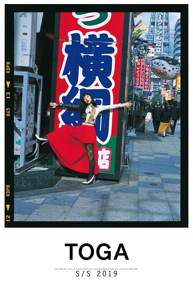 今回のイベントでは、2019年春夏コレクションのキャンペーンビジュアルをフィーチャー。大阪を舞台にしたドラマ『まんぷく』で主演を務めた女優、安藤サクラを鈴木親が大阪の新世界で撮り下ろしたキャンペーンをアザーカットも含めて展示する。大阪店に併設されている古着屋 TOGA XTC OSAKA では、フォトグラファー夢一平による展示も開催。こちらの展示もフォトグラファー自身の地元でもある大阪を舞台に撮影された作品が並ぶ。