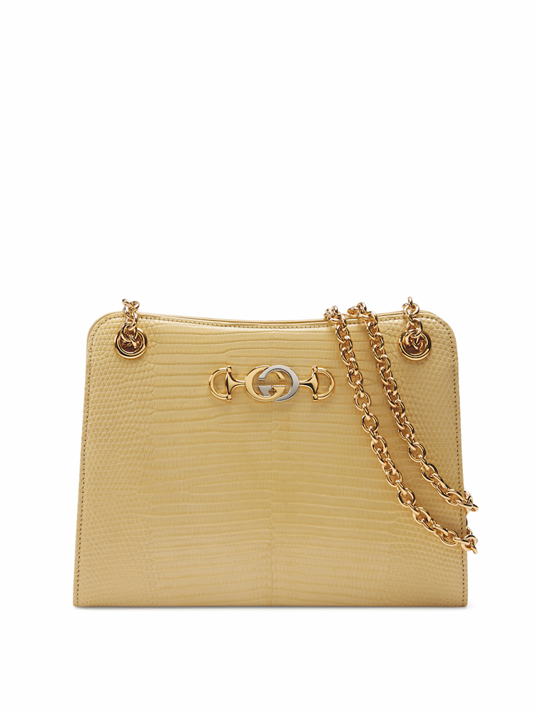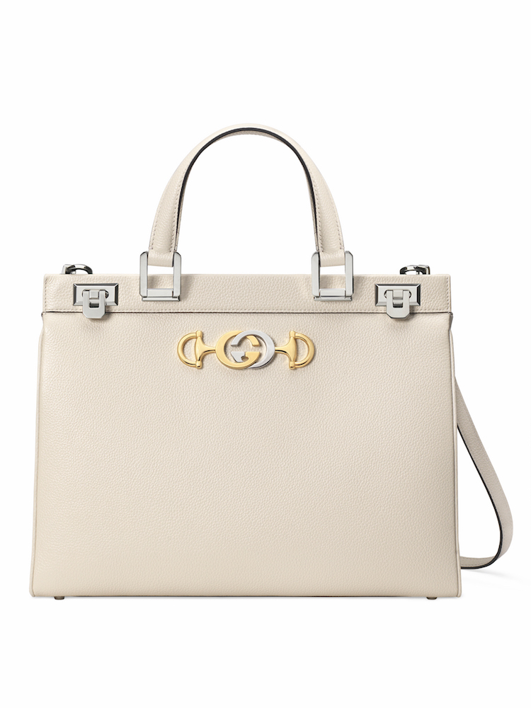 Gucci を代表する2つのモチーフ、インターロッキングGとホースビットのハードウェアをあしらった「Gucci Zumi」は、スタイリッシュで実用的なデザインが特徴。ゴールドカラーとシルバーカラーのメタルを組み合わせたこのハードウェアのディテールは、Gucci のアーカイブより Alessandro Michele (アレッサンドロ・ミケーレ) が発見したデザインだ。