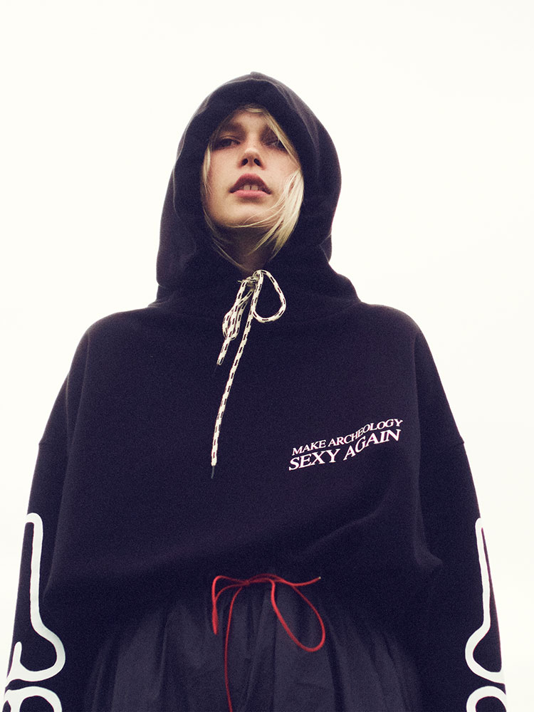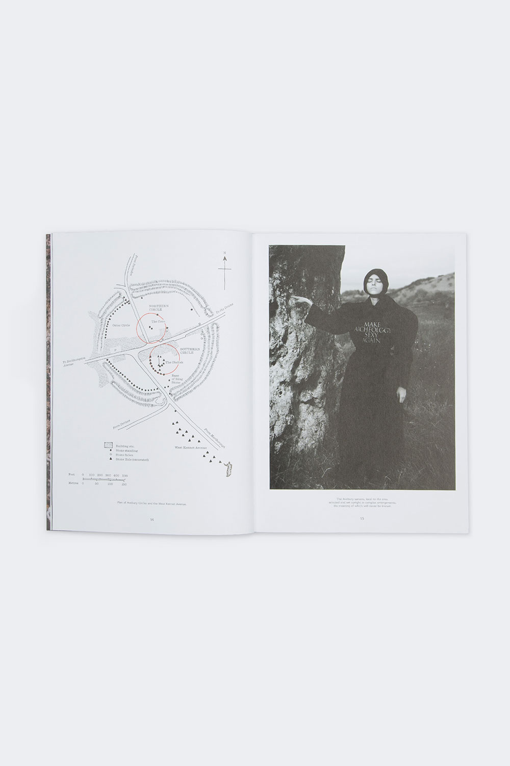 本プロジェクトのワールドツアーが、今年1月にロンドンの The Store X, 180 The Strand を皮切りにスタート。2月のミラノに次いで、このたび東京に上陸する。Jeremy Deller によって撮影されたフィルムを流す個室やライトボックスなどロンドンでの展示を再現しつつ、スペースの特徴を活かす新たな編集も加えて展示。さらに、David Sims による写真パネルや作品も展示され、仮想空間でありながら実体験の様に音や風景を感じながら別世界が創り出される瞬間を体験することができる。また、展示会のコンセプトである過去と現在の端境を表現したカプセルコレクションの展示、アートブックも販売される。展覧会に付随するアートブックは新石器時代の遺跡ガイド形式で、古代の遺物の画像と一緒に遺跡の空中図と実例を特集。Jane How (ジェーン・ハウ) によるスタイリングを David Sims が古代遺跡で撮影した50点以上のイメージフォトに、著名な考古学者 Julian Richards (ジュリアン・リチャーズ) が寄稿したテキストが添えられ読み応えもたっぷりな内容になっている。