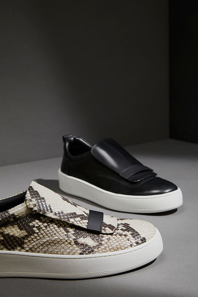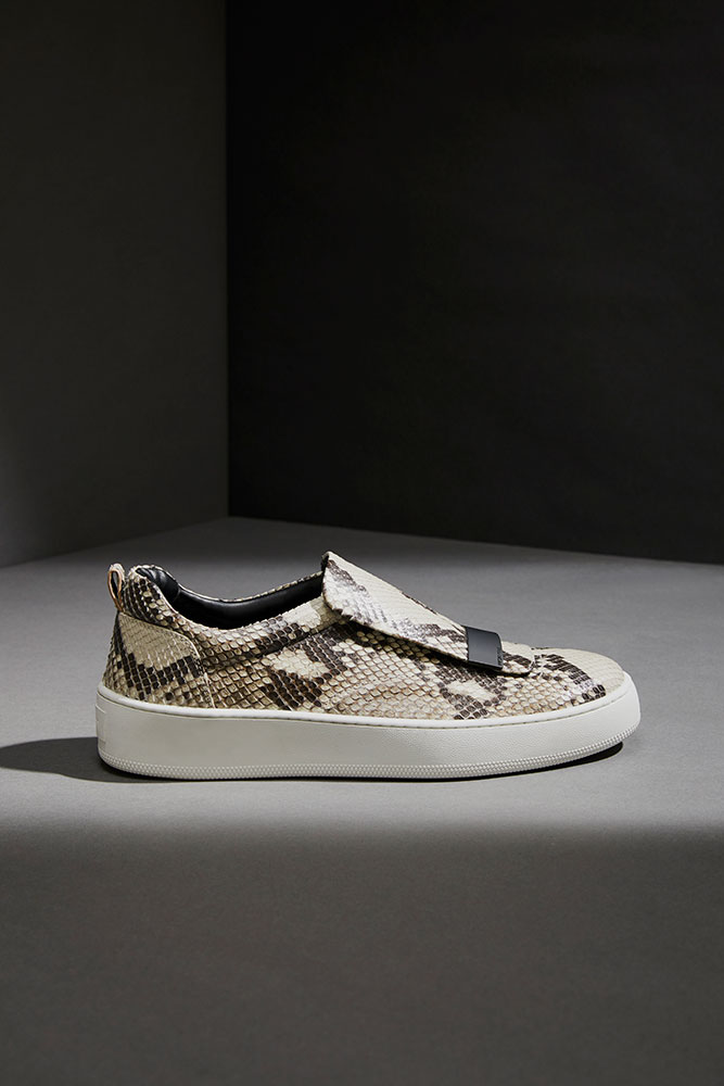 2016年秋冬シーズンを最後にメンズコレクションを休止していた Sergio Rossi のメンズコレクションが現在ブランドの柱のひとつとなっている「sr1」コレクションを中心にリローンチ。プレートとシュータンをあしらったアッパーが特徴的な「sr1」コレクションは、2017年からスタートしたブランドのリブランディングを象徴するようなアイコンコレクション。90年代のウィメンズコレクションのアーカイブからインスピレーションを受けて、現代的な解釈を加えた「sr1」コレクションのデザインは幅広い層から人気を集めており、メンズコレクションも注目を集めること間違いなし。各種レザーからファブリックまでバリエーション豊かな素材と定番色からオーシャンブルーやダークグレート行ったニュアンスカラーまで豊富なカラーパレットで登場。ローファーやレースシューズといったアイテムも順次展開予定となっている。是非とも新たにオープンしたブティックで直接手に取ってみてはいかがだろうか。