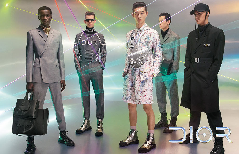 Dior メンズウェアのアーティスティック ディレクターである Kim Jones (キム・ジョーンズ) による Dior プレフォール 2019 メンズ コレクションは、東京の江東区青海に位置するテレコムセンターを舞台に日本人現代アーティスト空山基とのコラボレーションのもと発表されたことがまだ記憶に新しい。今回のキャンペーンもまた、空山基によるメタリックな Dior ロゴをフィーチャー。コレクションの会場装飾とリンクするようなレーザービームが交差する中で、最新コレクションをまとったモデルたちを浮かび上がらせている。まるでSF映画のような近未来的なムードを醸すキャンペーンは、メタル製の「サドル」バッグやゴールドに煌めく「ディオール オブリーク」キャンバスと完璧な融合をみせている。