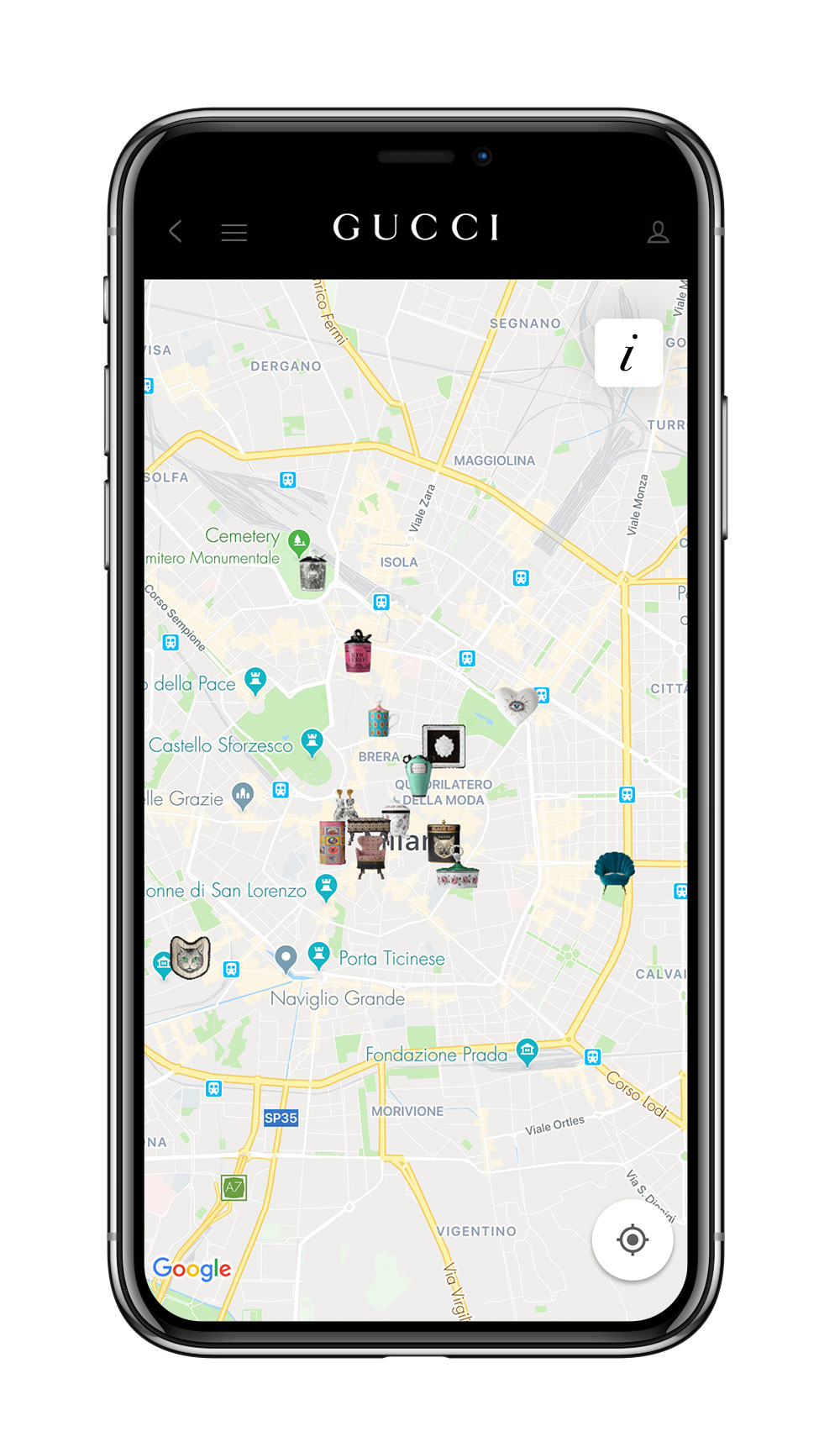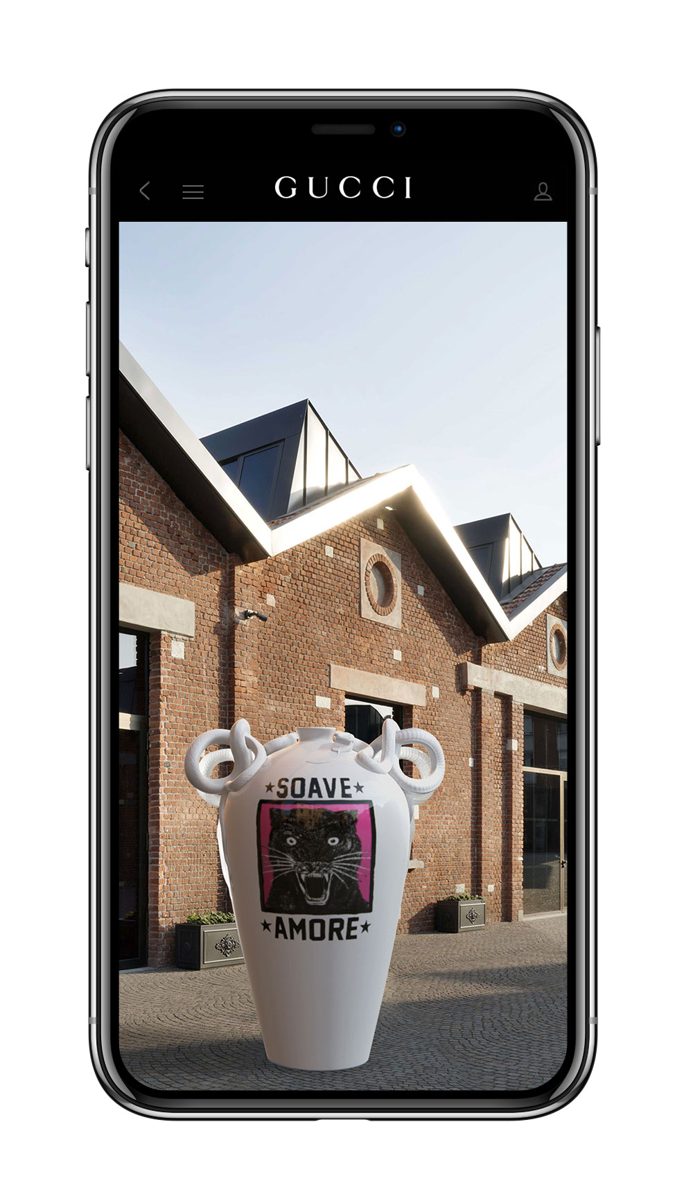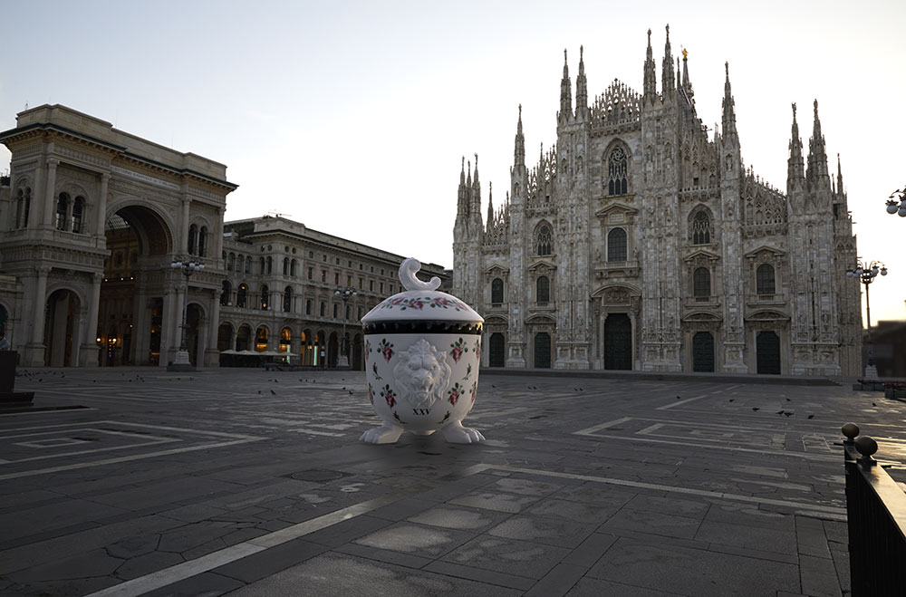 また、ミラノサローネの開催と本ショップのオープンに伴い、Gucci 公式アプリに新機能が登場。まず、アプリで地図を開けばミラノの各名所に隠されたグッチ デコール コレクションのアイテムの「バーチャル彫刻」を発見することができる。まるでミラノの歴史地区で宝探しをできるようなユニークなアイディアだ。さらに、アプリ内のグッチ デコールのコーナーもアップデート。新作アイテムが追加され、AR機能によってさらにたくさんのアイテムを自身のパーソナルな空間にバーチャルに配置することができるようになる。
