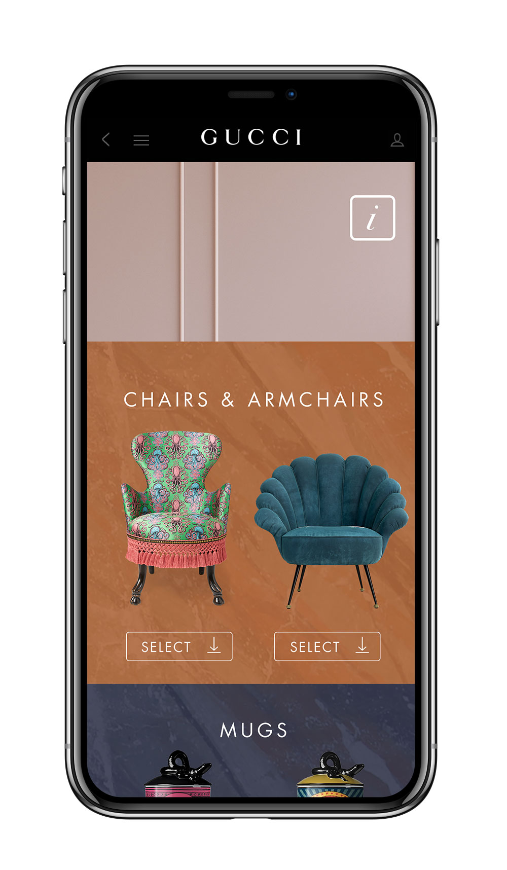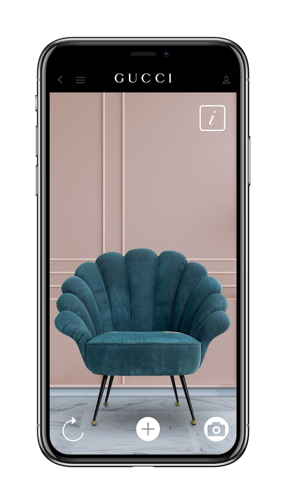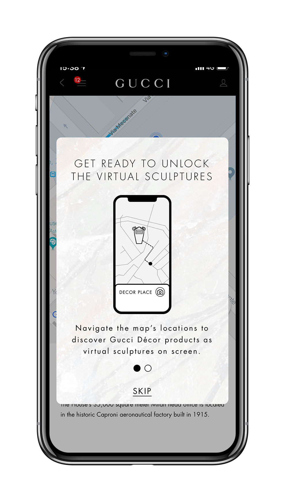また、ミラノサローネの開催と本ショップのオープンに伴い、Gucci 公式アプリに新機能が登場。まず、アプリで地図を開けばミラノの各名所に隠されたグッチ デコール コレクションのアイテムの「バーチャル彫刻」を発見することができる。まるでミラノの歴史地区で宝探しをできるようなユニークなアイディアだ。さらに、アプリ内のグッチ デコールのコーナーもアップデート。新作アイテムが追加され、AR機能によってさらにたくさんのアイテムを自身のパーソナルな空間にバーチャルに配置することができるようになる。