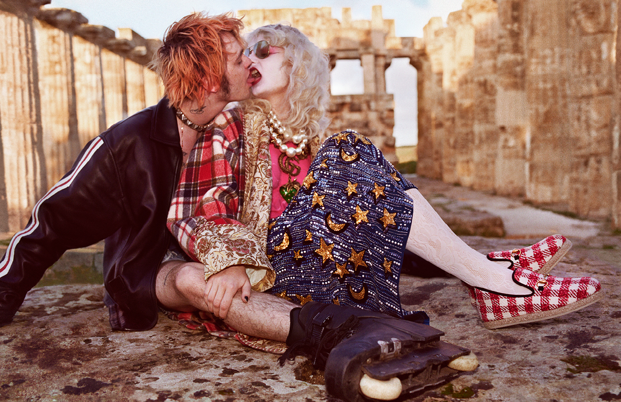 毎度壮大な世界観を繰り広げる Gucci が最新キャンペーンの舞台に選んだのは、シチリア島のセリヌンテ考古学公園。セリヌンテは紀元前7世紀後半にシチリア島南西岸に建設された古代ギリシャの都市で、小高い丘の上に9つの神殿を備え、東側の城壁の外にはキャンペーンが撮影されたヘラ神殿を含む3つの神殿があったとされる歴史的なロケーション。キャンペーンでは、神殿の遺跡を背景に折衷的なボヘミアンファッションに身を包んだ若者たちを撮影。カリフォルニアのベニスビーチで見かけるようなハードコアパンク、ローラーブレーダー、ボディビルダー、サーファーといったカウンターカルチャーを彷彿とさせる彼らを主役に、古代に行われていた「シンポジウム」を現代に見事蘇らせている。それはクリエイティブ・ディレクターの Alessandro Michele (アレッサンドロ・ミケーレ) が描くコンテンポラリーなフレスコ画であり、こうした文化遺産の価値や魅力を現代、そして未来の世代に伝えている。