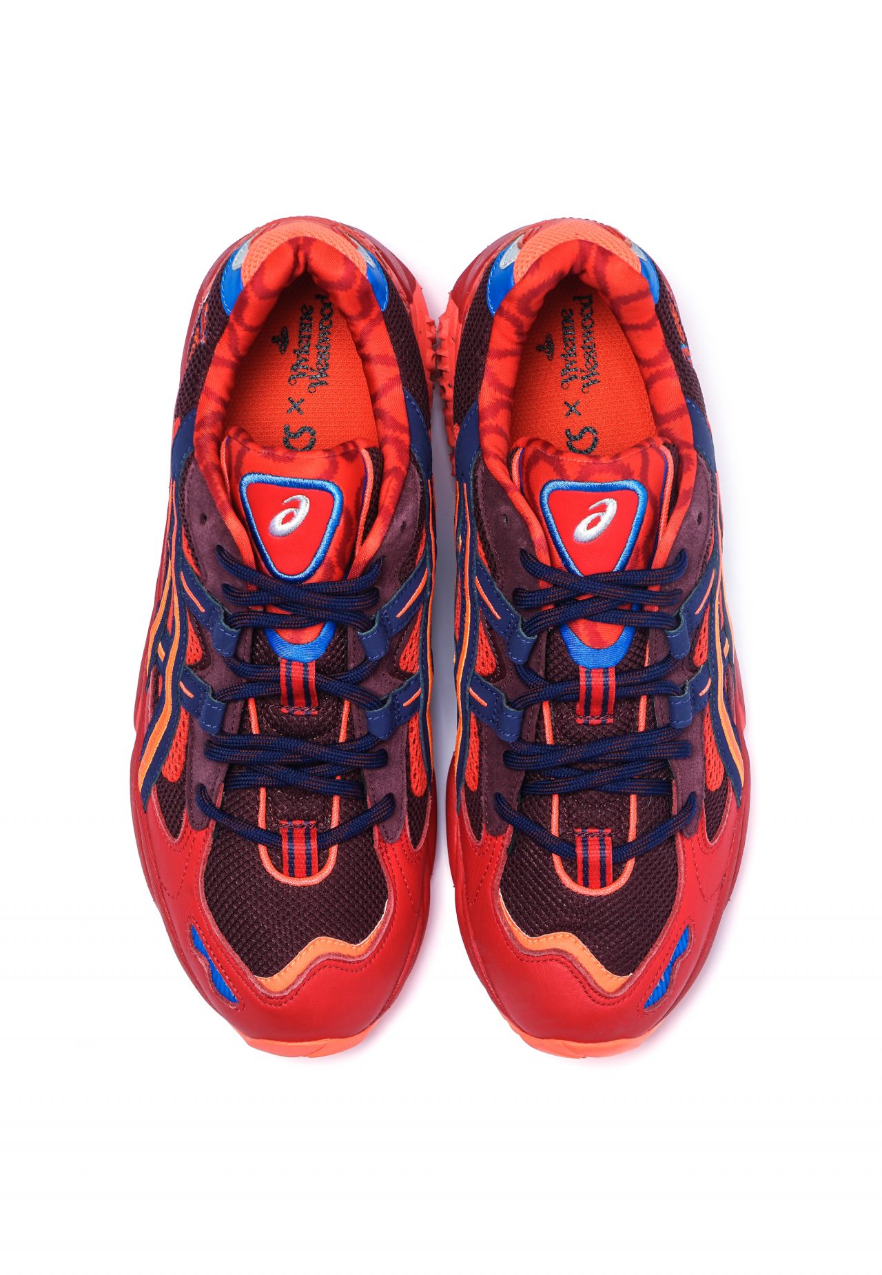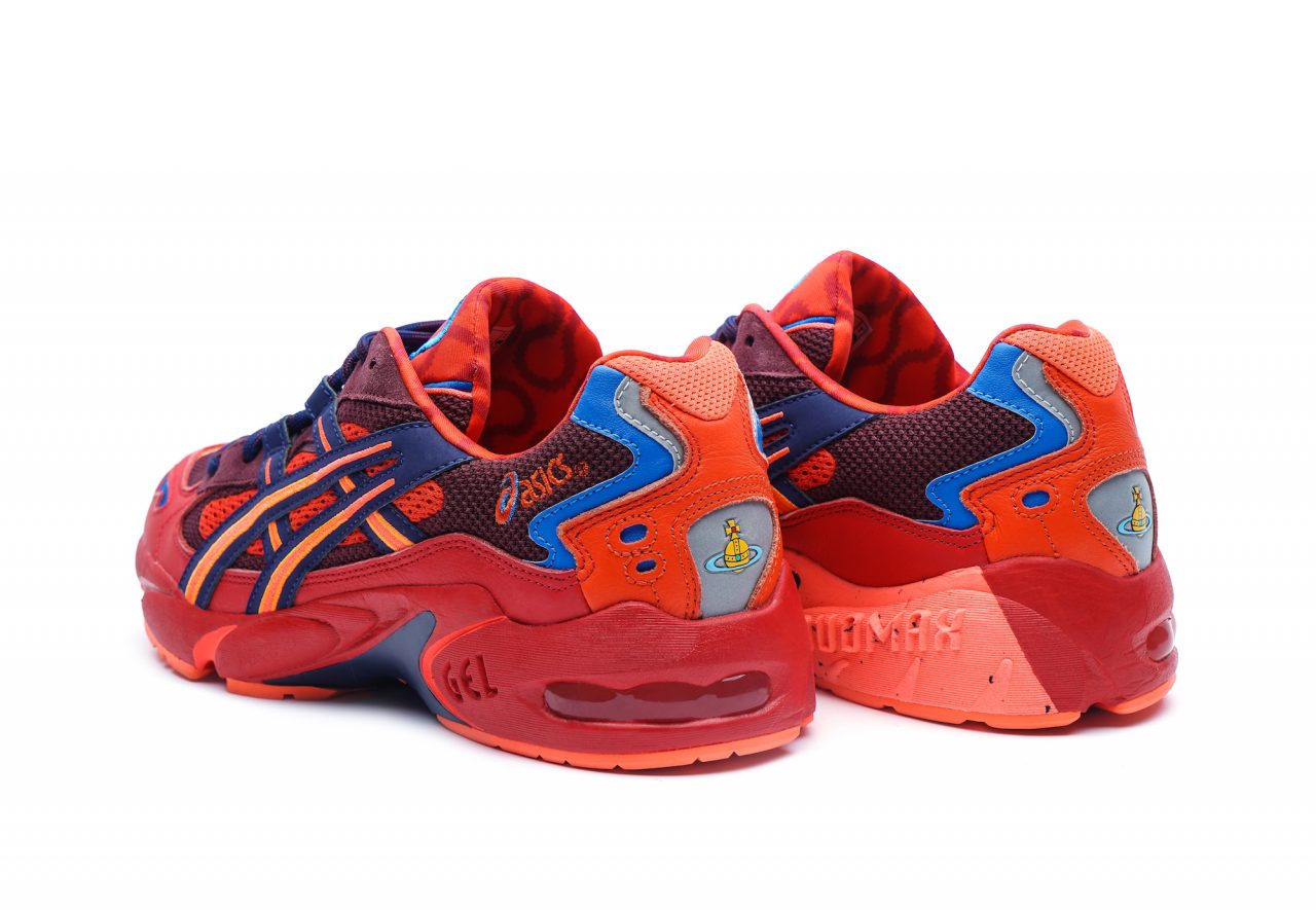 Vivienne Westwood と ASICS というユニークなコンビネーションから初めて生まれたコラボコレクションでは、ASICS のクラシックなモデルや ASICSTIGER (アシックスタイガー) のスニーカーをベースに Vivienne Westwood のアイコニックなデザインや柄を落とし込み、両ブランドのヘリテージを反映した特別なスニーカーがお目見え。第一弾では、Vivienne Westwood がランウェイデビューを果たした 1981 秋冬コレクションで発表された、ブランドを象徴するスクイグル柄が採用された ASICSTIGER の『GEL-MAITM KNIT MT』とスクイグル柄のオリジナルの配色の一つから着想を得たレッドとオレンジのカラーパレットが印象的な『GEL-KAYANOTM 5 OG』の2型のスニーカーが発売される。この『GEL-KAYANOTM 5 OG』は1999年に ASICS が発表した『GEL-KAYANOTM 5』を2018年にリローンチしたモデル。勿論、どちらのモデルにもファンにとっては欠かすことのできない Vivienne Westwood の ORB ロゴがあしらわれている。