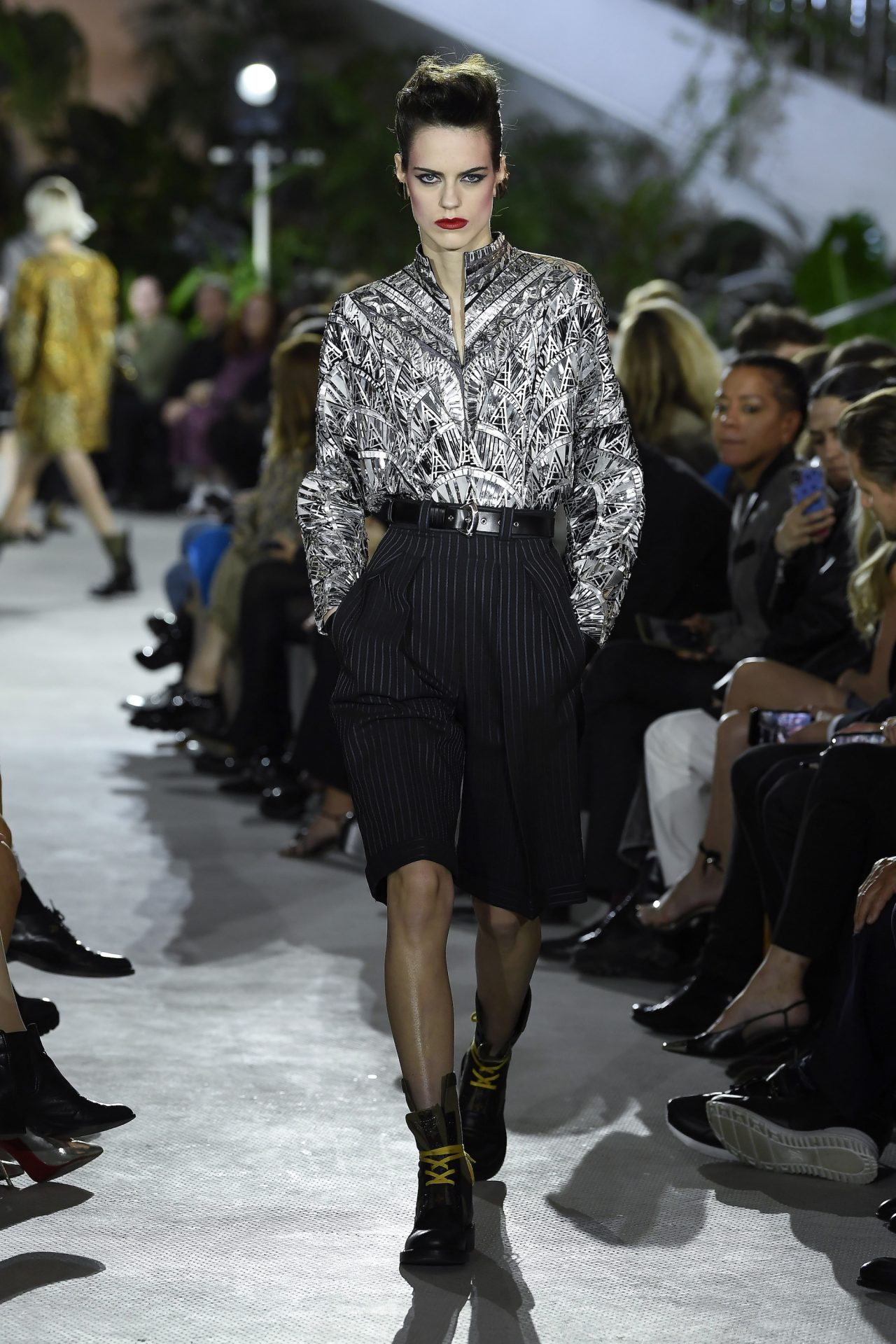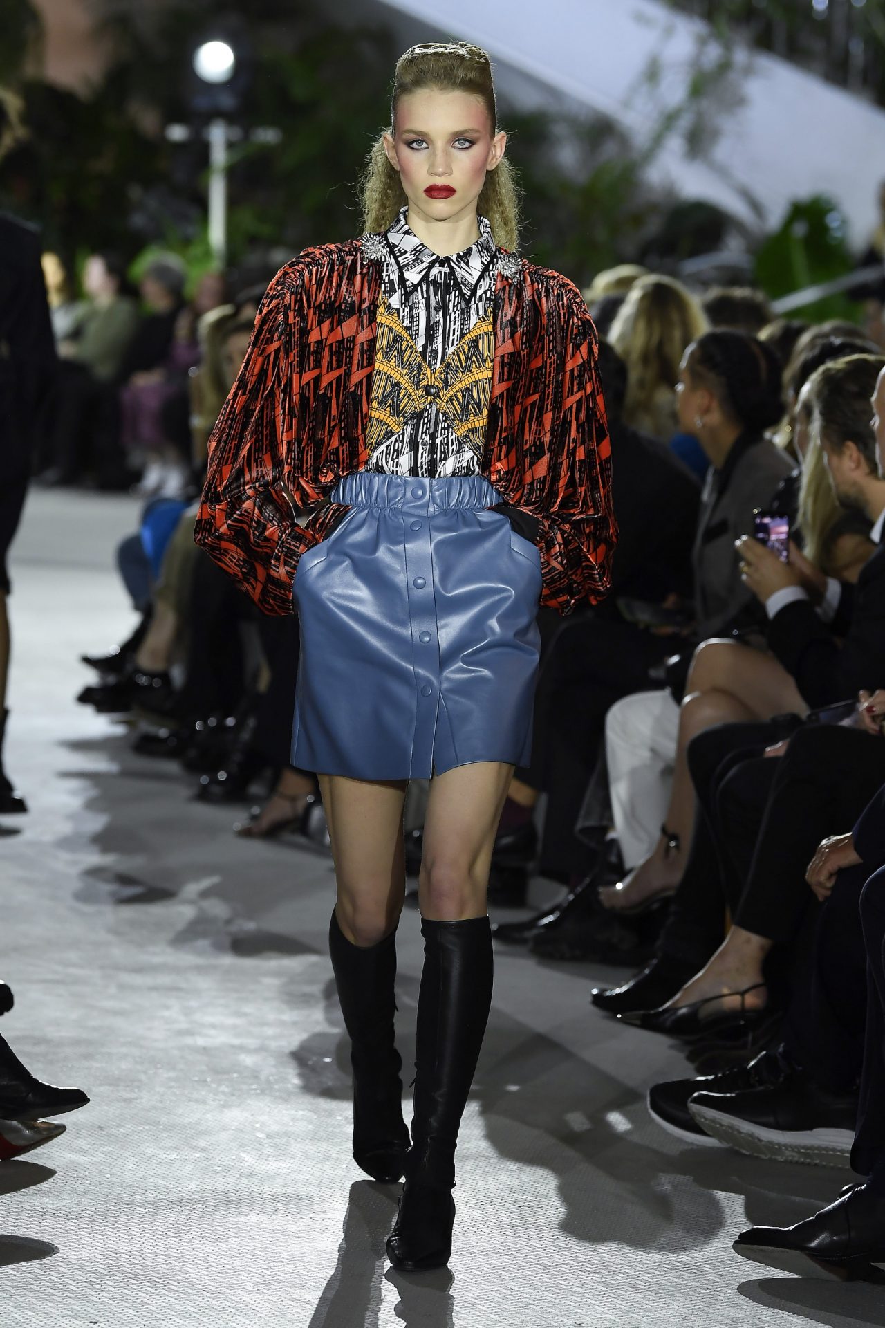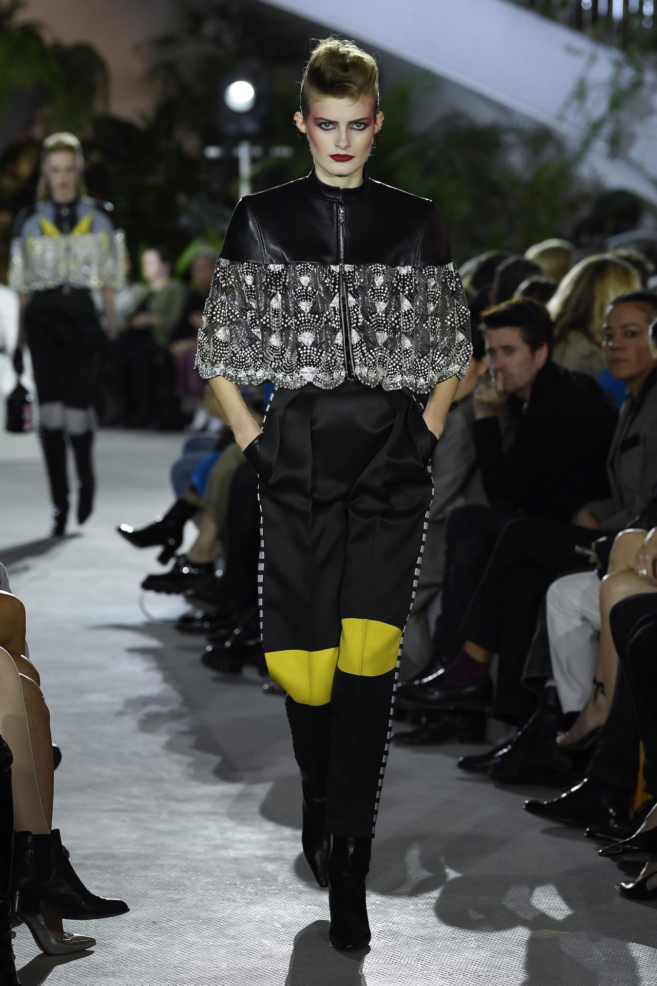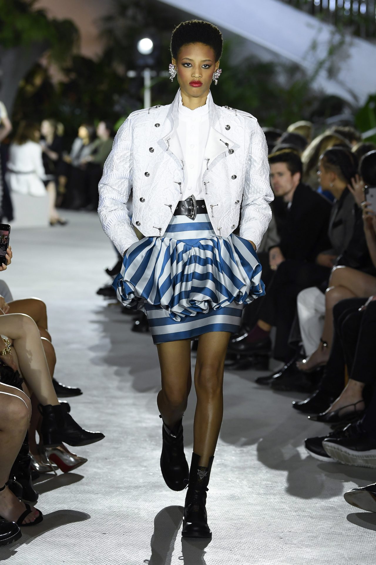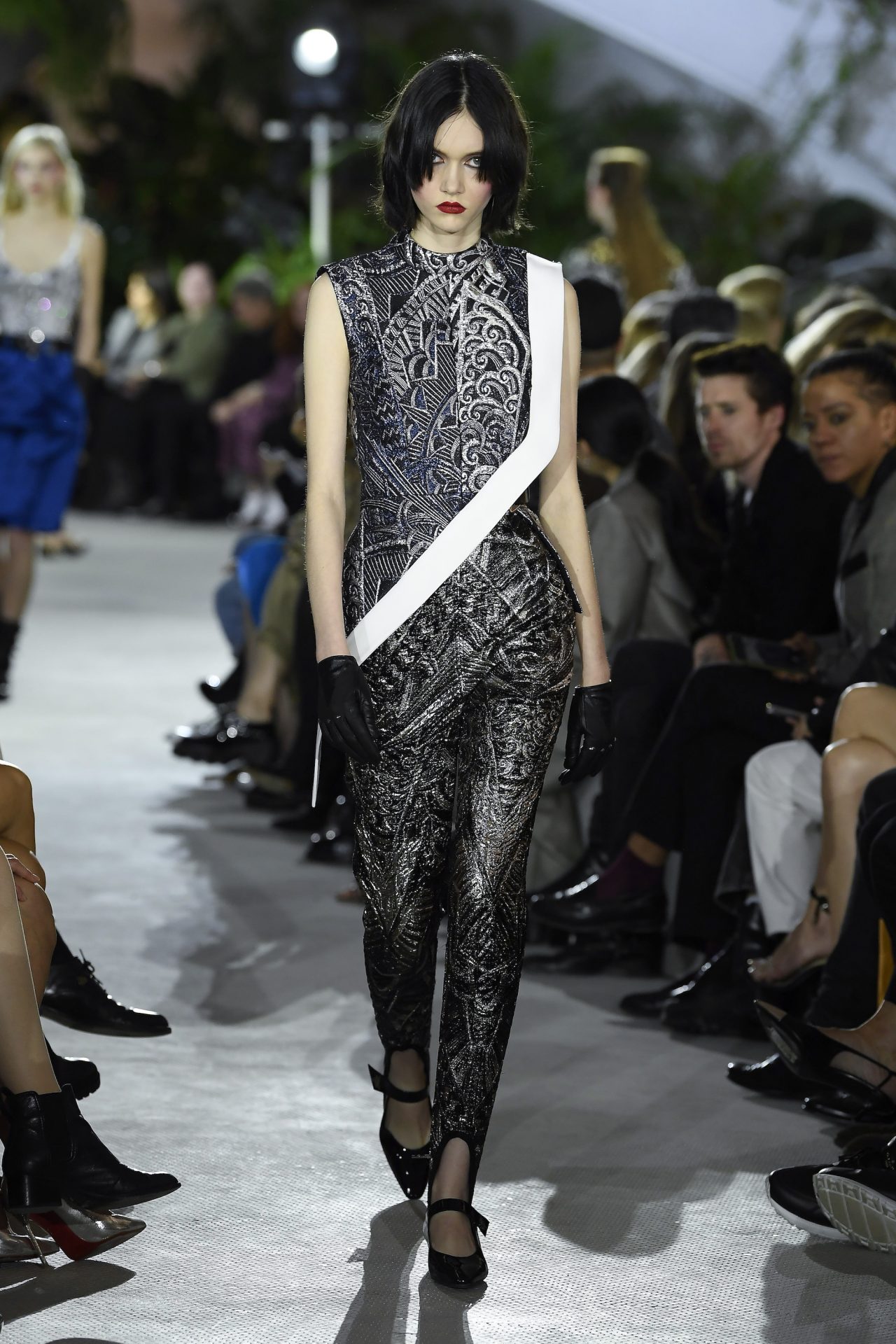 コレクションもまた、Louis Vuitton におけるパリとニューヨークの対話に目を向け、クチュールのエスプリをはじめとするフレンチファッションにアメリカが魅せられる姿、ニューヨークにフランスが抱くファンタジーが描かれている。有名な建築物のレリーフがプリントやエンブロイダリー、ブロケードなどで取り入れられ、ニューヨークのアイコニックな風景をプリントしたジャケットも登場。映画の世界のようなニューヨークを浮かび上がらせ、メゾンのサヴォアフェールとの融合を見事に成功させていた。