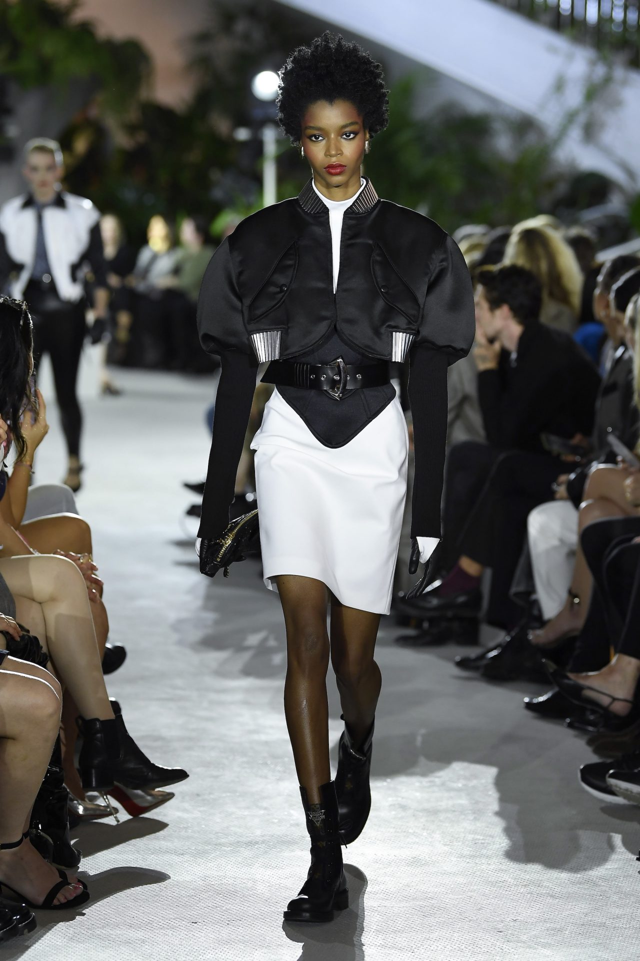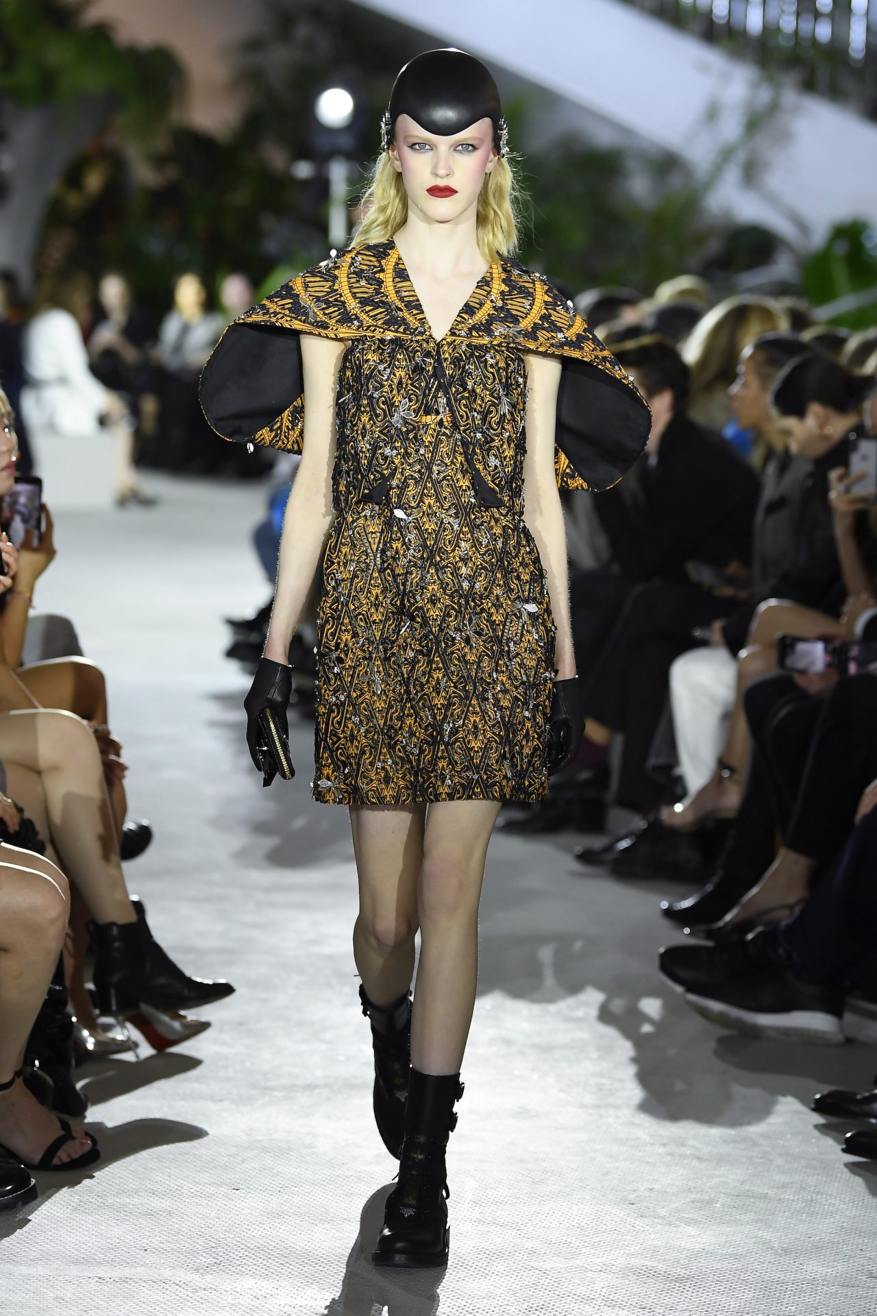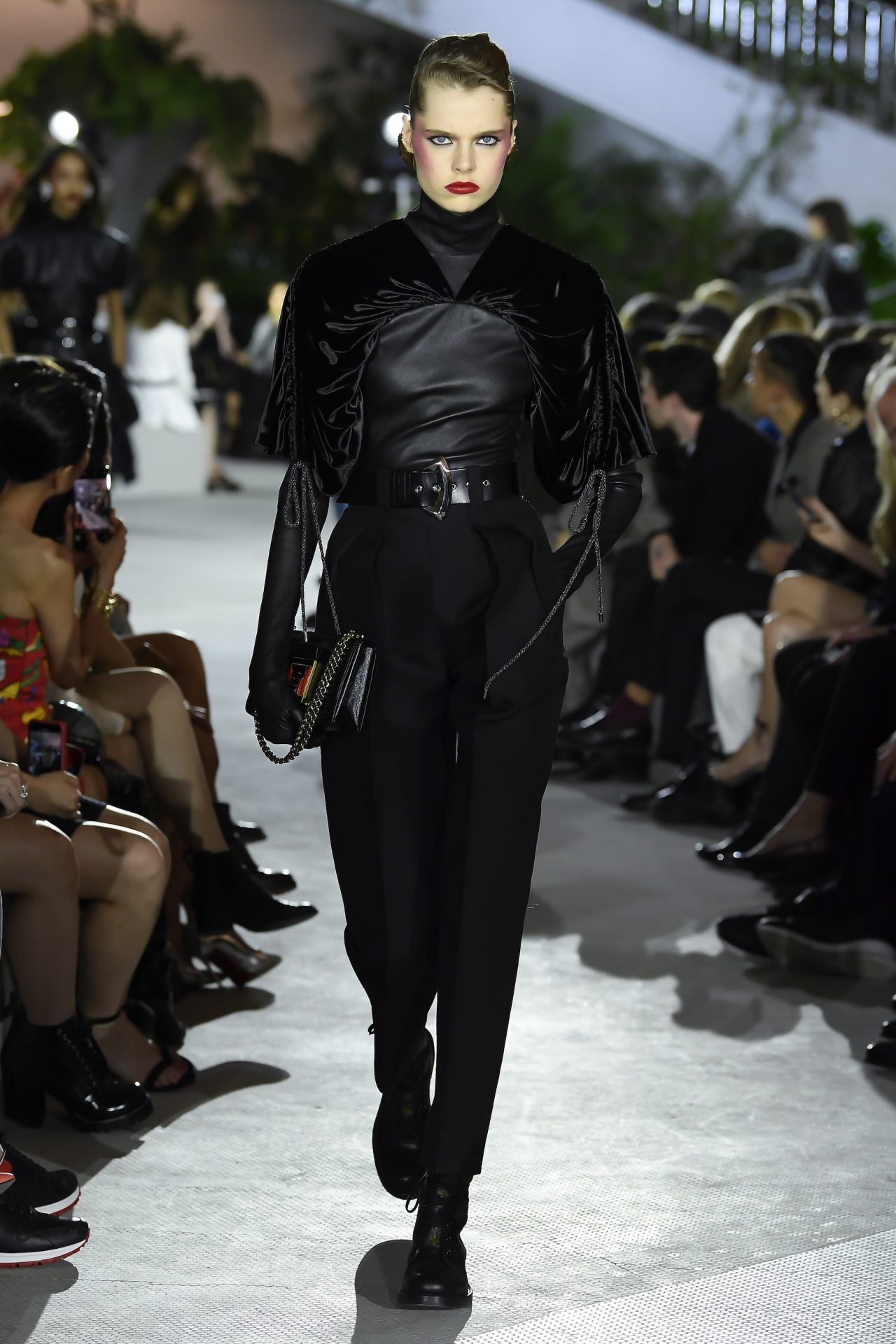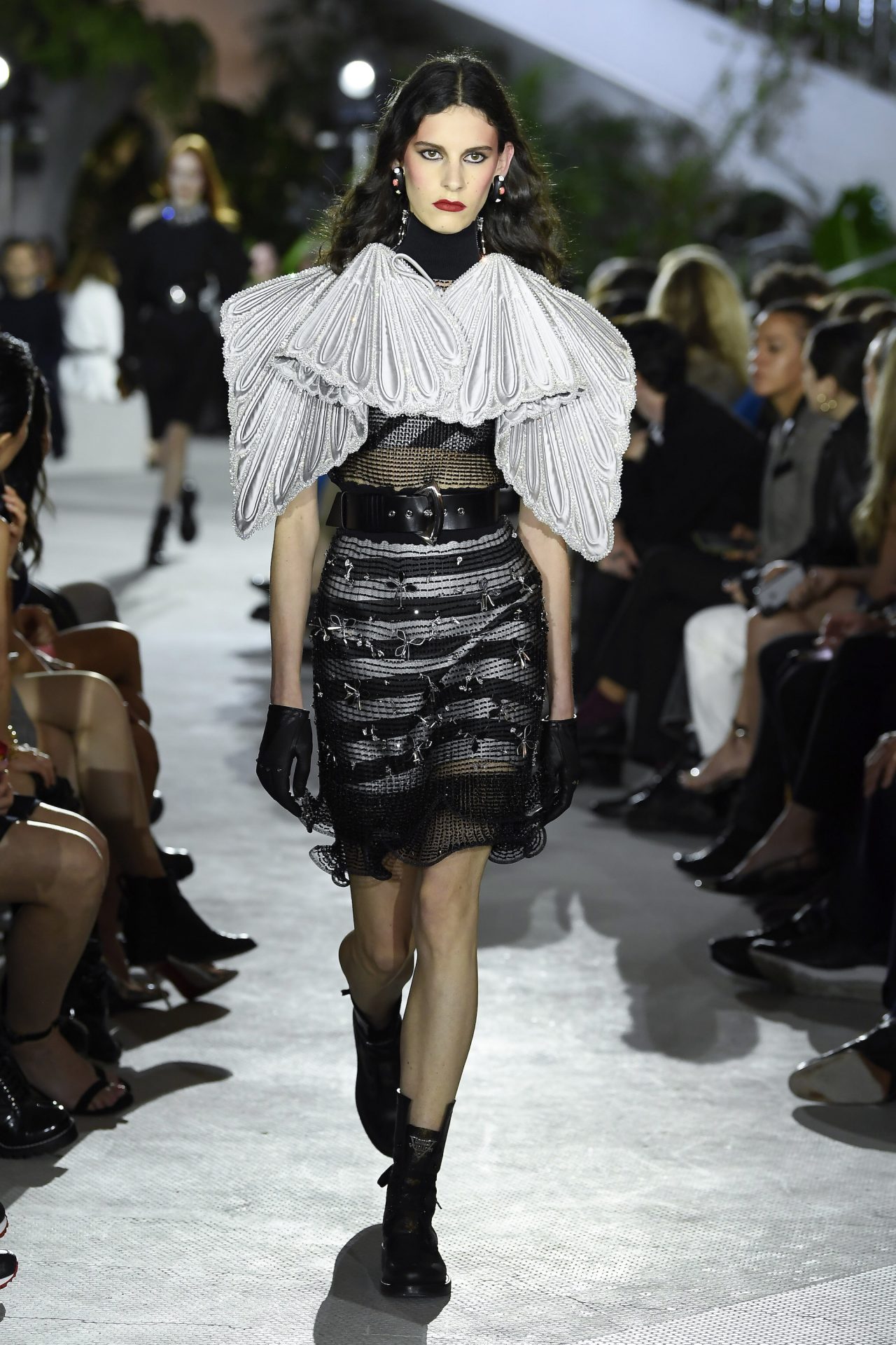 ランウェイショーの舞台となったのは、ニューヨークのジョン・F・ケネディ国際空港 TWA フライトセンター。1962年に建築家 Eero Saarinen (エーロ・サーリネン) が設計したこの会場は、巨大な鳥を連想させるようなフォルムが特徴的な歴史的建造物。現在はホテルとなっている TWA フライトセンターのコンテンポラリーで近未来的な雰囲気は、Nicolas Ghesquière のデザインとも共鳴する。