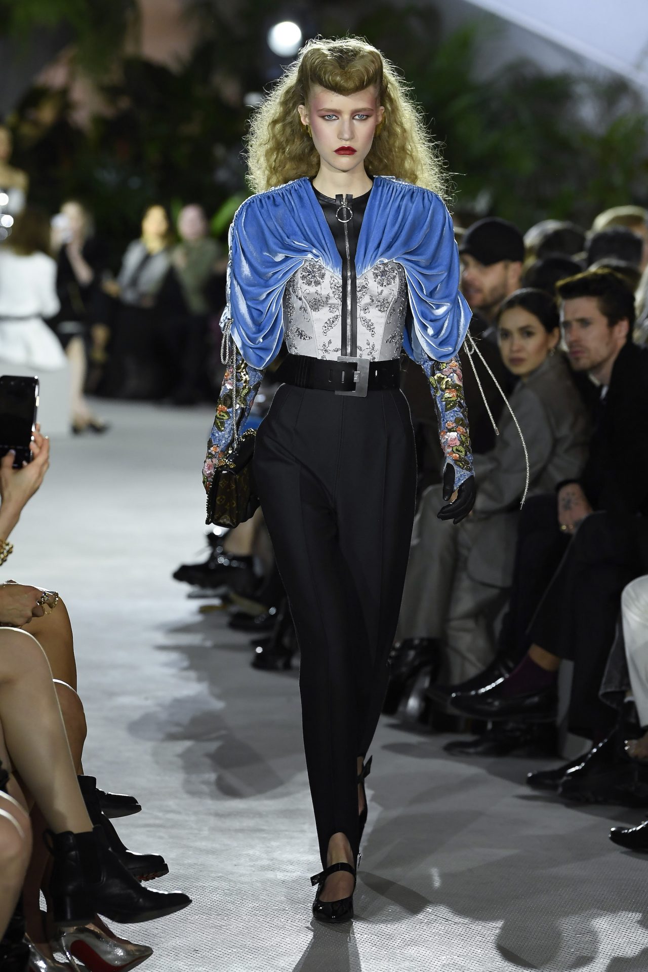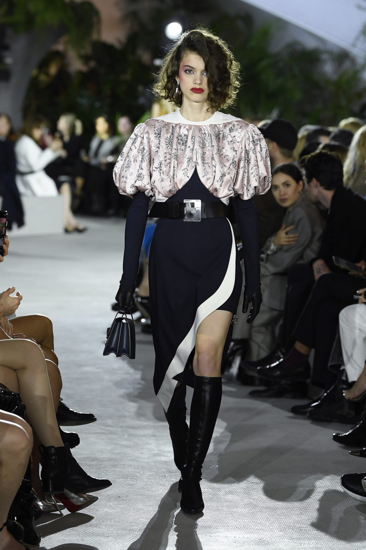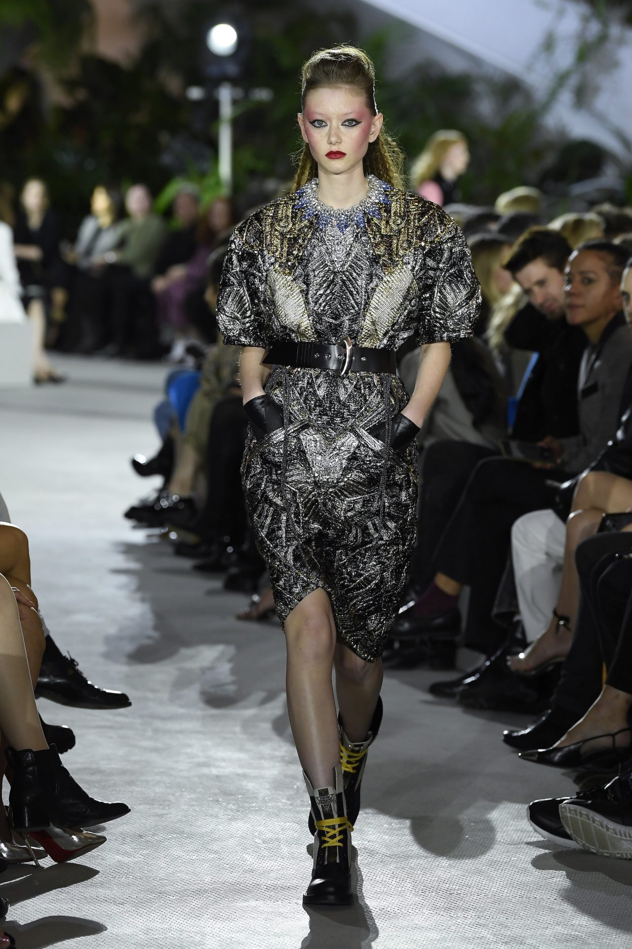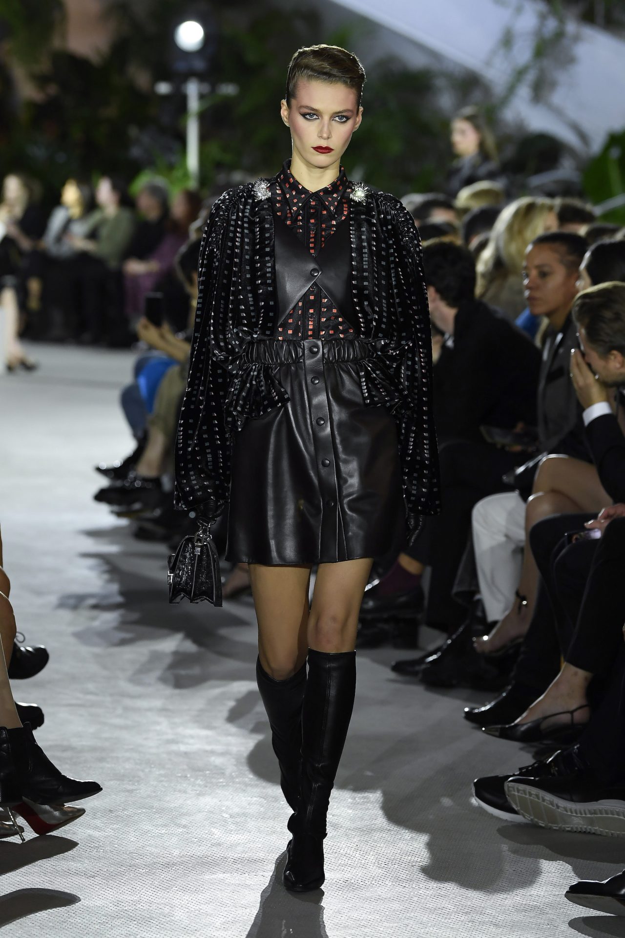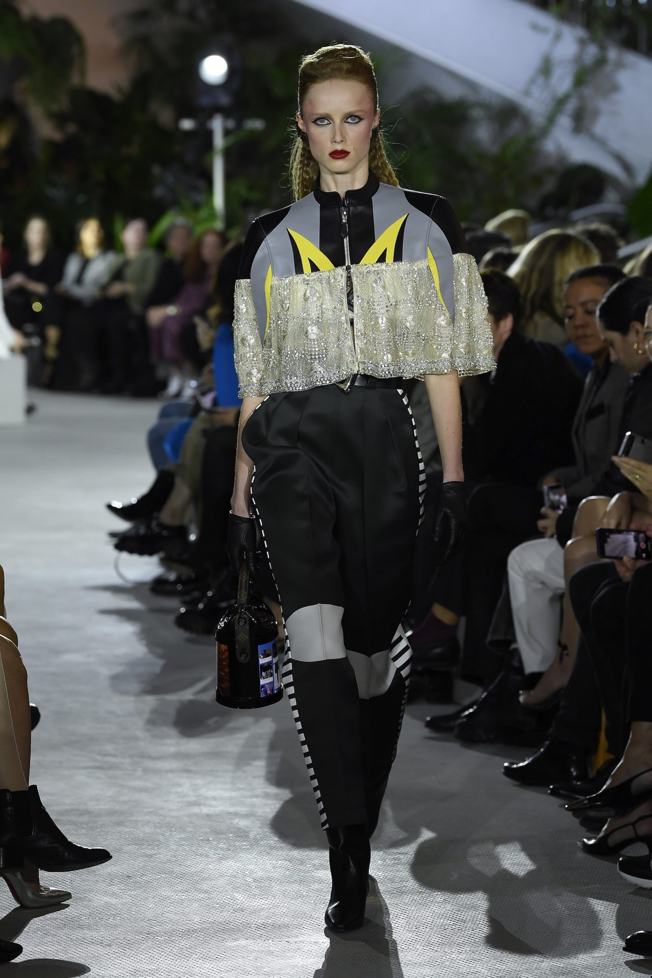 ランウェイショーの舞台となったのは、ニューヨークのジョン・F・ケネディ国際空港 TWA フライトセンター。1962年に建築家 Eero Saarinen (エーロ・サーリネン) が設計したこの会場は、巨大な鳥を連想させるようなフォルムが特徴的な歴史的建造物。現在はホテルとなっている TWA フライトセンターのコンテンポラリーで近未来的な雰囲気は、Nicolas Ghesquière のデザインとも共鳴する。