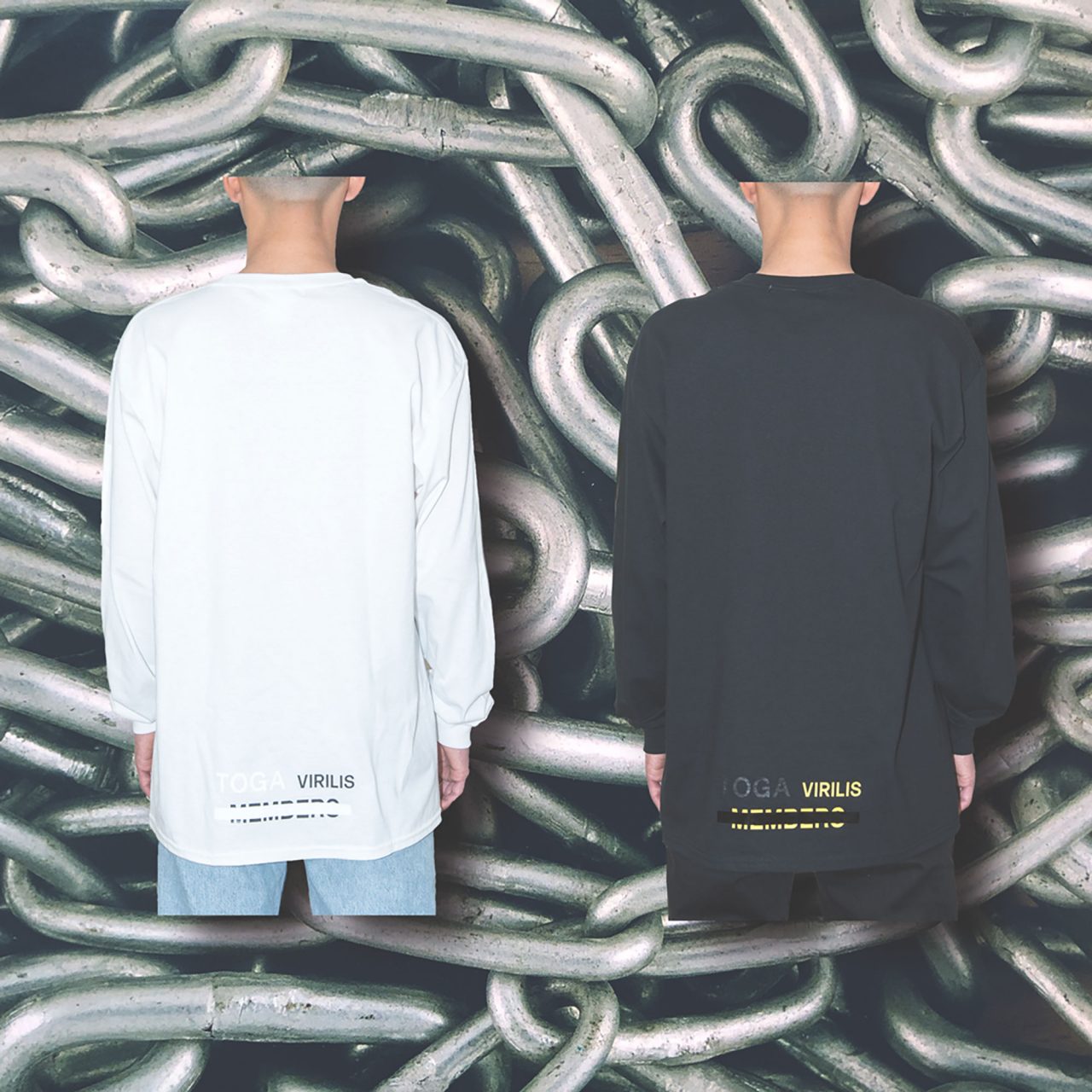 同時発売される TOGA VIRILIS × Dogs のコラボレーションロングTシャツは、ストアオープン1周年を記念したアイテム。アーティスト KOHHがディレクションを手掛ける北区王子のセレクトショップ Dogs (ドッグス) とのコラボレーションは、今回で2度目。フロントには光沢のあるラバーでDOGS ロゴ、バックには両ブランドのコラボレーションデザインのロゴがプリントされた特別なデザイン。今回のコラボレーションロングTシャツは、TOGA 原宿店のみでの取り扱いとなる。