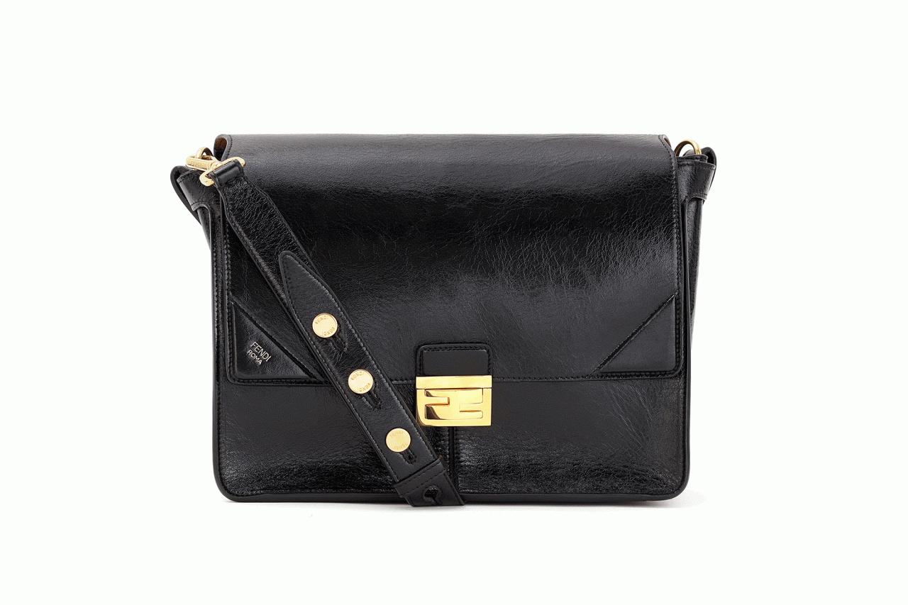 実用的なフラップ式のクロージャーには、アイコニックな「FF」ロゴのメタリックバックル。フロントにシグネチャーである“FENDI ROMA”が上品なエイジゴールドで型押しされ、より一層コンテンポラリーなムードを高めている。素材はマットなスムースレザーを使用し、カラーはブリックレッド、ブラウン、ブラックの3色を展開。 (ブラックのみシャイニーレザー素材も展開) ラージ、ミディアム、ミニの3サイズを用意しており、サイズごとにストラップのデザインが異なる。ラージサイズにはメタリックボタンのあしらわれた調節可能なレザーストラップ、レギュラーサイズにはレザーストラップに加えてゴールドのチェーンが付属し、ミニサイズには調節可能なチェーンストラップが付属している。これらのストラップはすべて取り外し可能で、デイタイムからイブニングまで様々なシーンで活躍するバッグに仕上がっている。