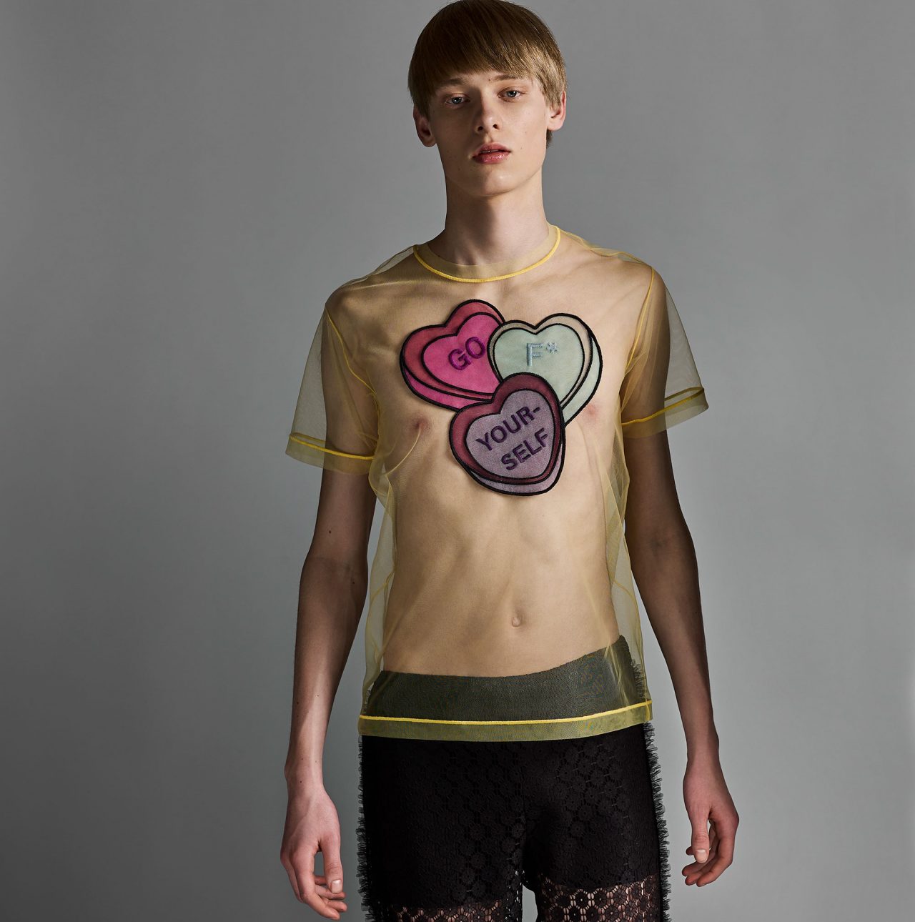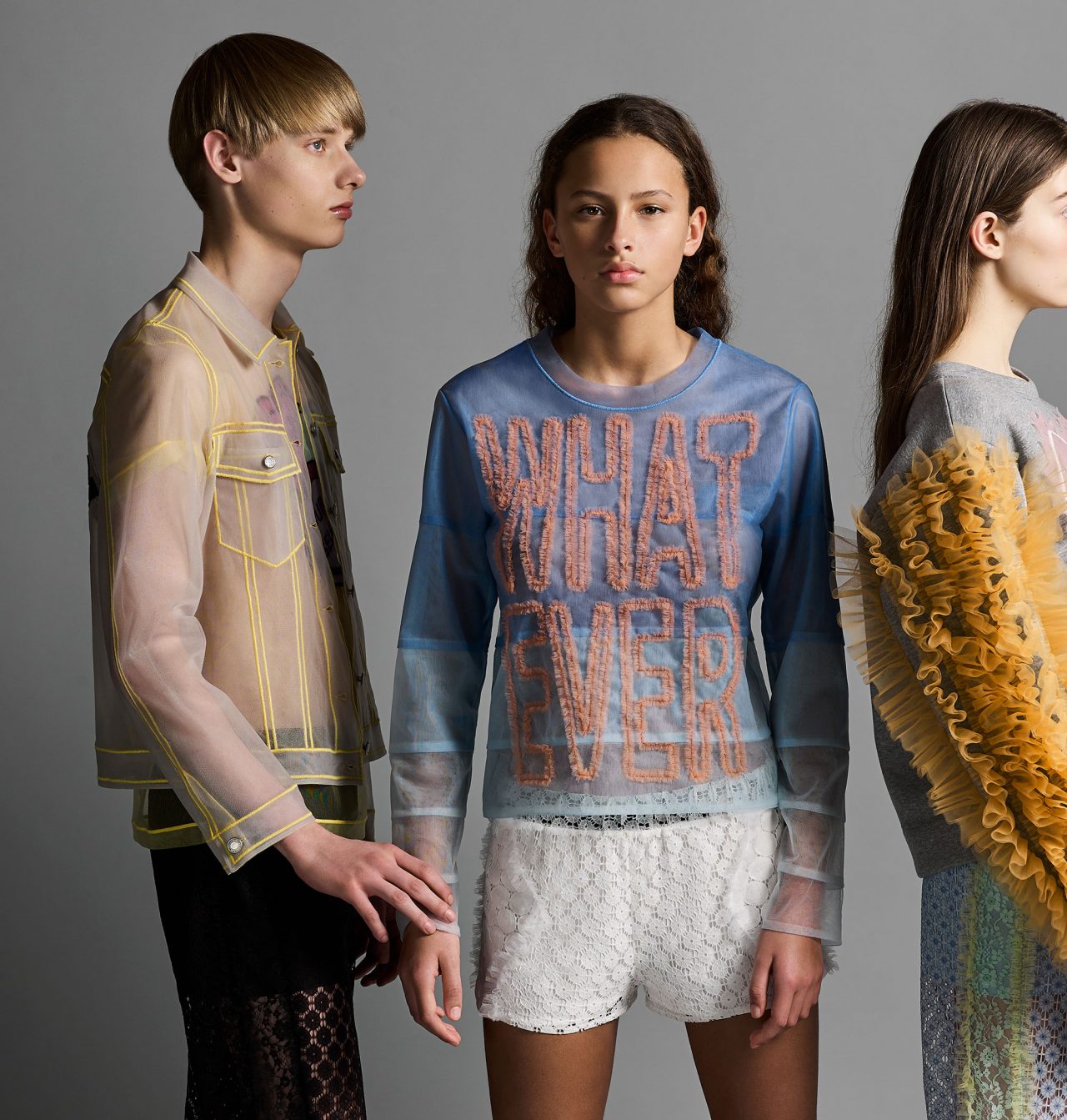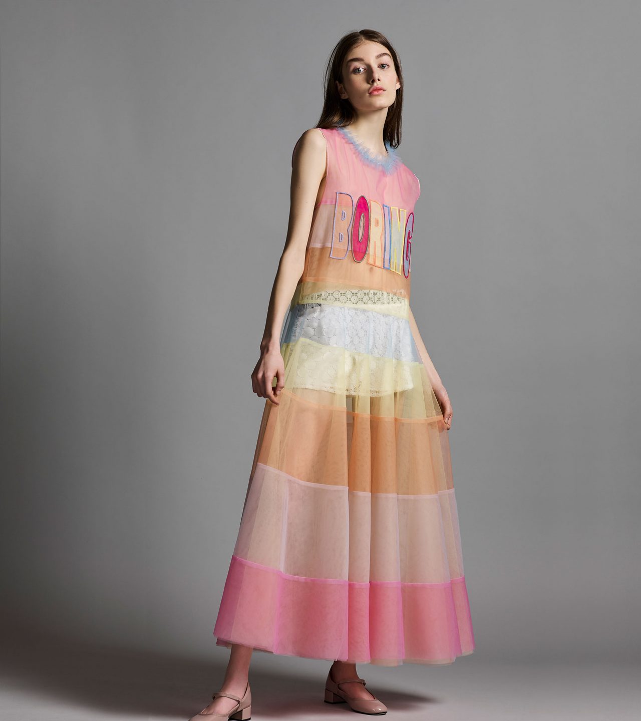 また、店内ではコレクションに登場したテキストのアートワークが施されたチュールのTシャツやスウェット、ジャケット、ドレスなどを揃えたカプセルコレクションがお目見え。ロマンティックなパステルカラーと挑発的なメッセージ、是非ともそのコントラストを直接楽しんでいただきたい。