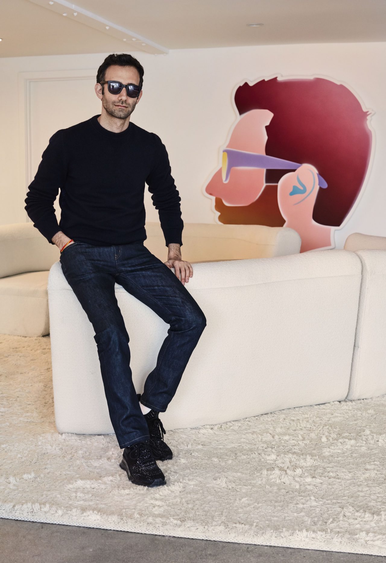 Louis Vuitton のフレグランス「Les Parfum Louis Vuitton (レ・パルファン ルイ・ヴィトン)」の新たな香りのボトルデザインも手がけた Alex Israel は、「カプシーヌ」に波のモチーフを取り入れ、LAの大胆で艶やかな表現をパリのエスプリに落とし込んでいる。バッグの上部からのぞく2本のサーフボードフィンは、なんと取り外し可能で片方がコームに、もう一つはミラーになっているというサプライズも。