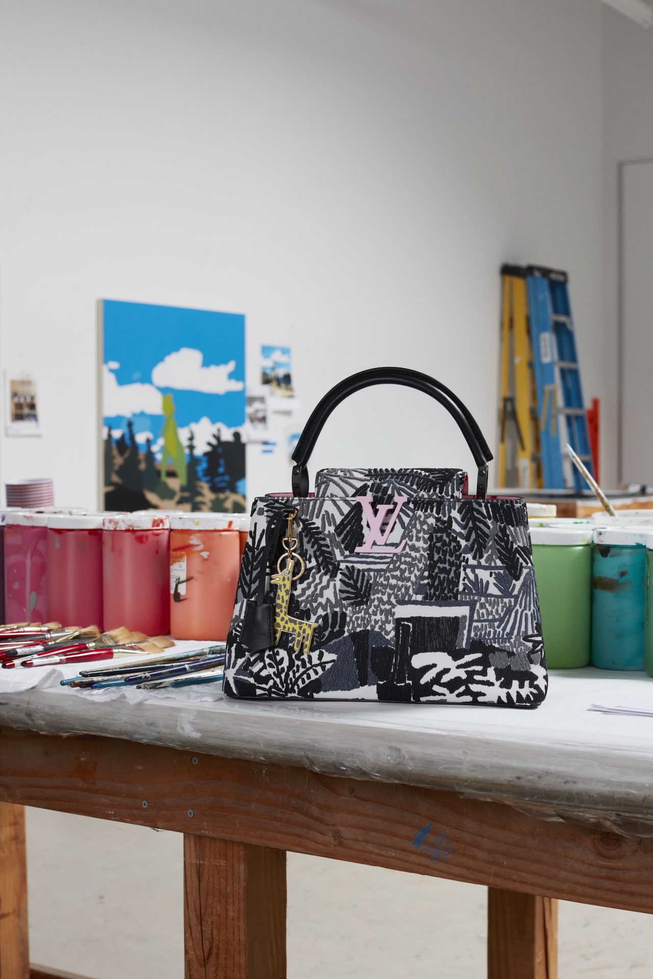 これまでに Stephen Sprouse (スティーブン・スプラウス)、村上隆、Richard Prince (リチャード・プリンス)、草間彌生、Jeff Koons (ジェフ・クーンズ) ら錚々たるアーティスト達とコラボレーションし、話題を集めてきた Louis Vuitton。今回のコレクションには、Sam Falls (サム・フォールズ)、Urs Fischer (ウルス・フィッシャー)、Nicholas Hlobo (ニコラス・フロボ)、Alex Israel (アレックス・イスラエル)、Tschabalala Self (シャバララ・セルフ)、Jonas Wood (ジョナス・ウッド) という現代アートを牽引する著名アーティスト6名が参加。Louis Vuitton のアイコンバッグ「カプシーヌ」をそれぞれが独自の視点で再解釈している。