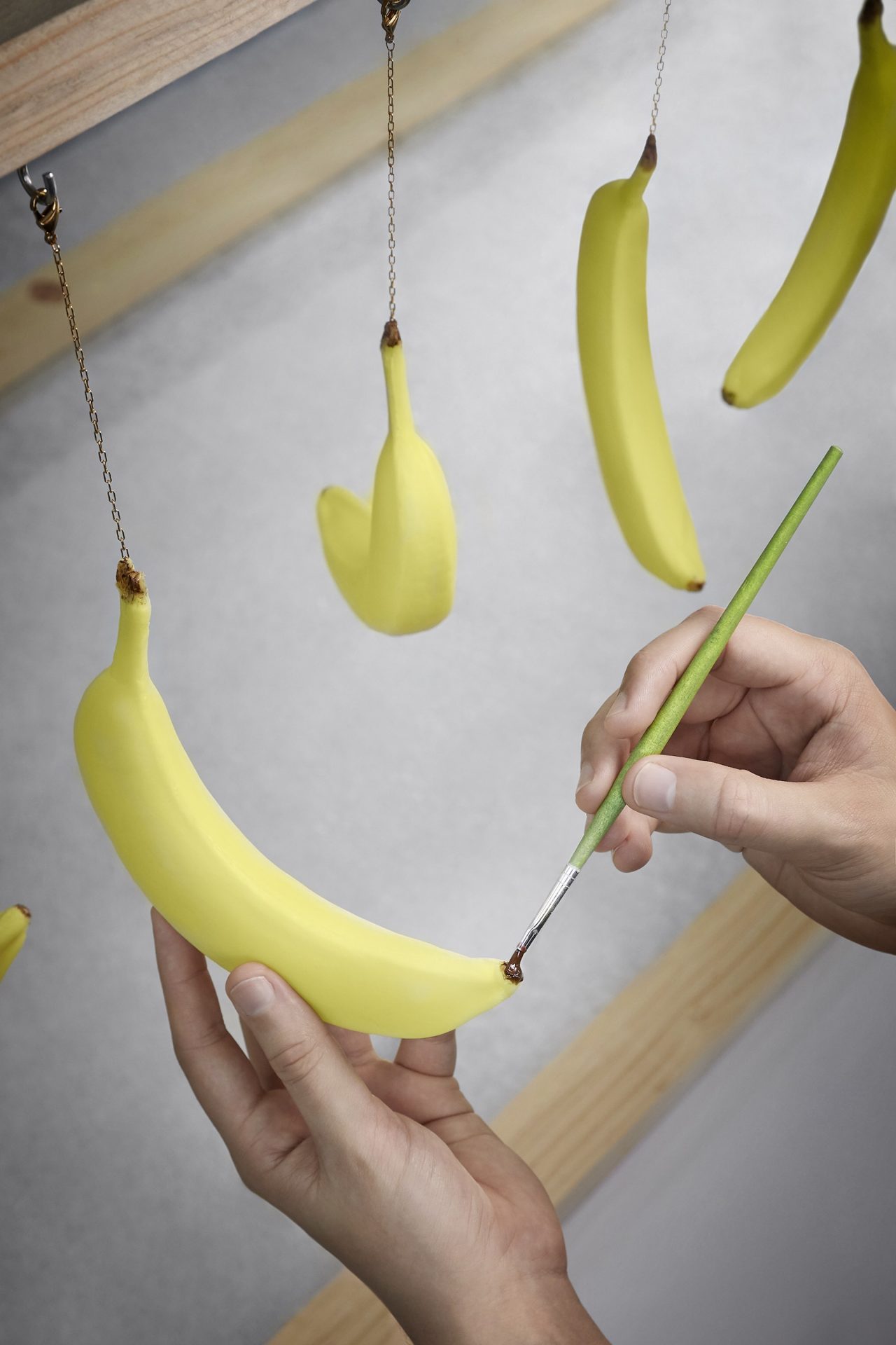 そして、大規模な彫刻やインスタレーションで知られるニューヨーク拠点の Urs Fischer は、シュールなタッチのユニークな「カプシーヌ」を発表。「ハンギングス・スカルプチャー (吊り下げられた彫刻)」と呼ばれる本物そっくりな3Dチャームをチェーンで大胆にバッグから吊るした。チャームはバナナ、イチゴ、リンゴ、マッシュルーム、エッグ、ニンジンの6種類。その日の気分によってチャームを変えることができるという全く新しい「カプシーヌ」だ。