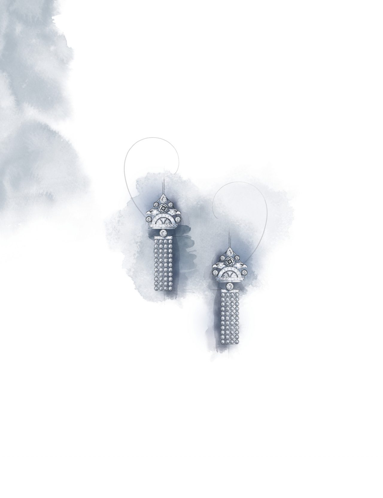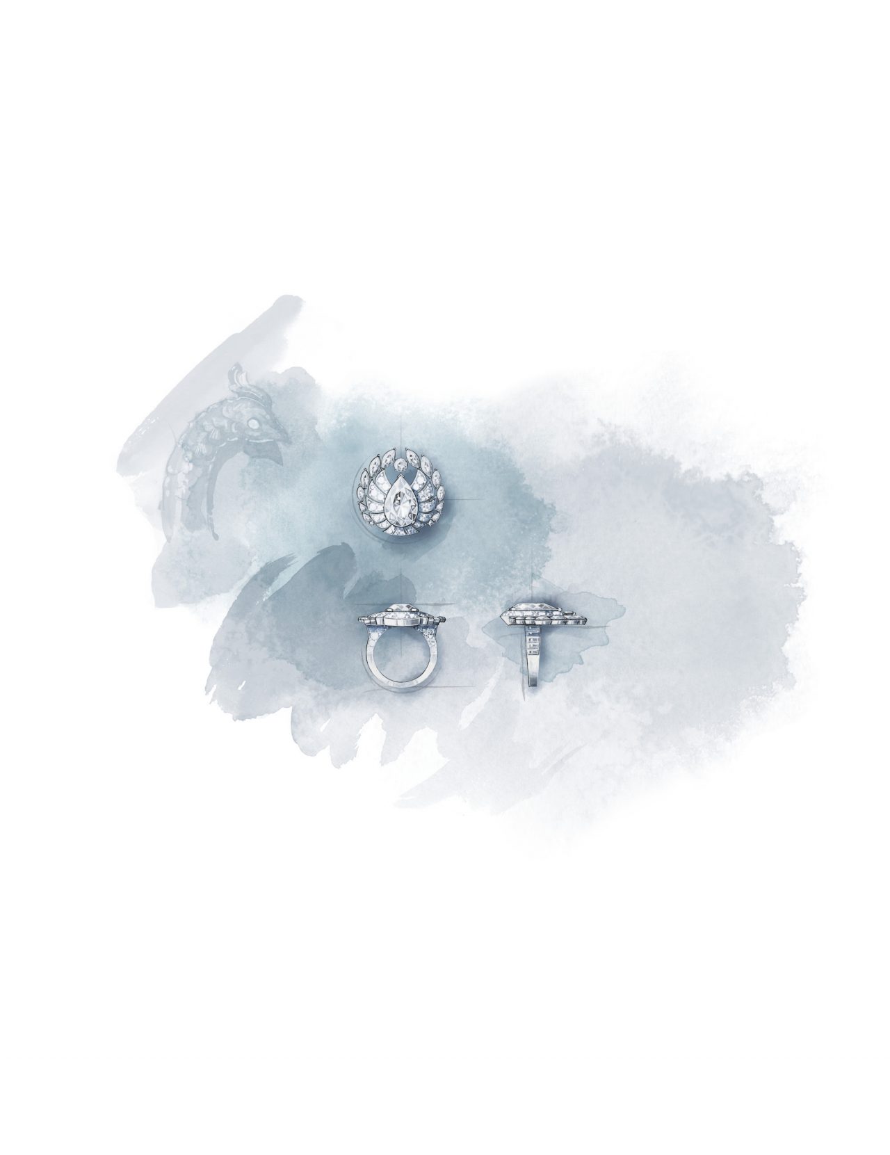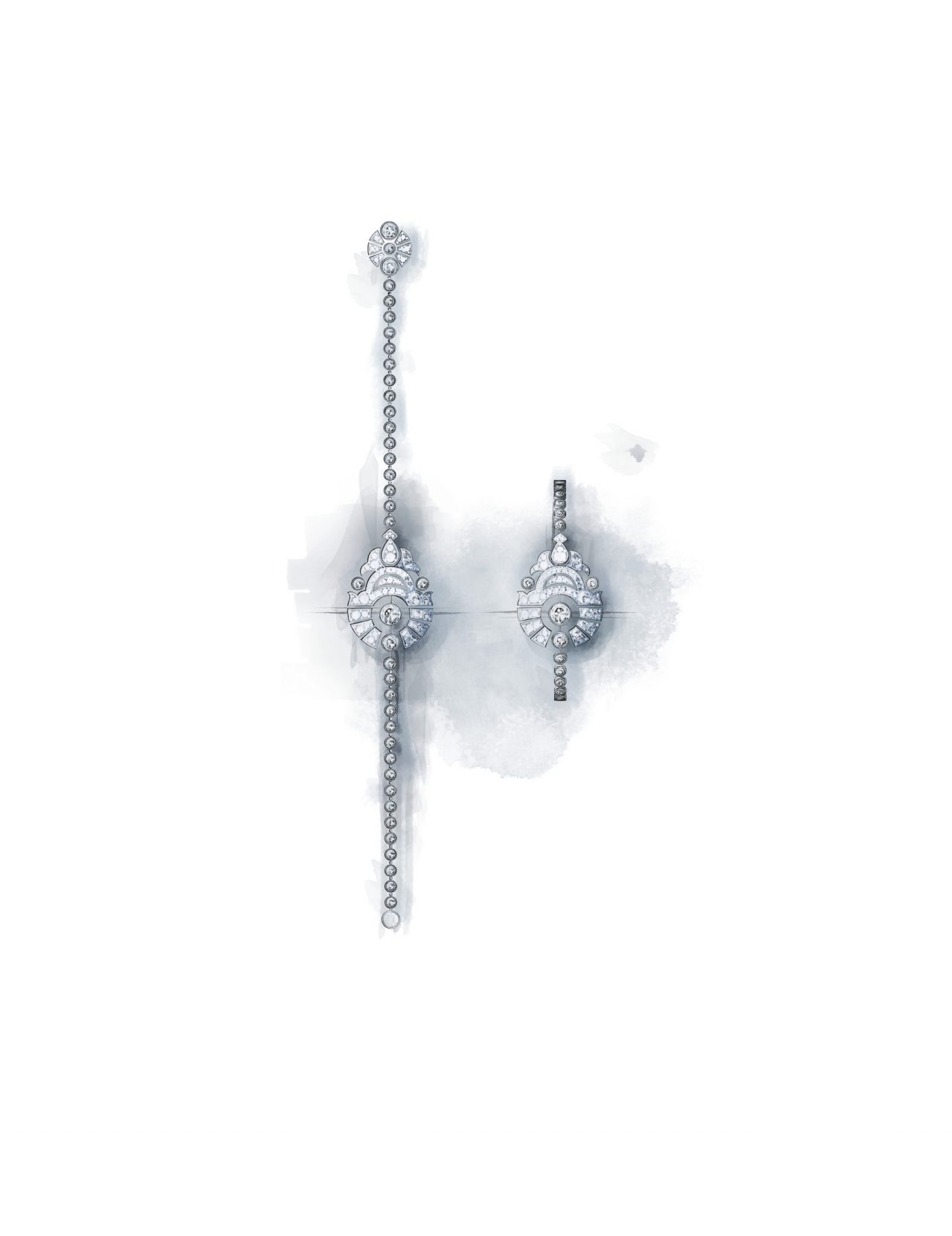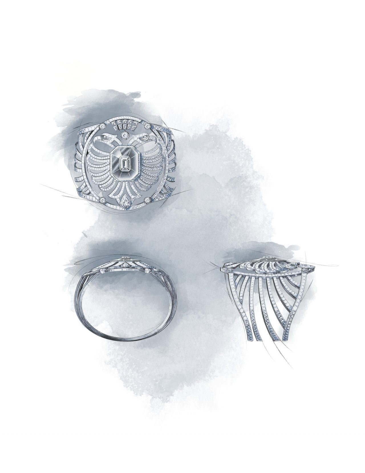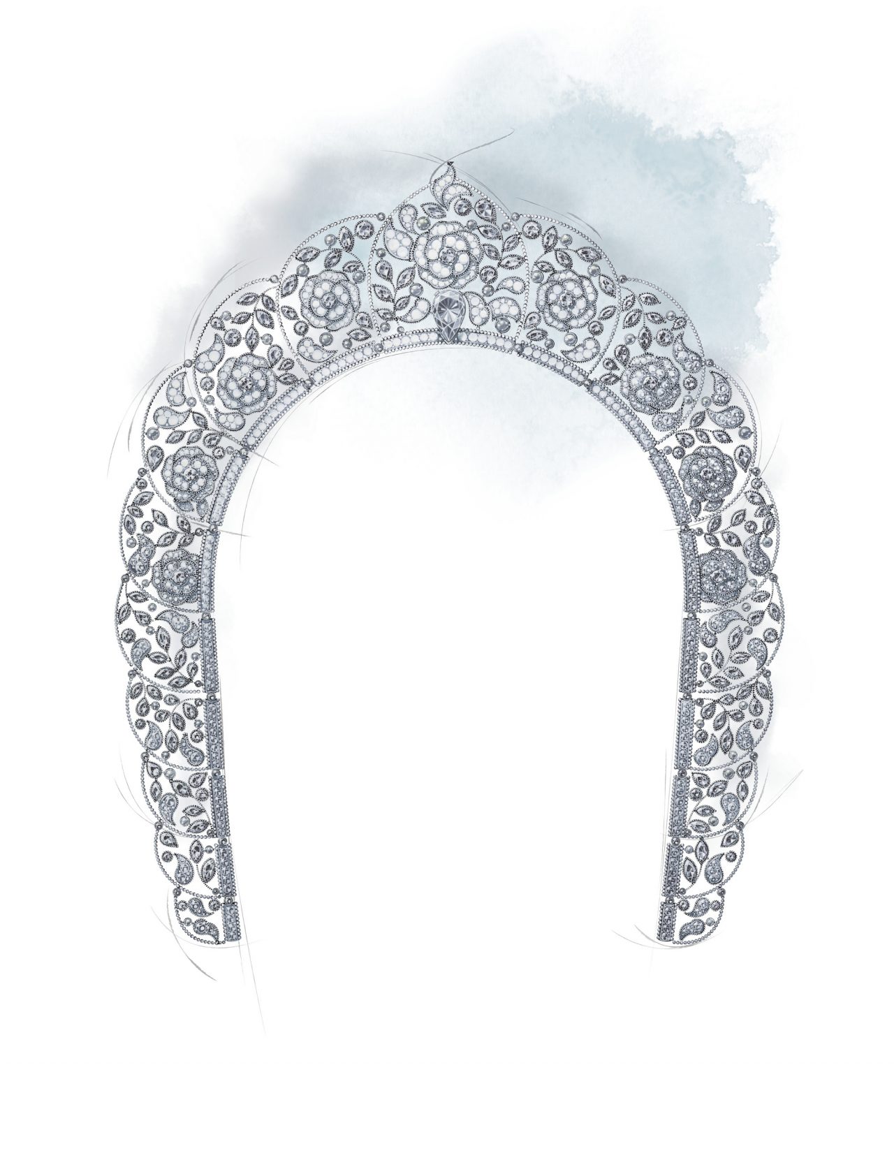 CHANEL ファインジュエリー クリエイション スタジオ ディレクターの Patrice Leguereau (パトリス・ルゲロー) が手がけた本コレクションでは、ロシアにオマージュを捧げた計69点の多彩なピースがラインナップ。ロシアの国章である双頭の鷲を主役に迎え、他にもルバシカの鮮やかな色彩の刺繍、ココシュニック(ベルベットのヘッドドレス)、スカーフ、伝統民族衣装のプリントなどロシアの多彩な芸術的装飾のモチーフが端正なデザインで登場している。