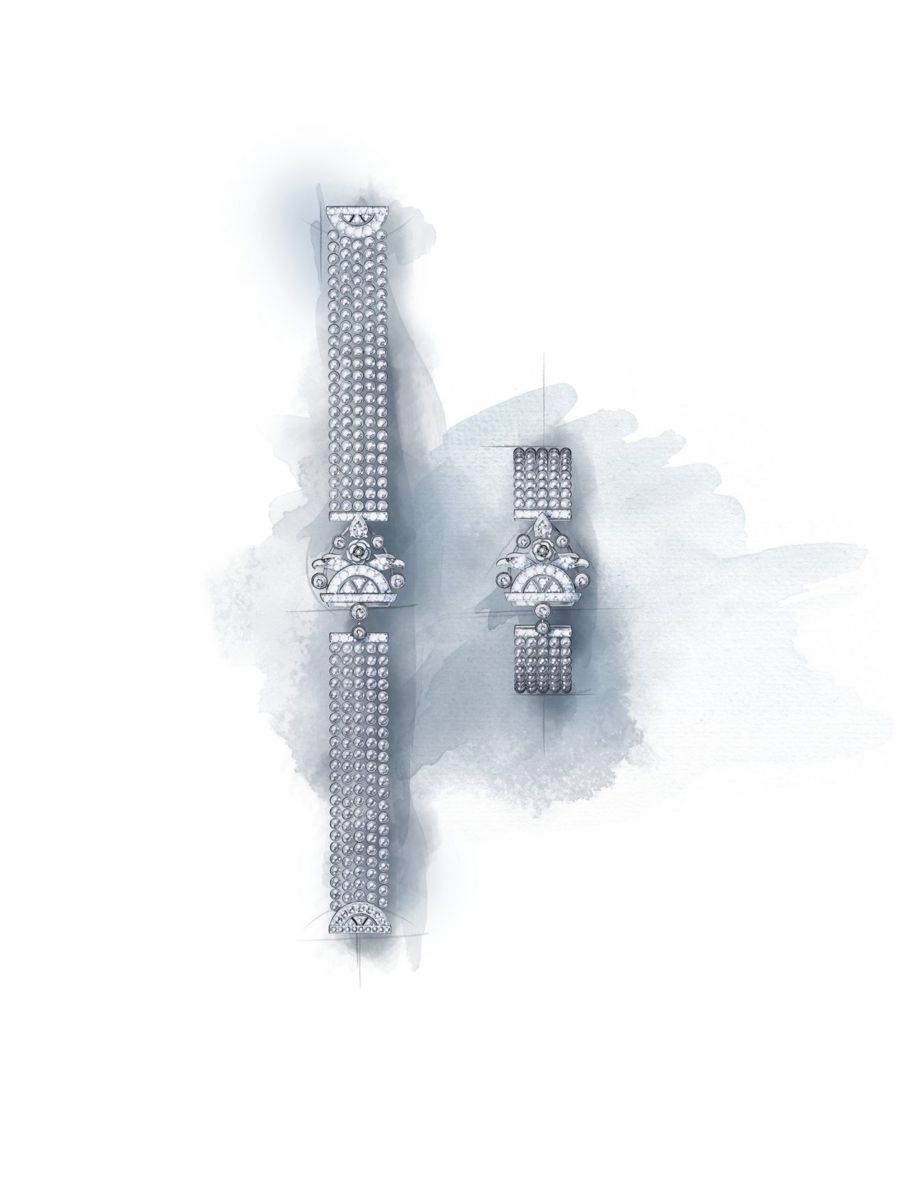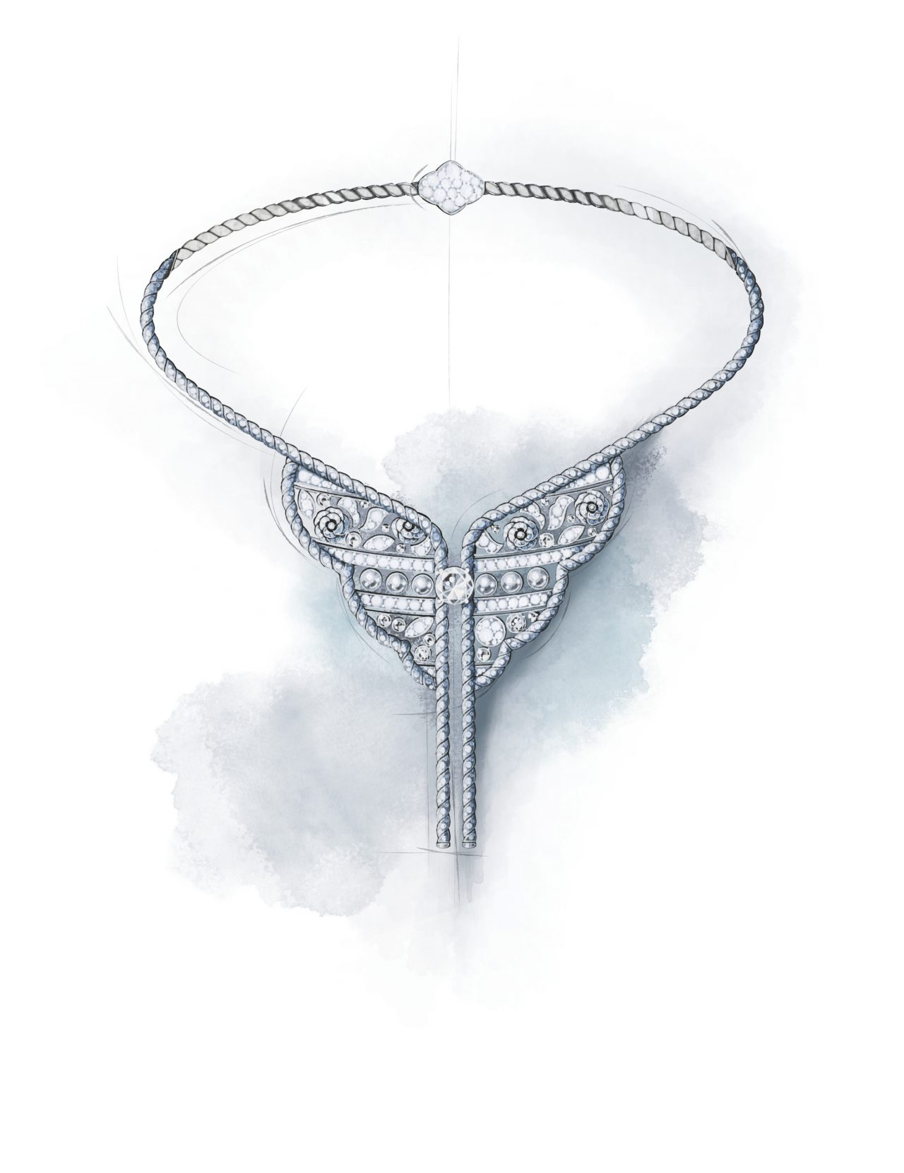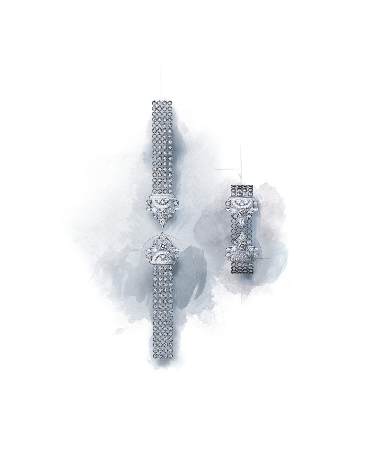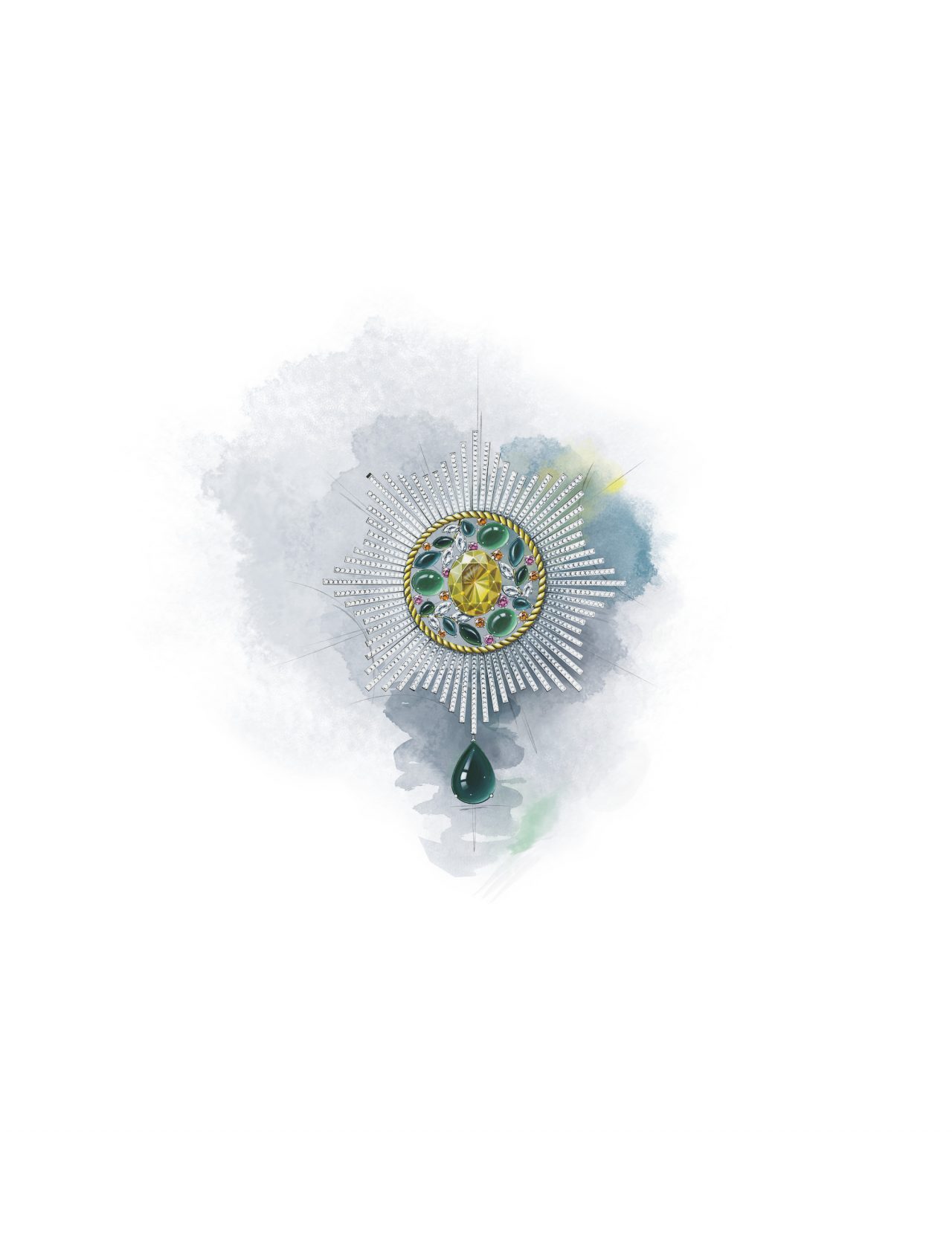 CHANEL ファインジュエリー クリエイション スタジオ ディレクターの Patrice Leguereau (パトリス・ルゲロー) が手がけた本コレクションでは、ロシアにオマージュを捧げた計69点の多彩なピースがラインナップ。ロシアの国章である双頭の鷲を主役に迎え、他にもルバシカの鮮やかな色彩の刺繍、ココシュニック(ベルベットのヘッドドレス)、スカーフ、伝統民族衣装のプリントなどロシアの多彩な芸術的装飾のモチーフが端正なデザインで登場している。
