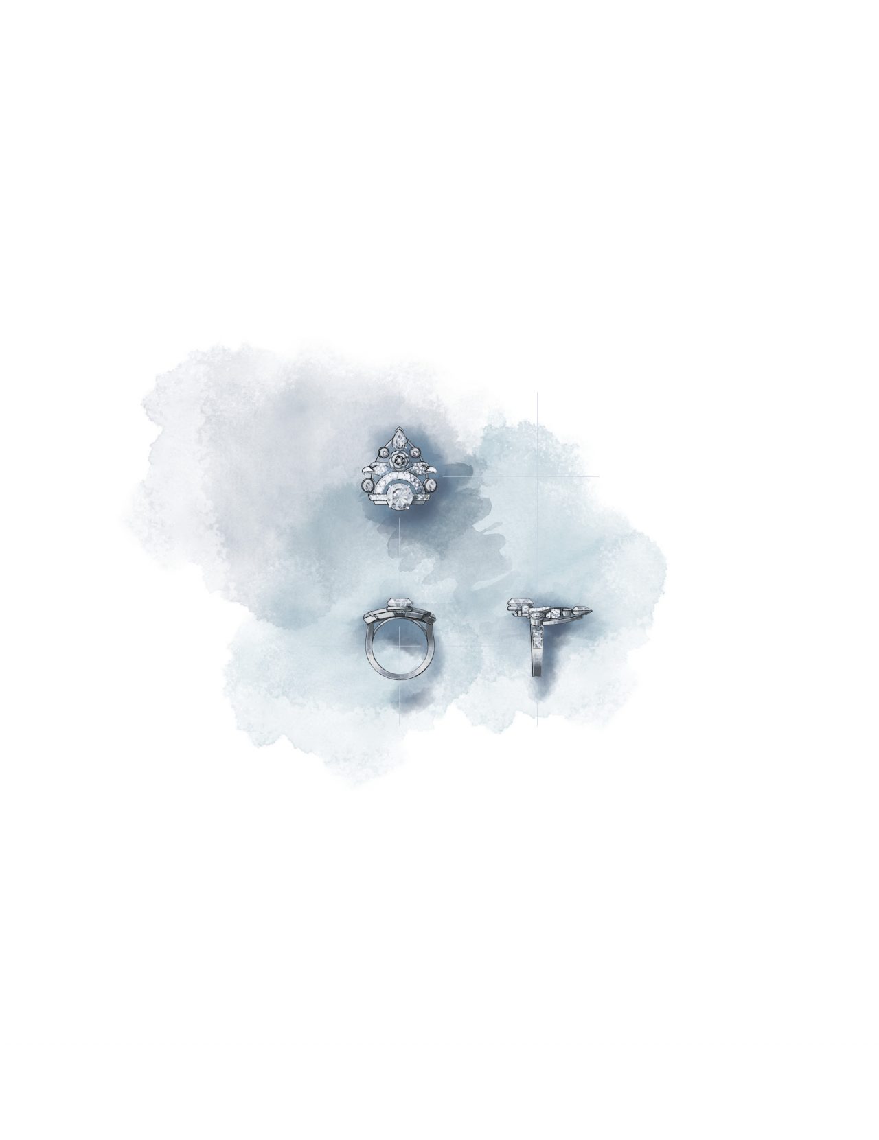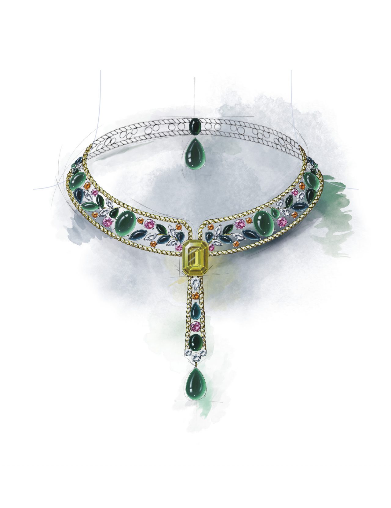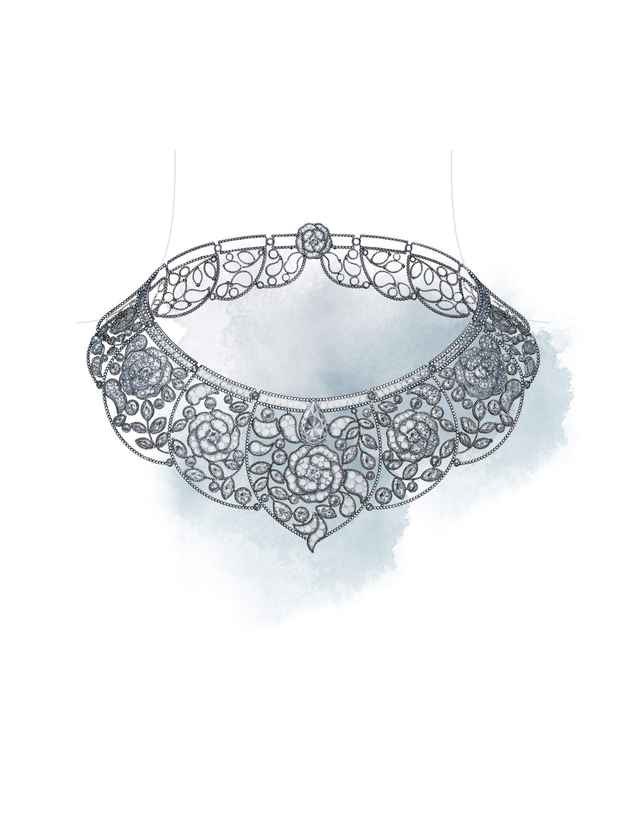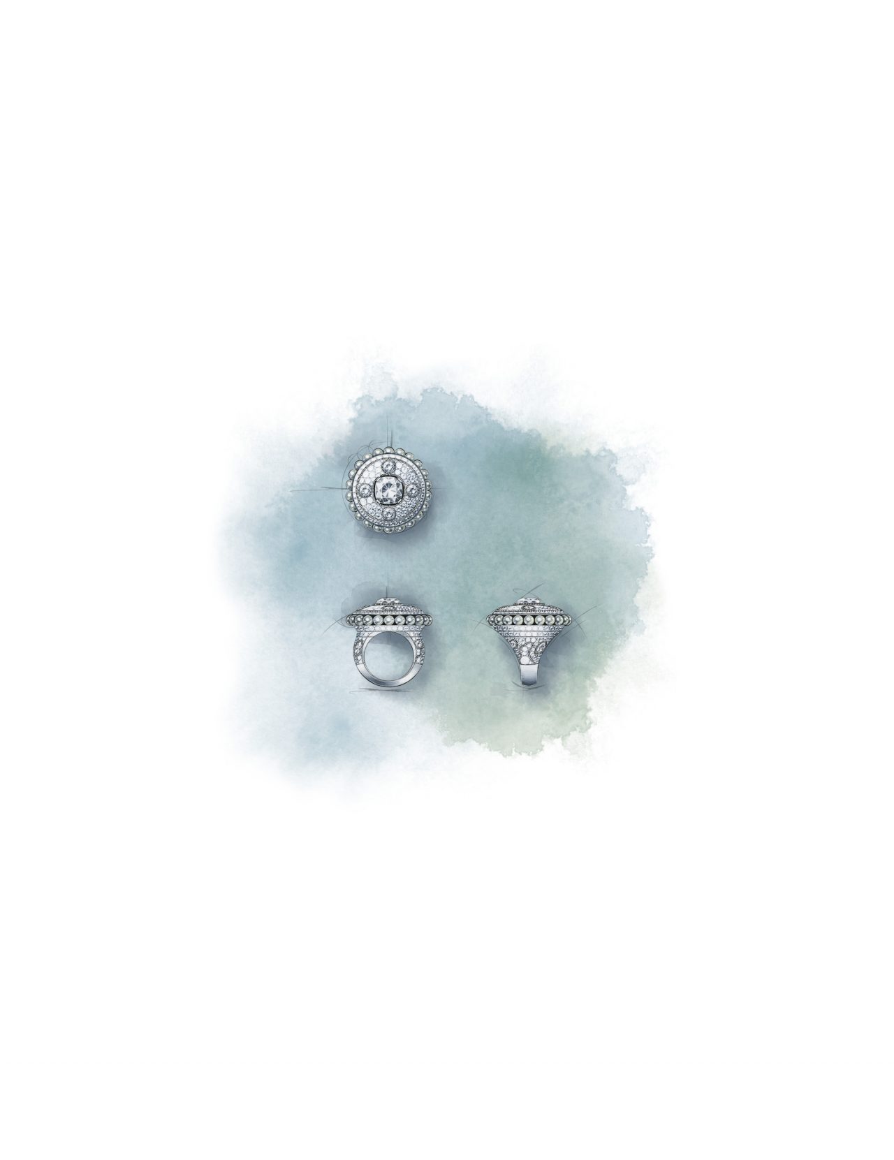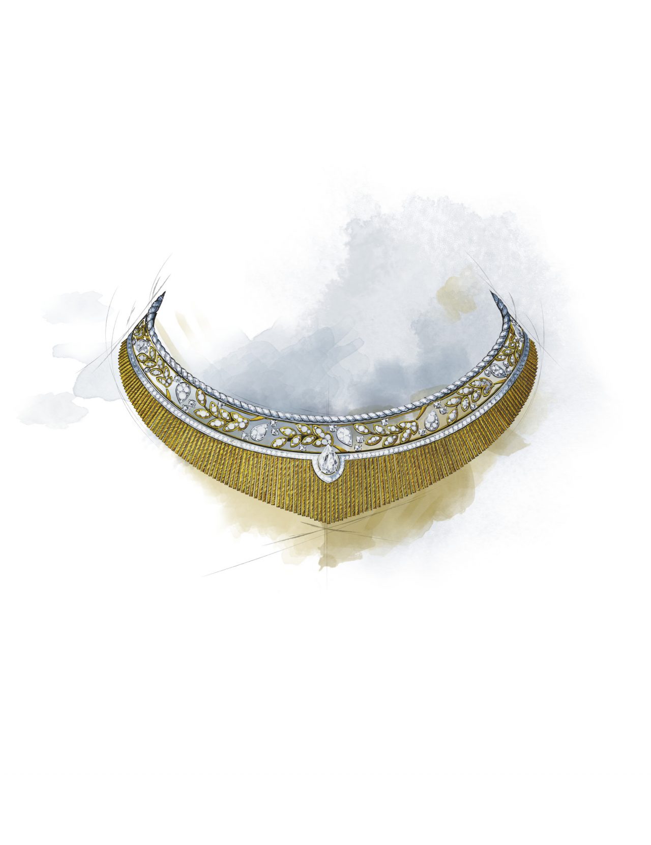 CHANEL ファインジュエリー クリエイション スタジオ ディレクターの Patrice Leguereau (パトリス・ルゲロー) が手がけた本コレクションでは、ロシアにオマージュを捧げた計69点の多彩なピースがラインナップ。ロシアの国章である双頭の鷲を主役に迎え、他にもルバシカの鮮やかな色彩の刺繍、ココシュニック(ベルベットのヘッドドレス)、スカーフ、伝統民族衣装のプリントなどロシアの多彩な芸術的装飾のモチーフが端正なデザインで登場している。