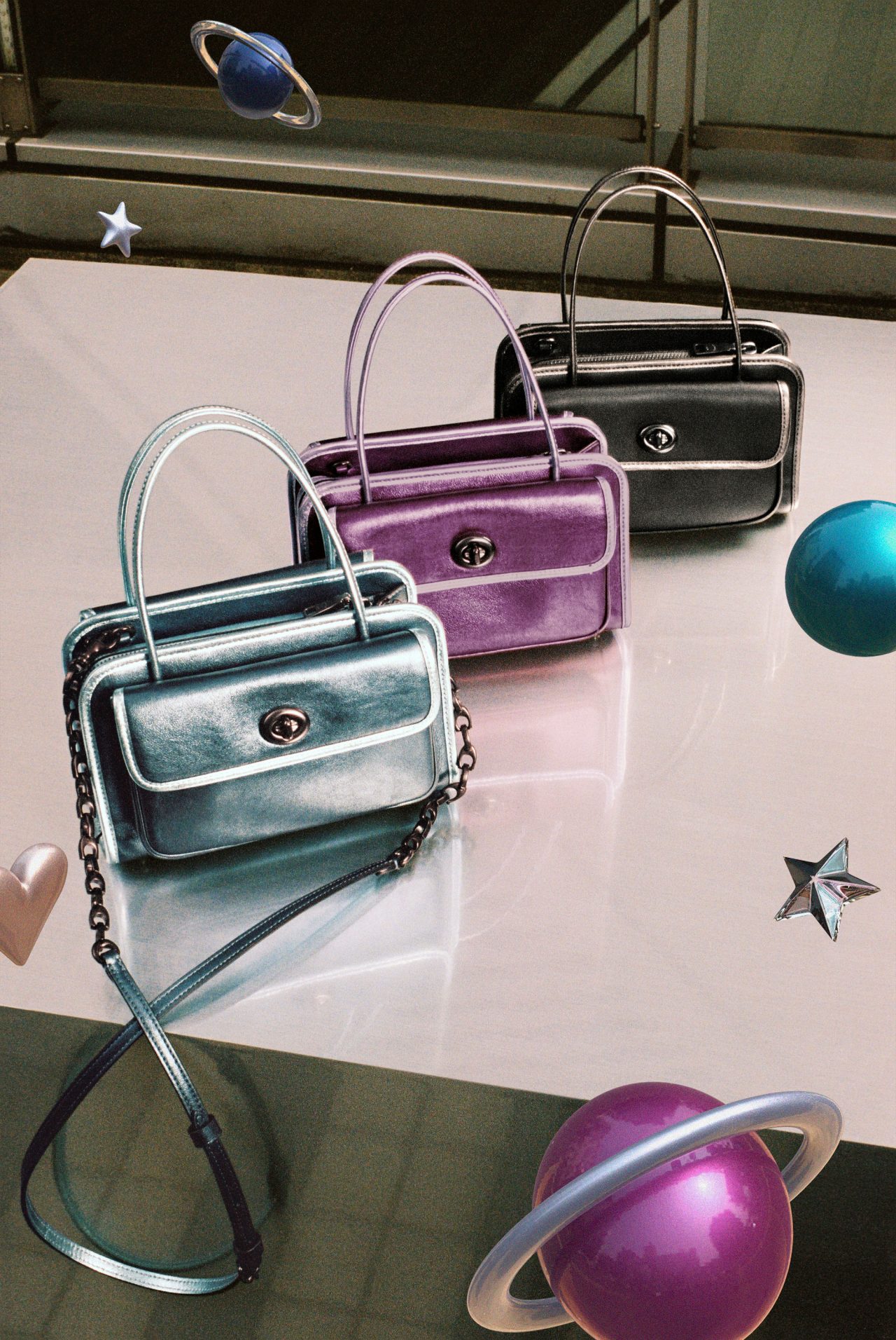 注目したいのは、水原希子と Stuart Vevers が綿密な打ち合わせを経て完成させた「サファリ トート」。1960年代の Coach のアーカイブスタイルからヒントを得たというターンロックの留め金がついたフロントポケットが特徴的なこのバッグは、メタリックレザーを用いることでモダンに仕上げられている。内側にはリミテッドエディションのスタイルと Coach ならではのクラフトマンシップを示すスペシャルなストーリーパッチが施されている。